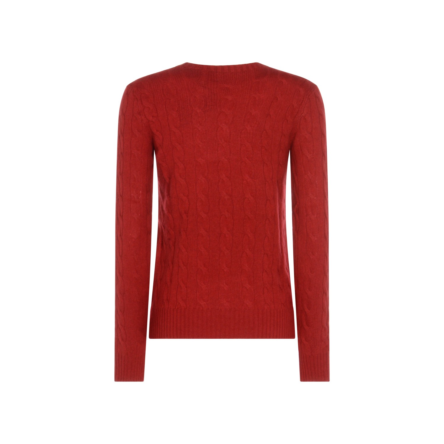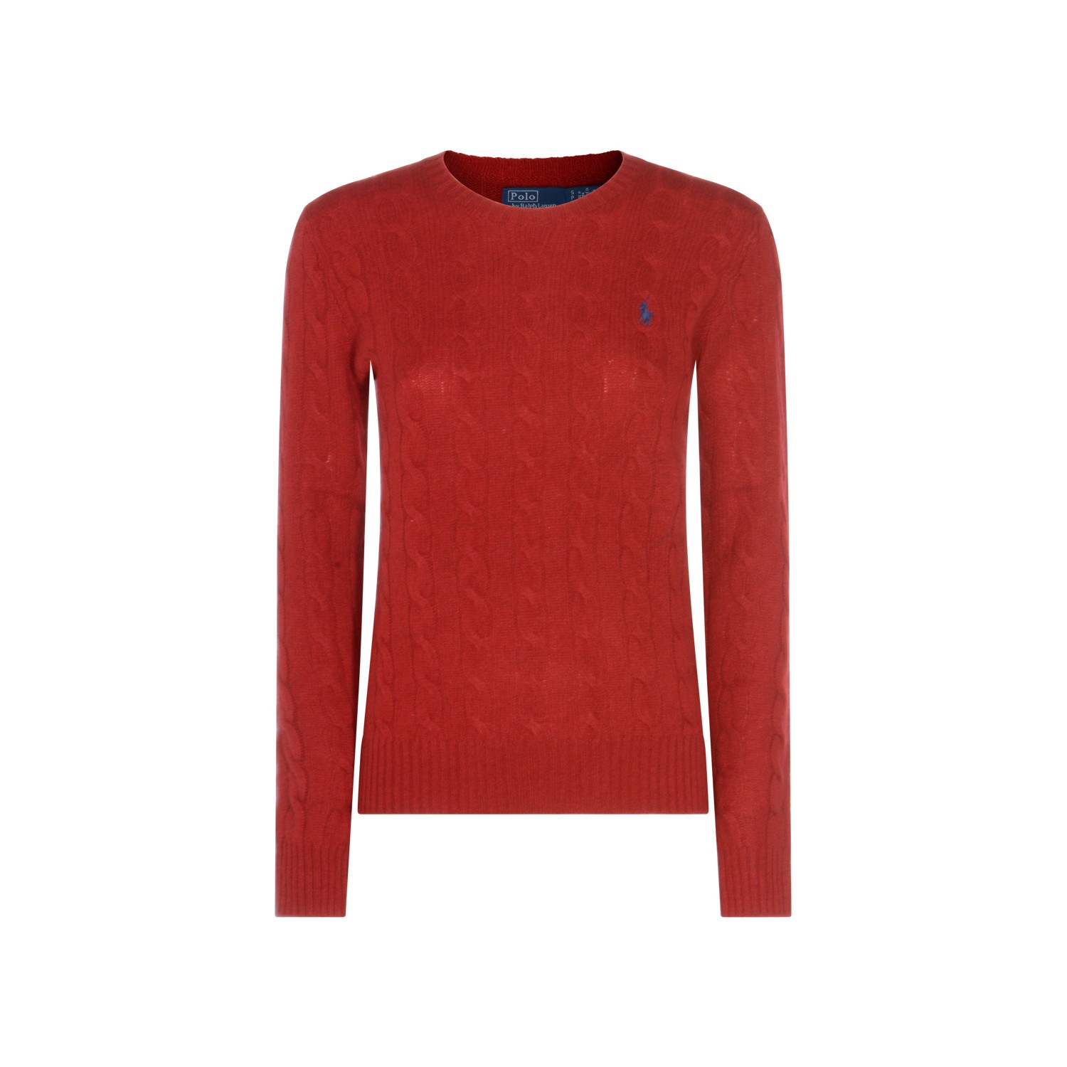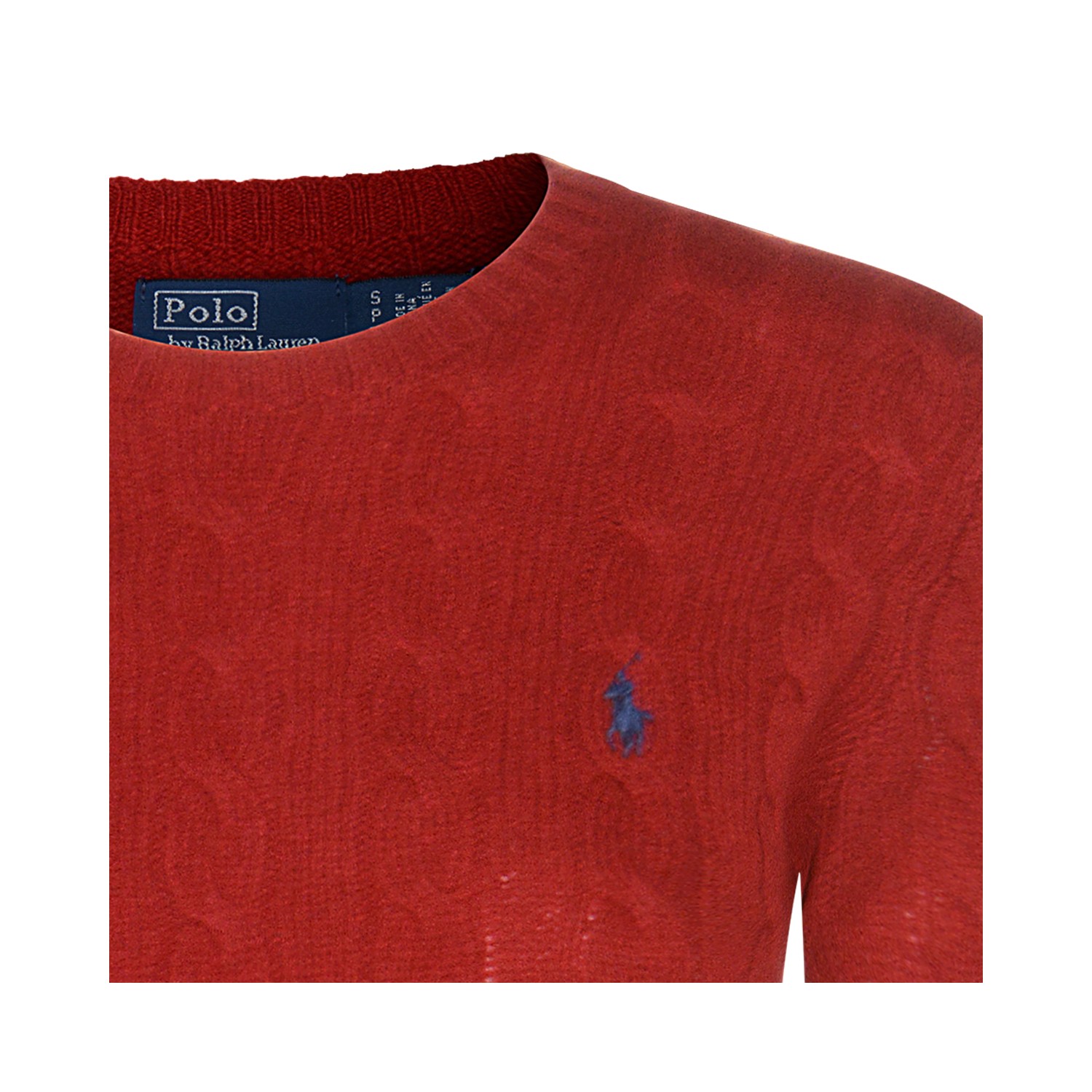 Red wool knitwear from Polo Ralph Lauren featuring crew neckline, long sleeves, embroidered logo and regular vestibility.