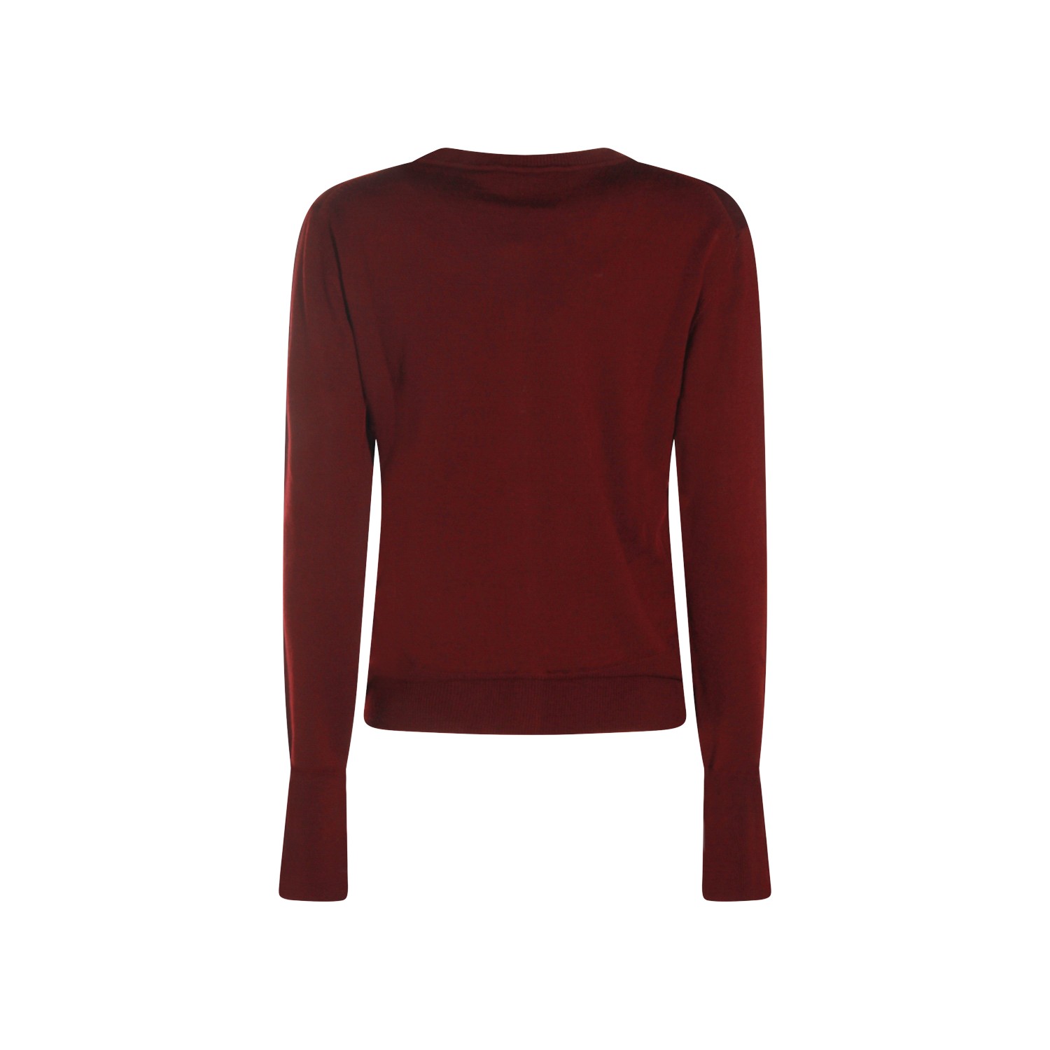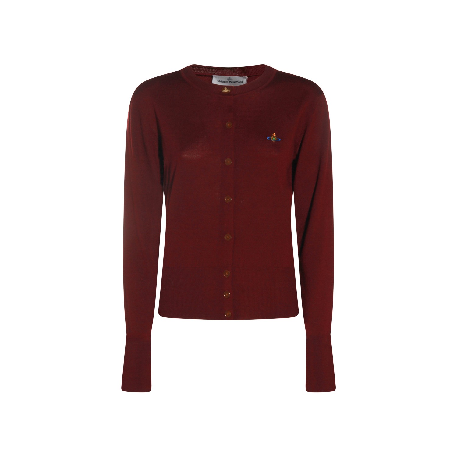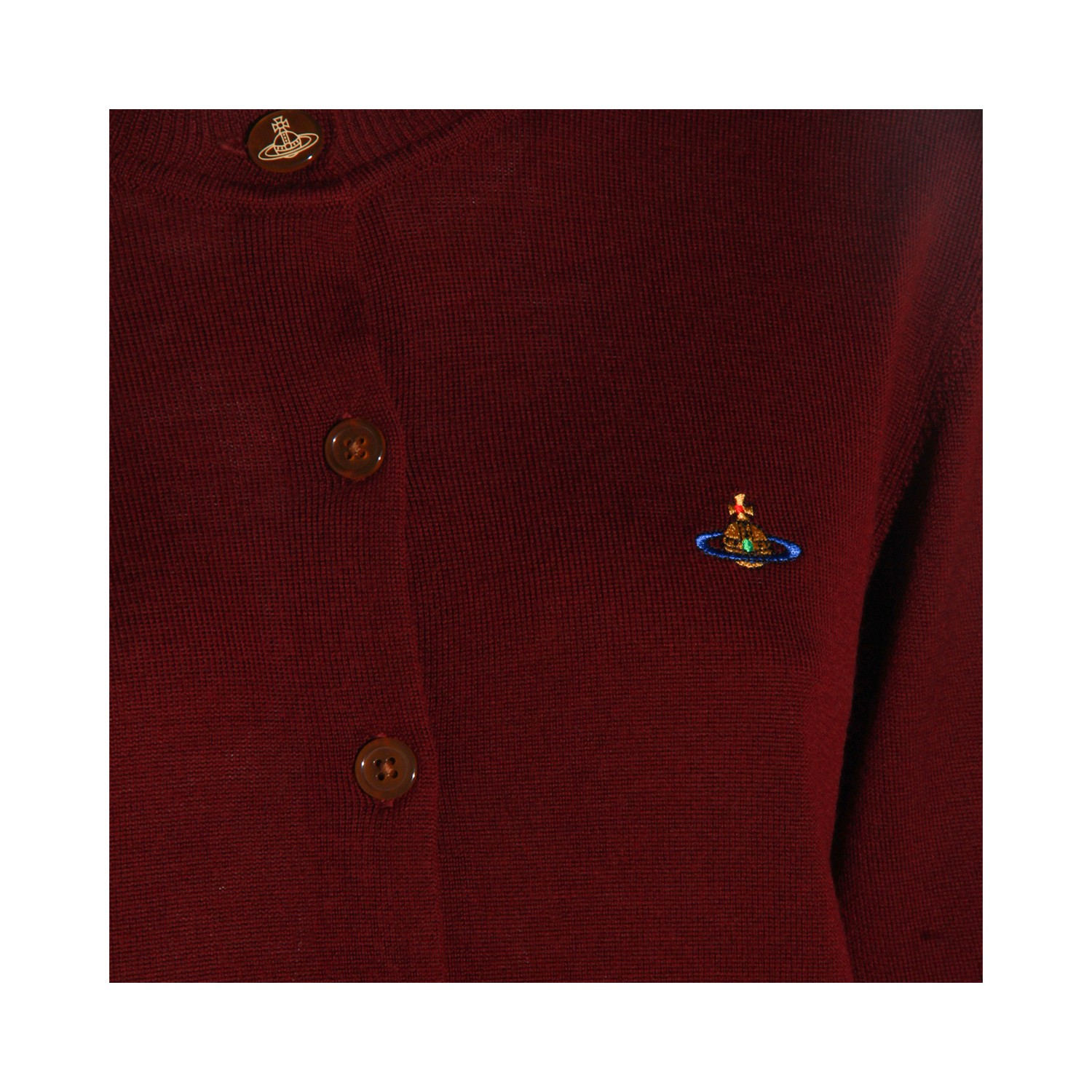 Dark red wool knitwear from Vivienne Westwood featuring round collar, long sleeves, frontal buttons fastening, embroidered logo and regular vestibility.