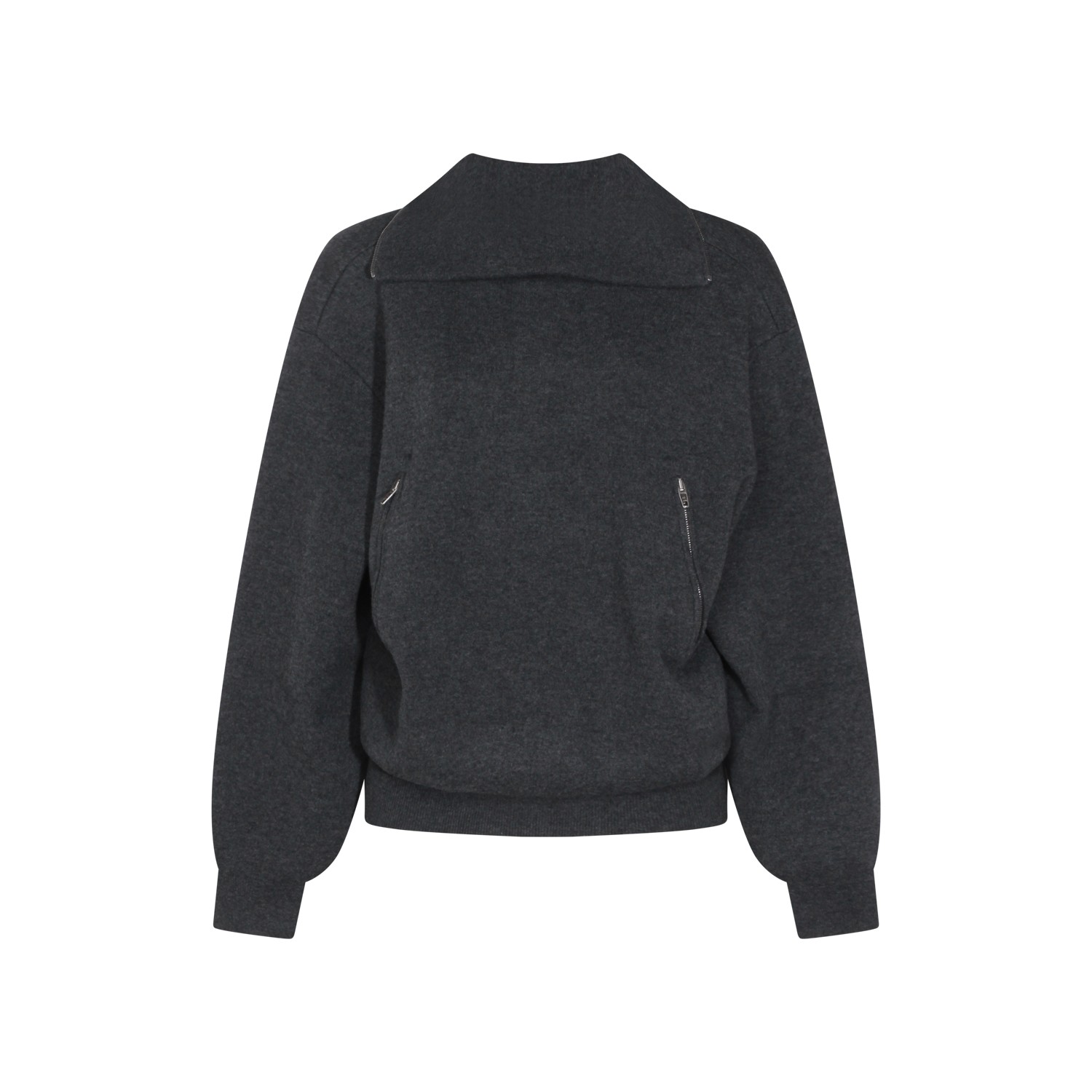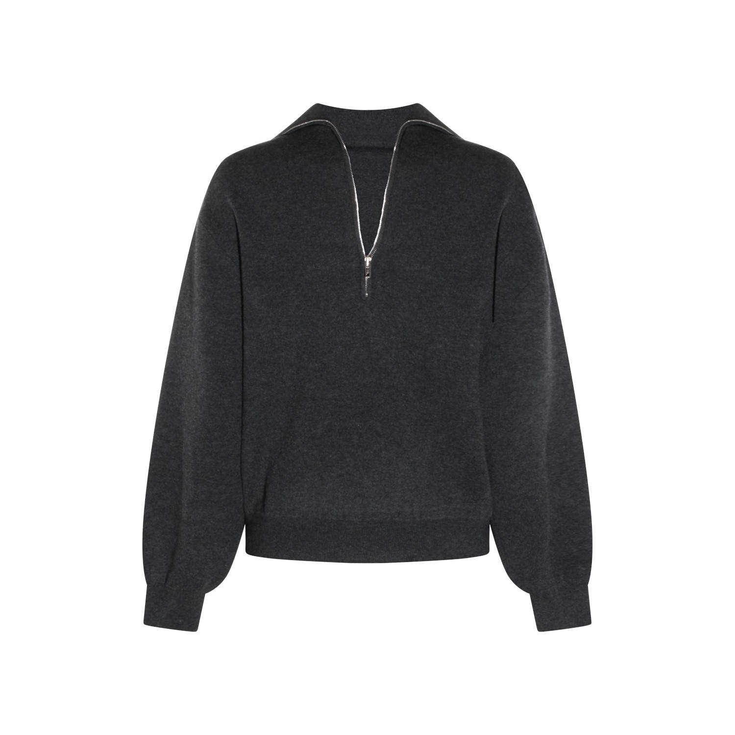 Dark grey wool knitwear from Balenciaga featuring ribbed cuffs, zip collar, silver tone hardware and regular vestibility.