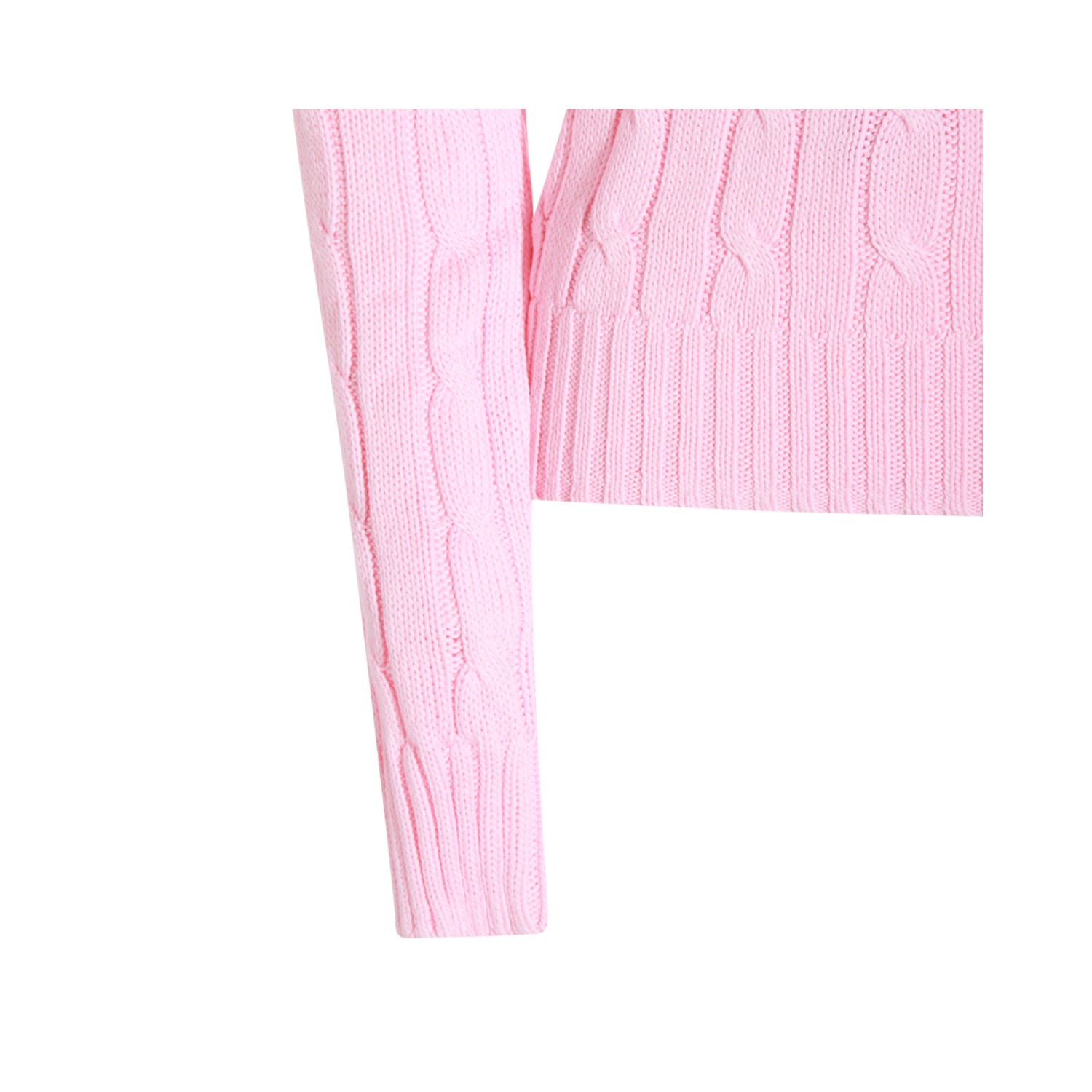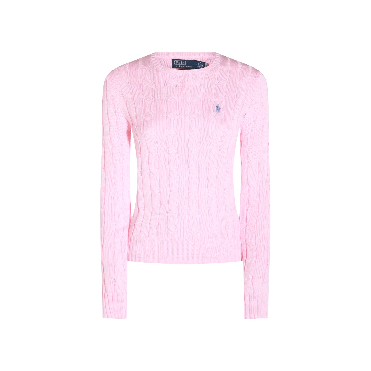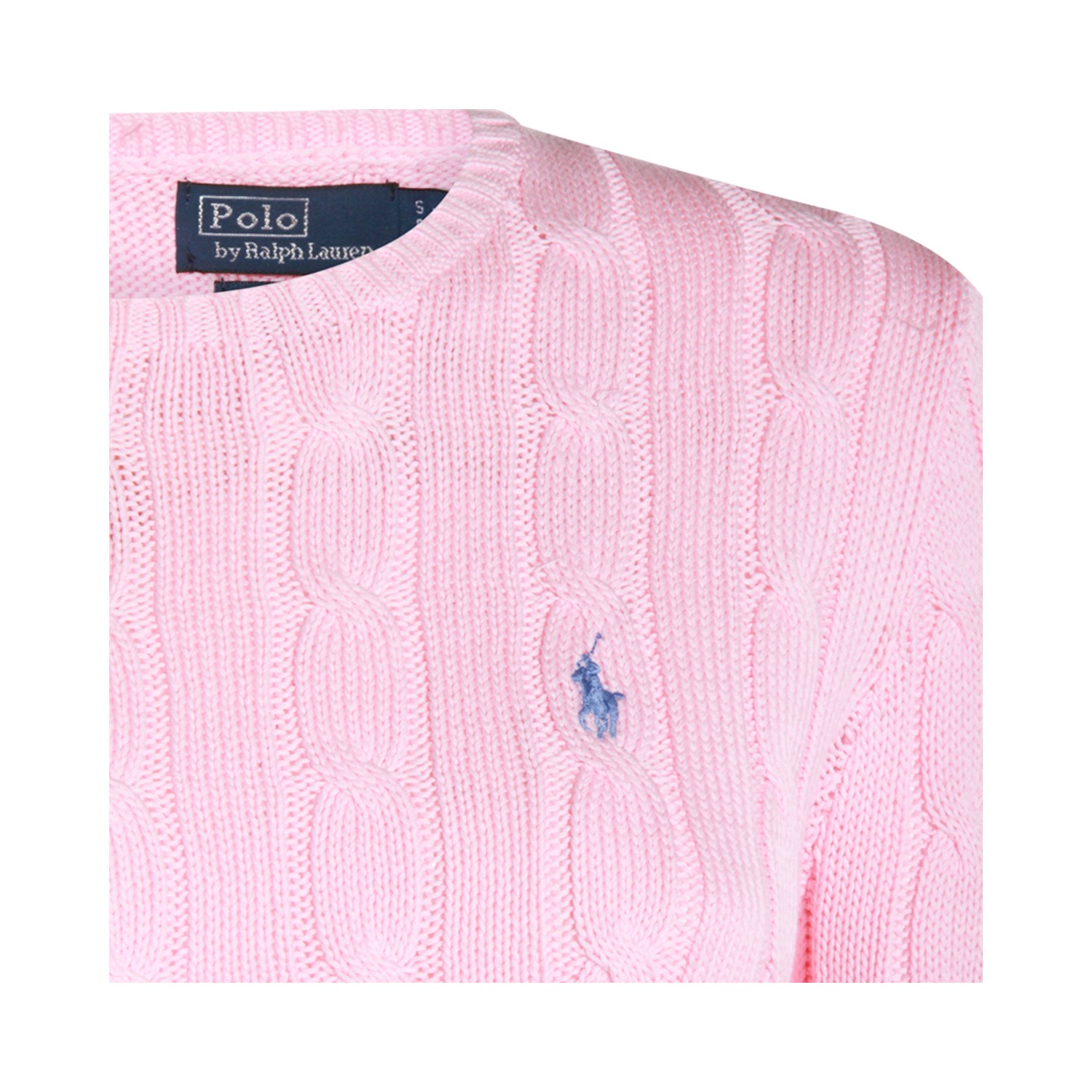 Pink cotton knitwear from Polo Ralph Lauren featuring round collar, long sleeves, logo and soft vestibility.