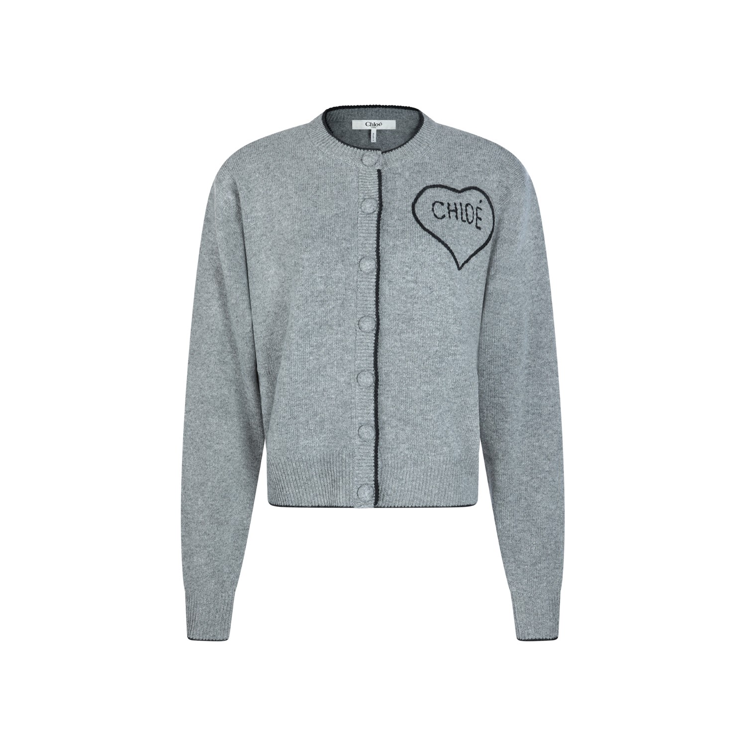 Grey wool blend knitwear from Chlofeaturing crew neck, buttons fastening, long sleeves, logo stamp and regular vestibility.