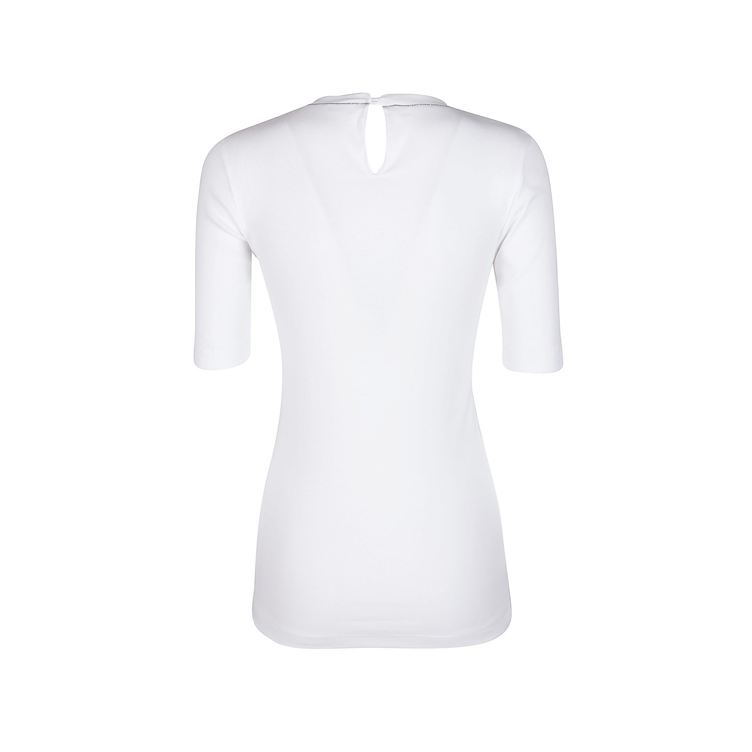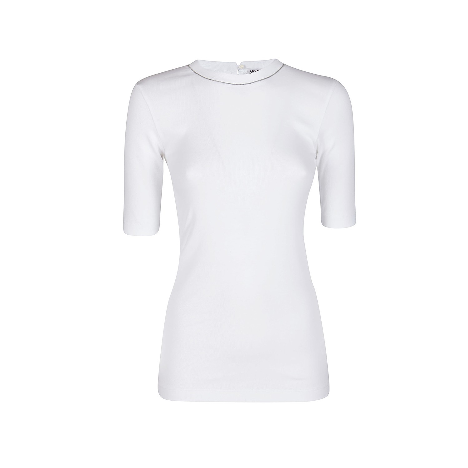 White cotton t-shirt from Brunello Cucinelli featuring round collar, short sleeves, back fastening and regular vestibility.