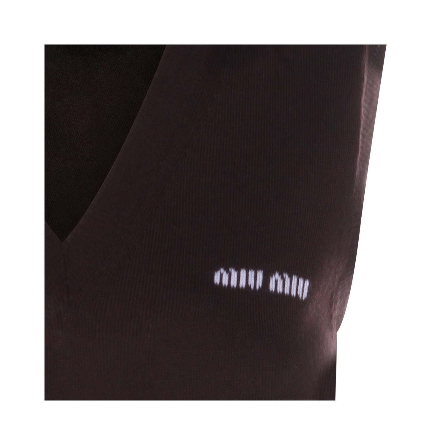 Brown cashmere knitwear from Miu Miu featuring V-neck, sleeveless, frontal logo and regular vestibility.