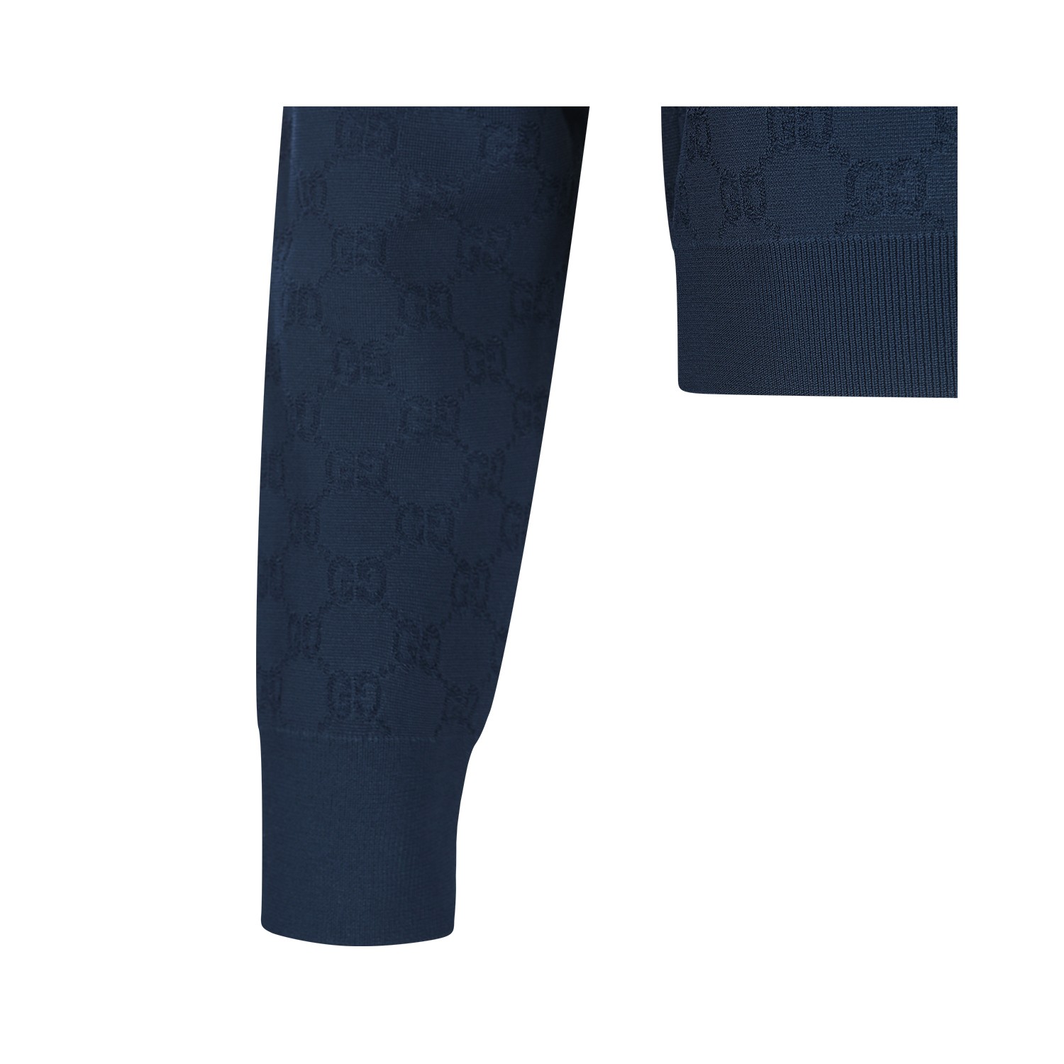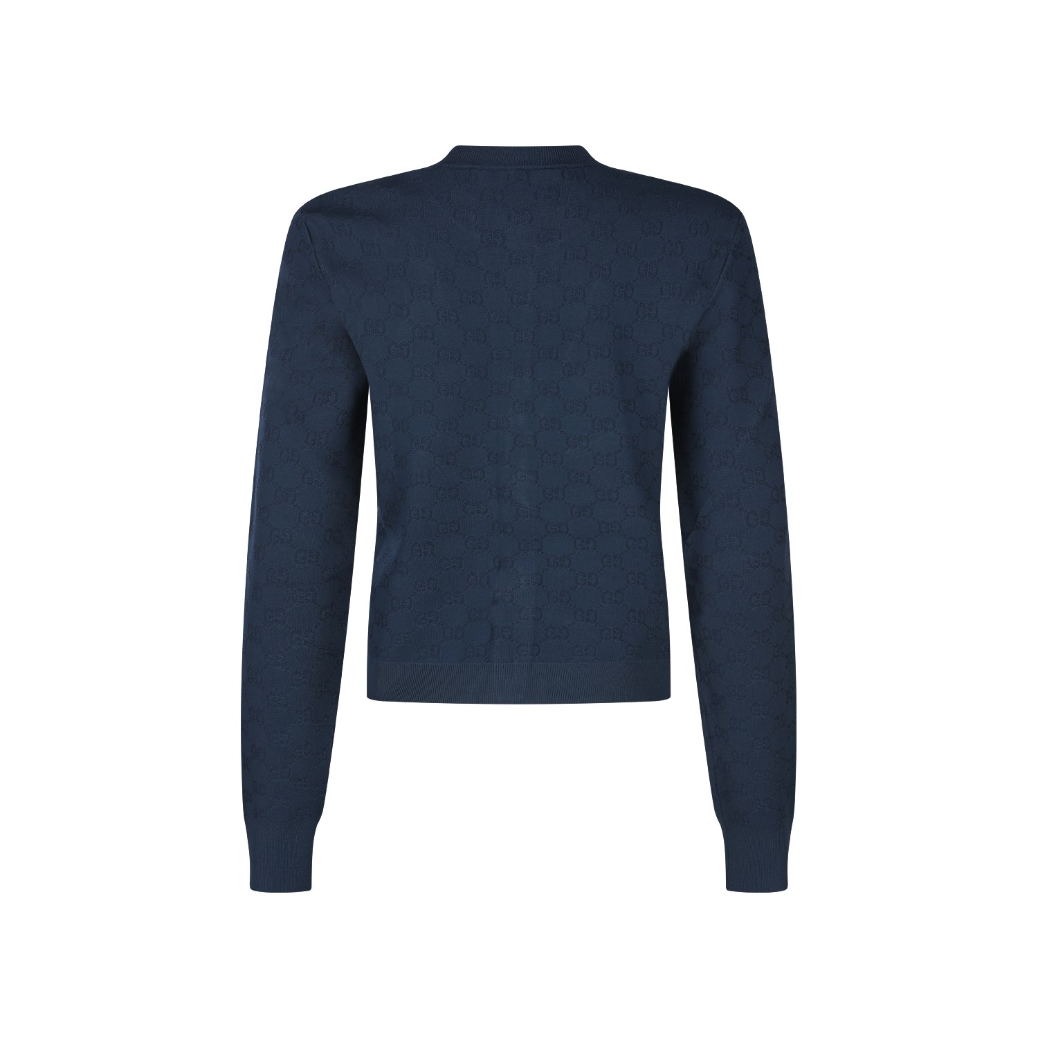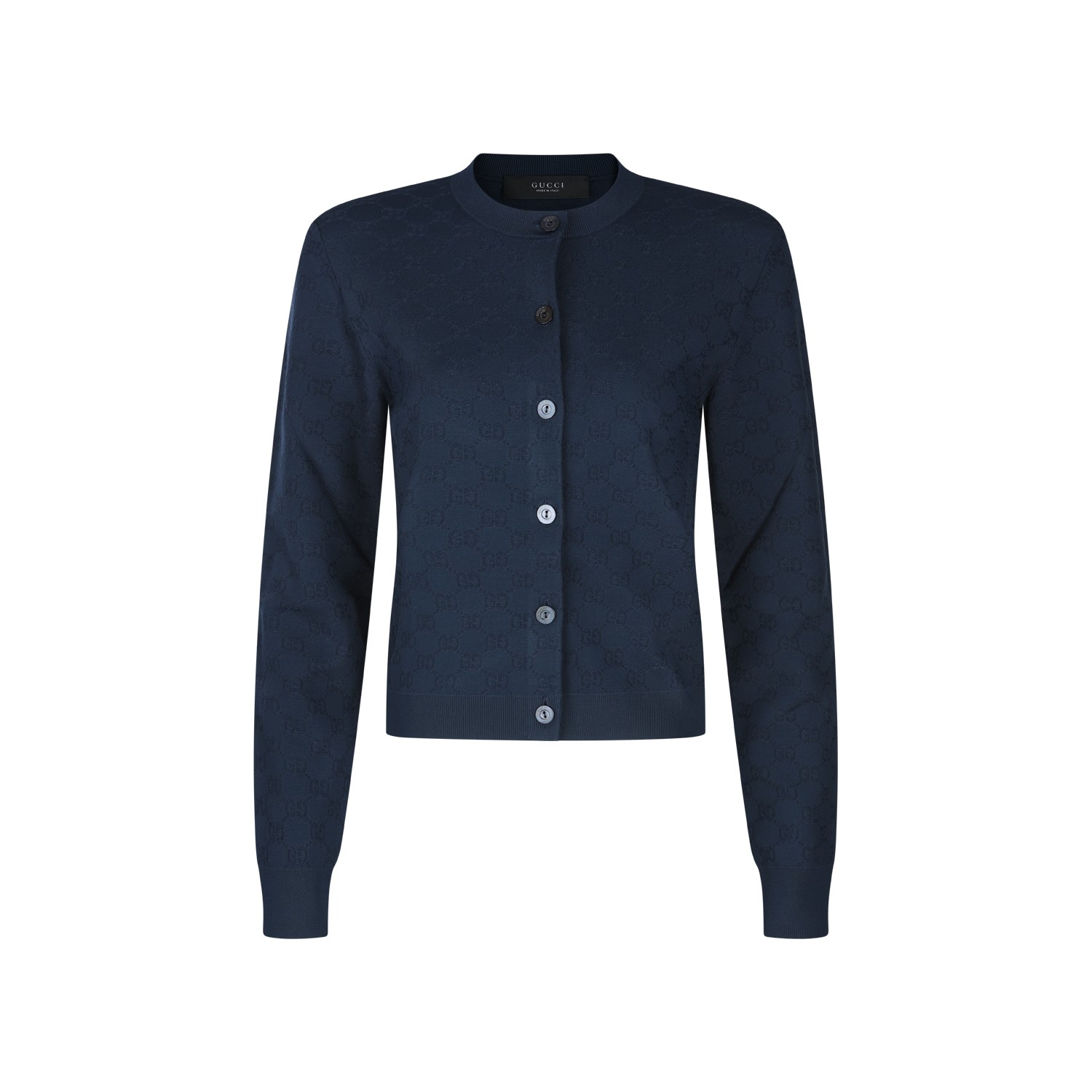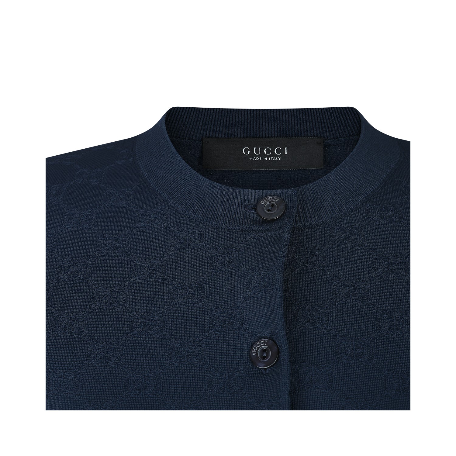 Navy viscose knitwear from Gucci featuring round collar, long sleeves, buttons fastening and soft vestibility.