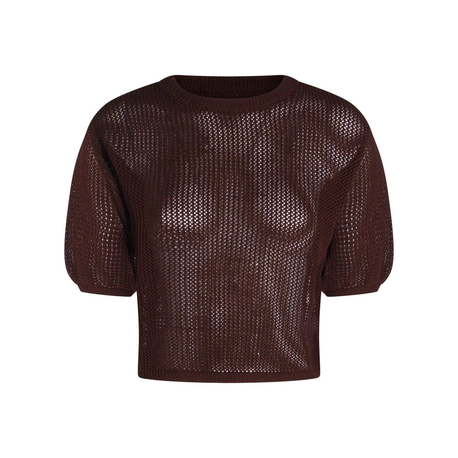 Brown cotton knitwear from Antonelli Firenze featuring round collar, short sleeves, trasparence and regular fit.