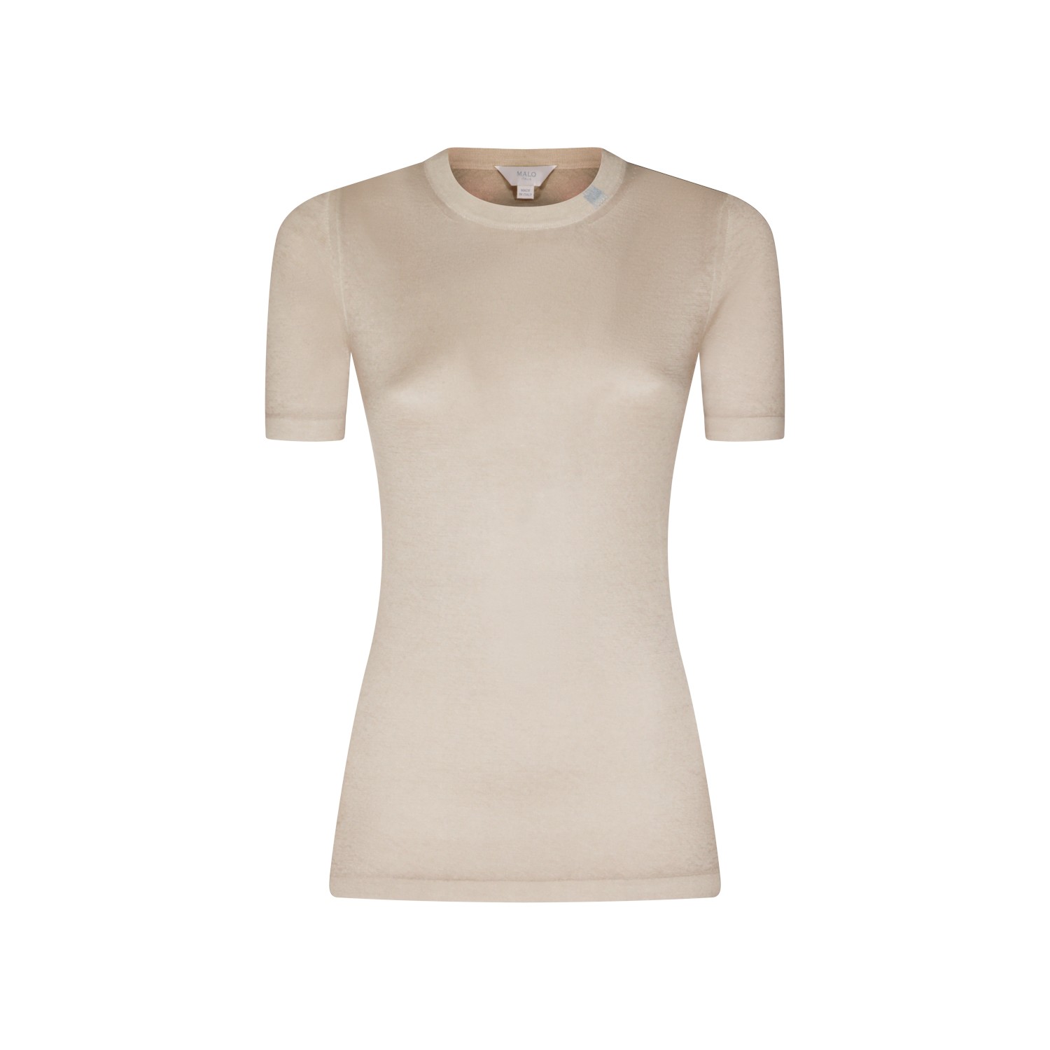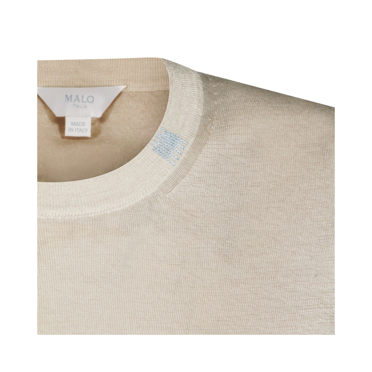 Ecru wool knitwear from Malo featuring crew neck, short sleeves and slim fit.