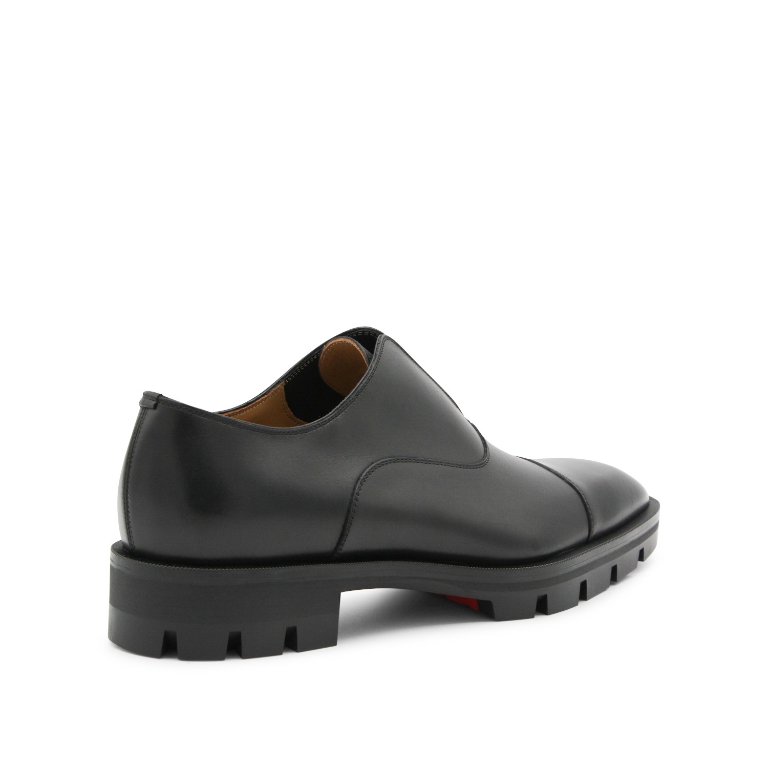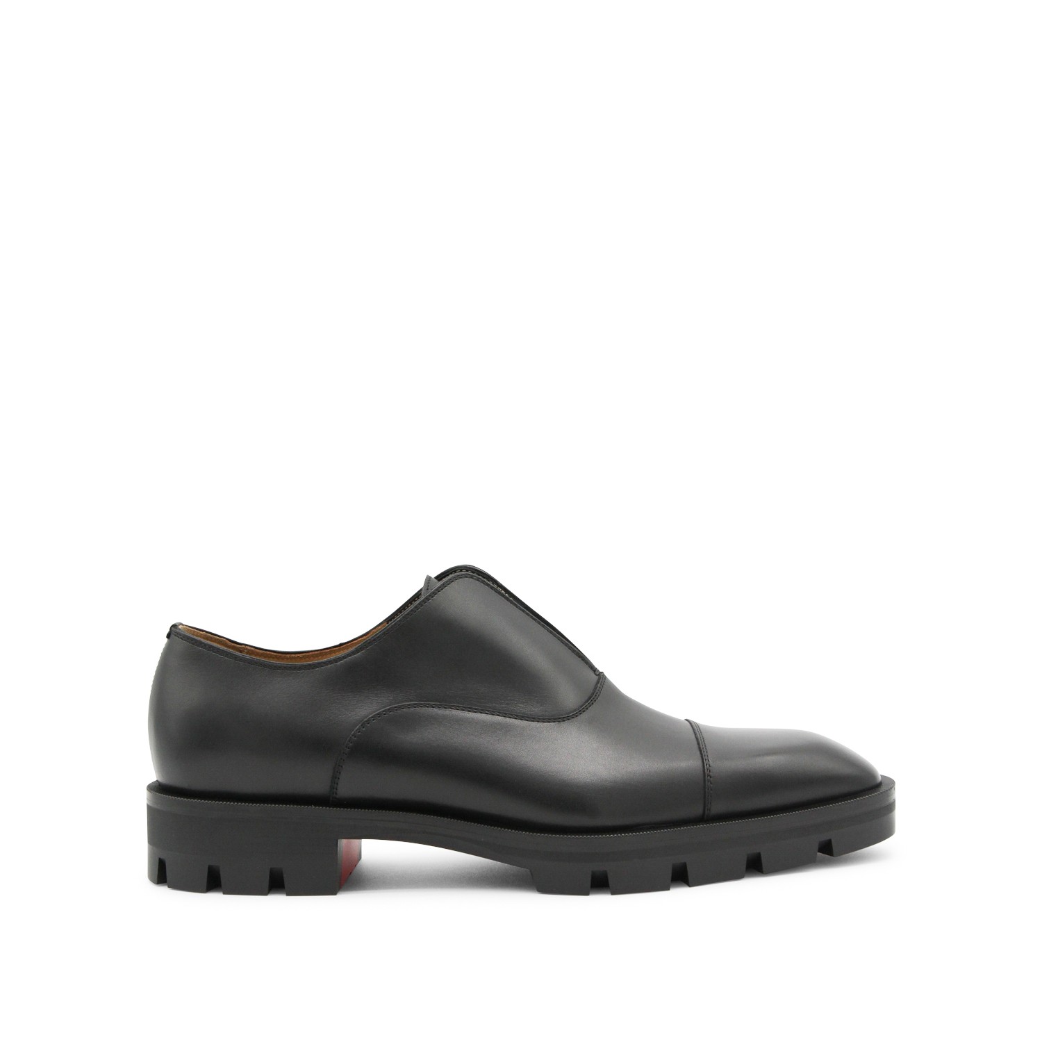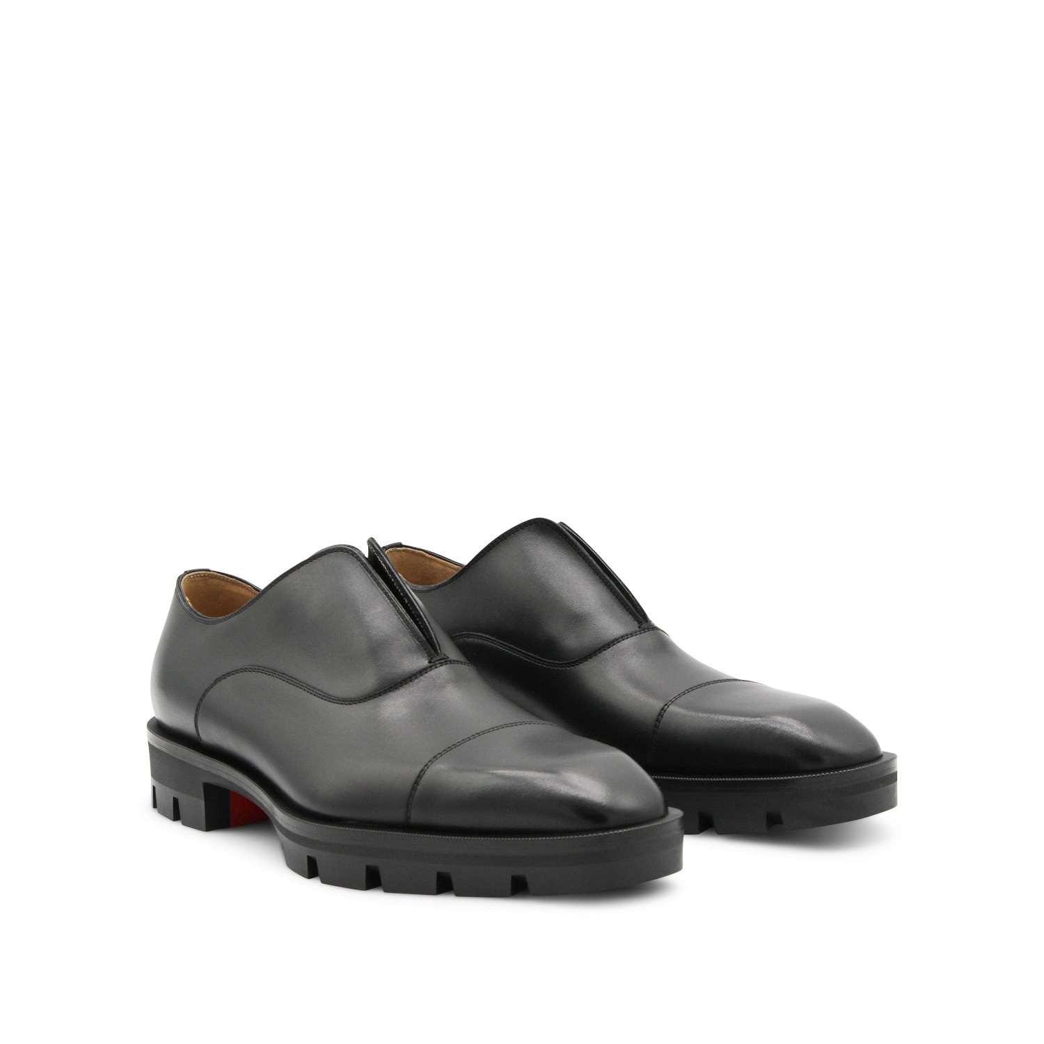 Black leather Alpha Lion formal shoes from Christian Louboutin featuring pointed toe, slip-on style, rubber sole and leather insole.