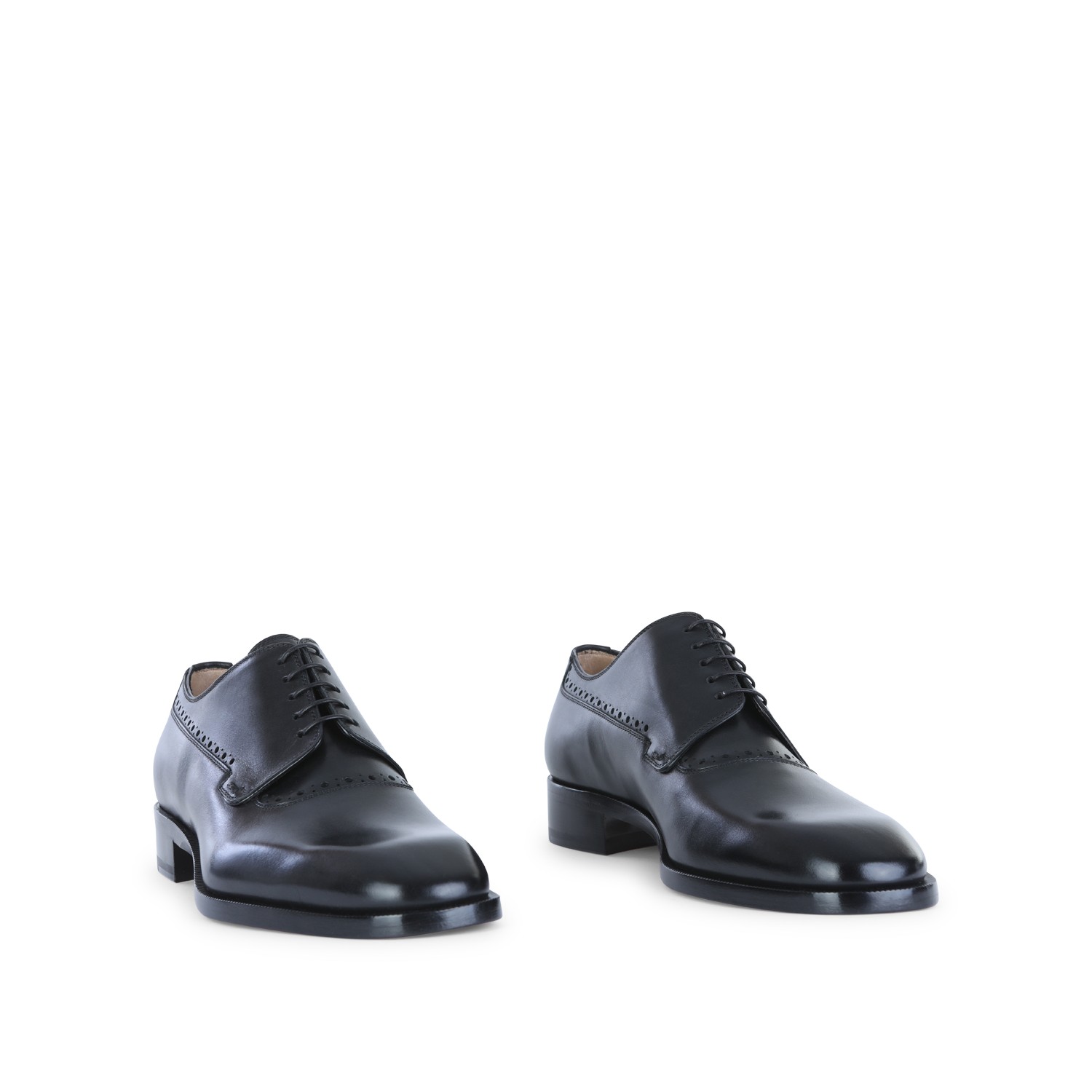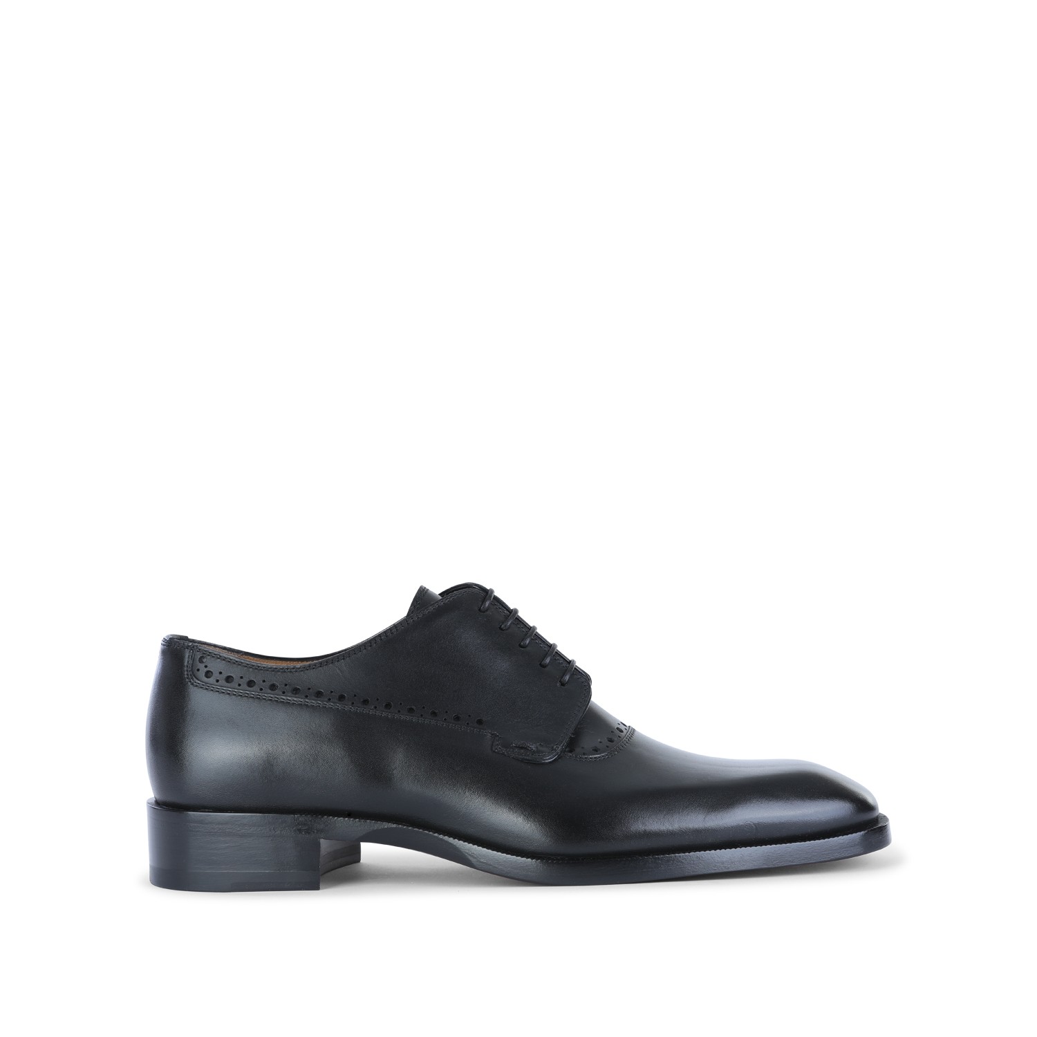 Black leather lace up shoes from Christian Louboutin featuring square toe, branded insole, cotton laces and classic line.