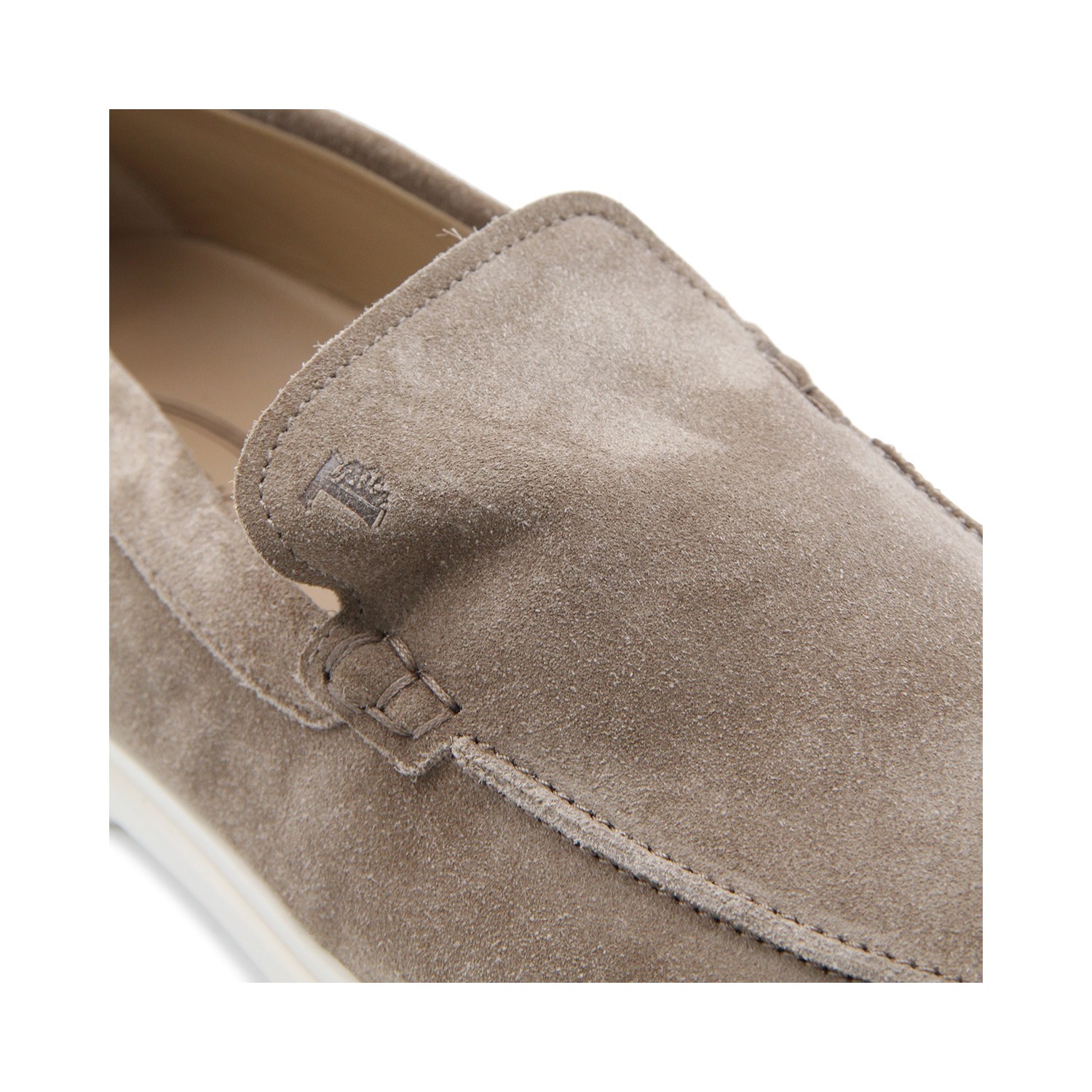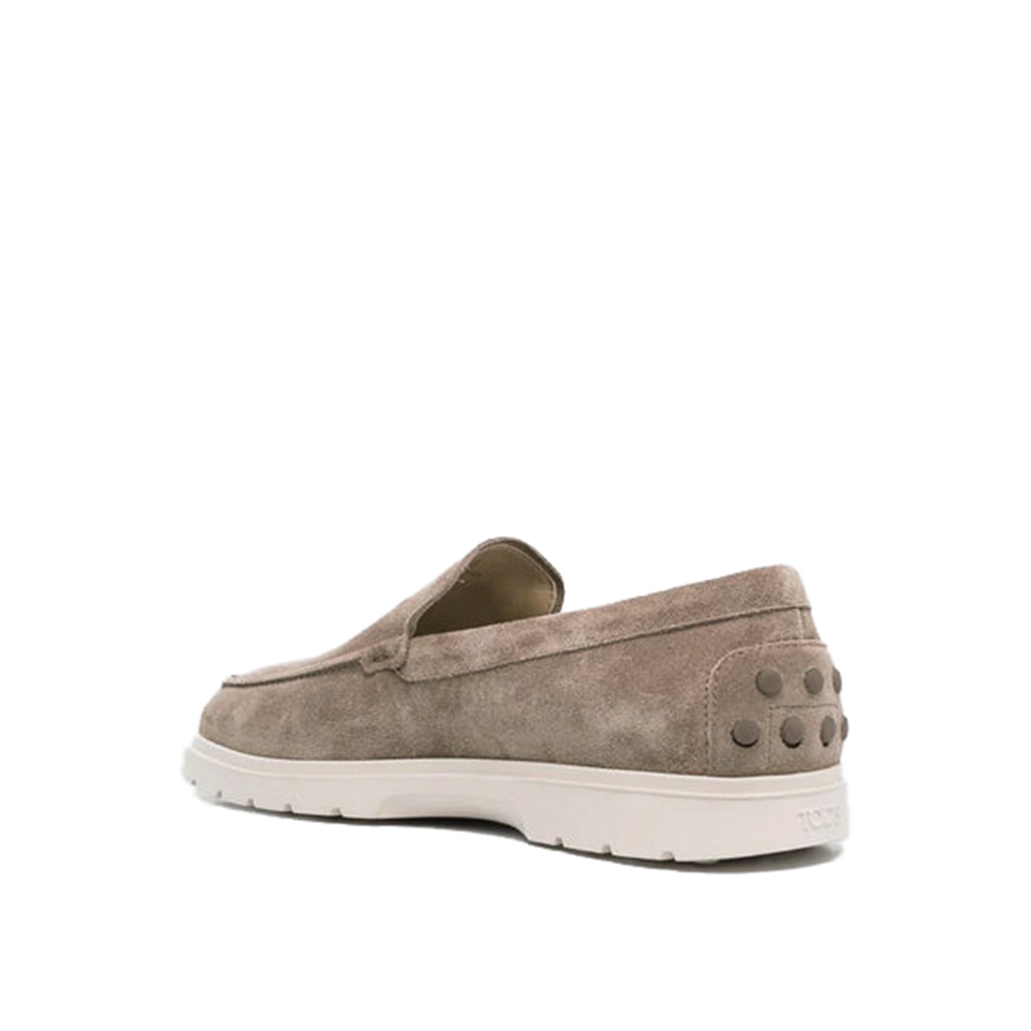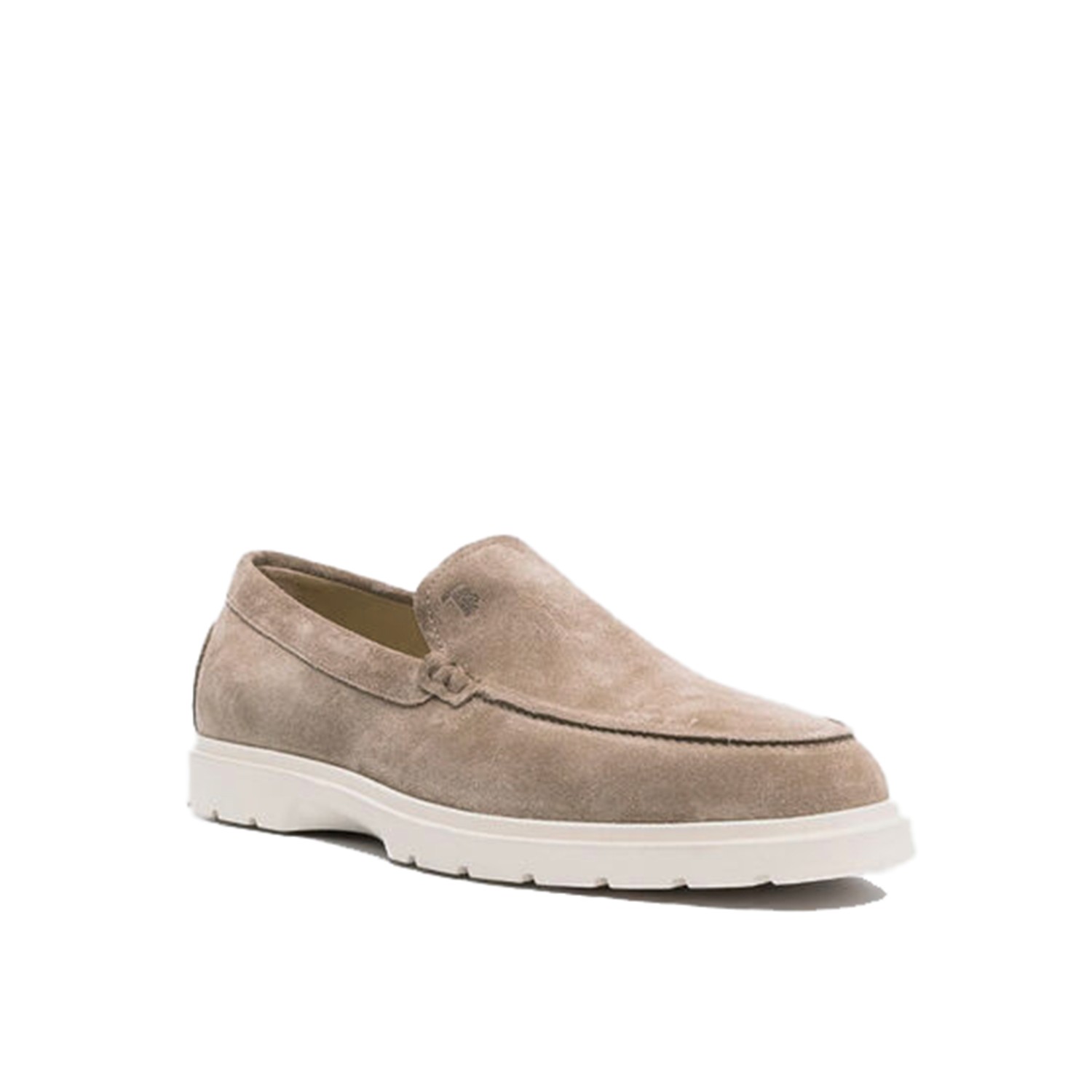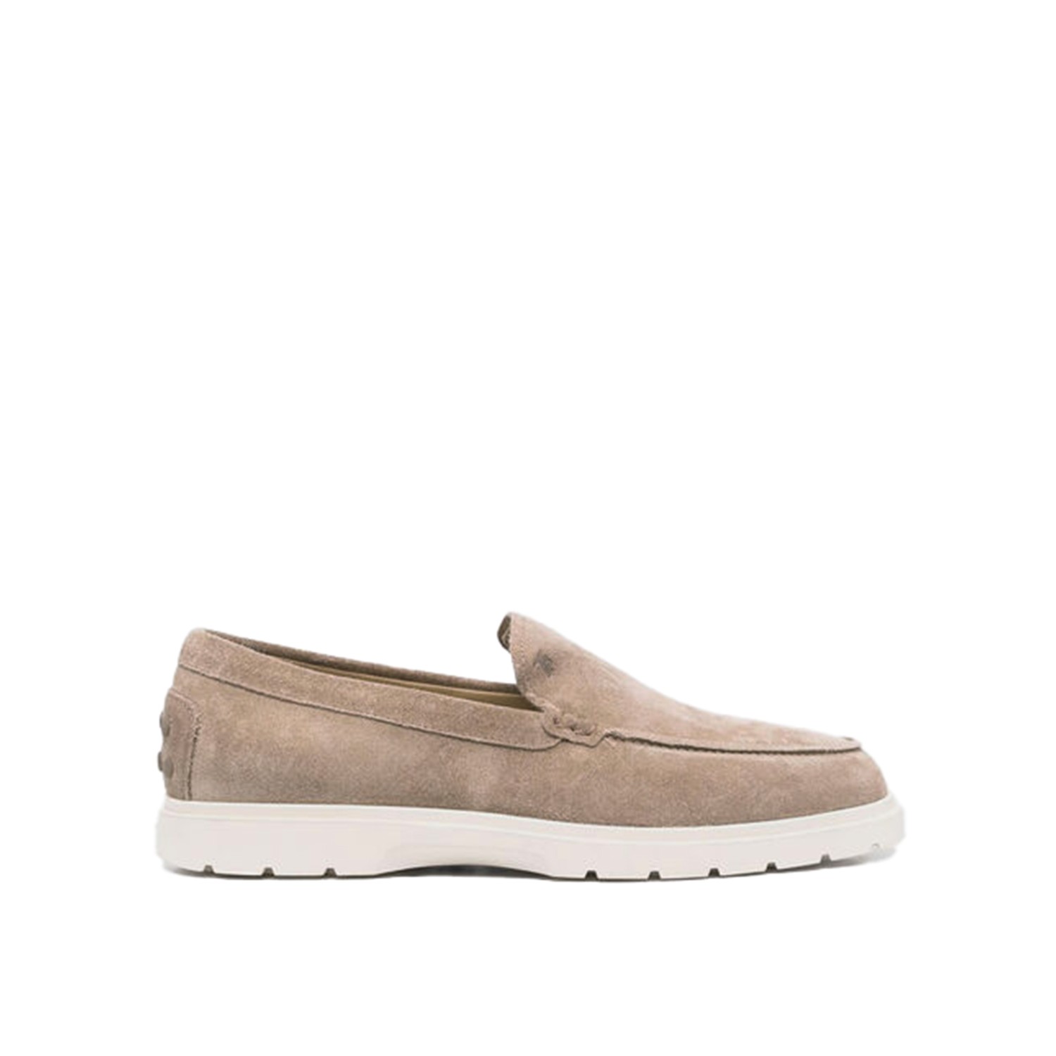 Beige suede loafers from Tod's featuring rubber sole, round toe, slip on styel, branded insole and Gommini details.