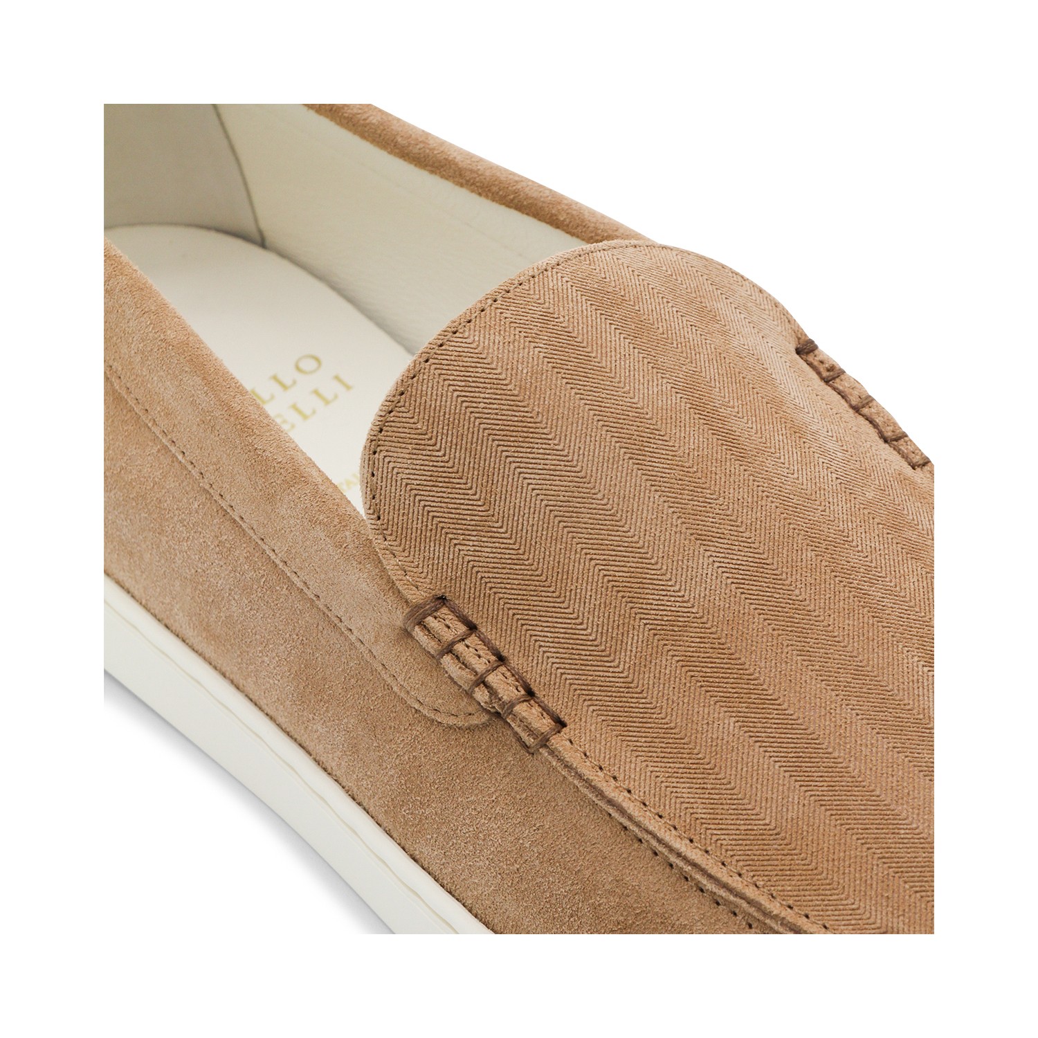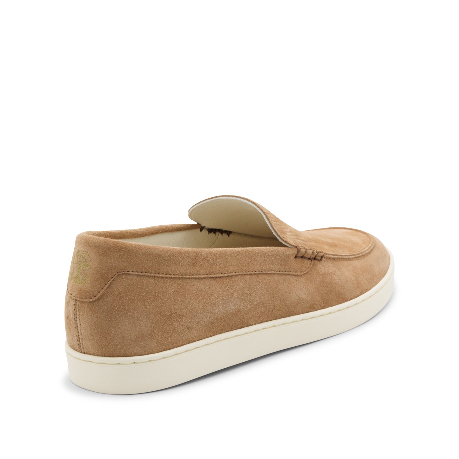 Beige leather loafers from Brunello Cucinelli featuring round toe, slip-on style, leather sole and logo.