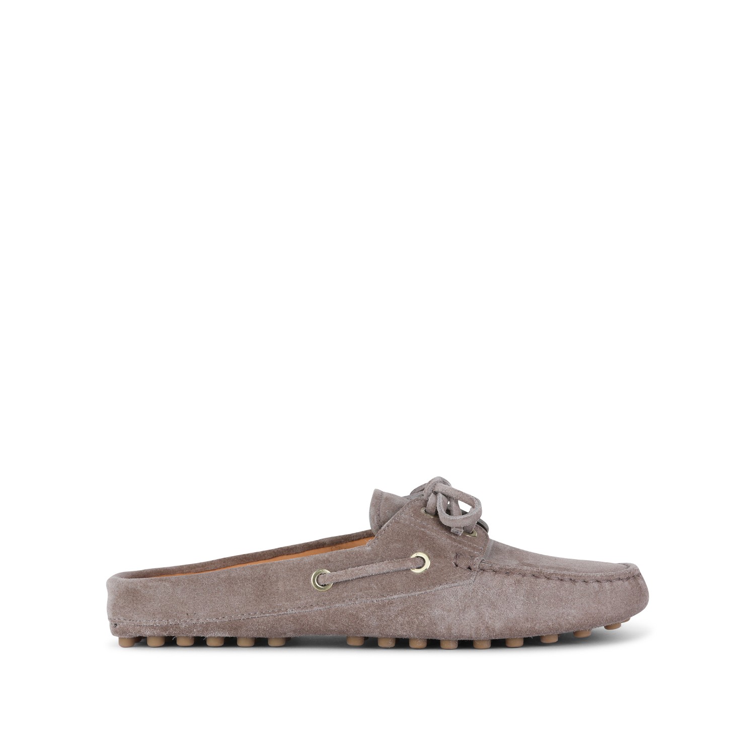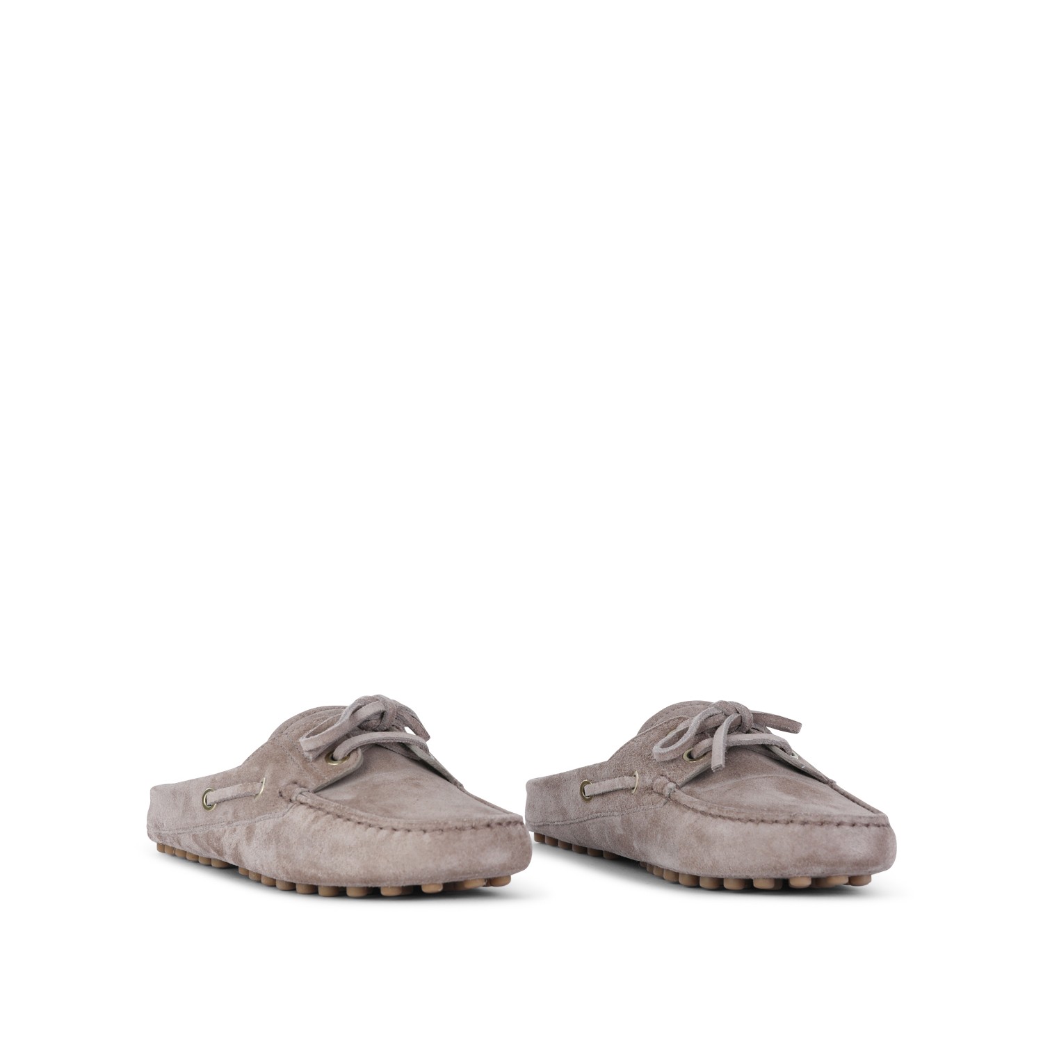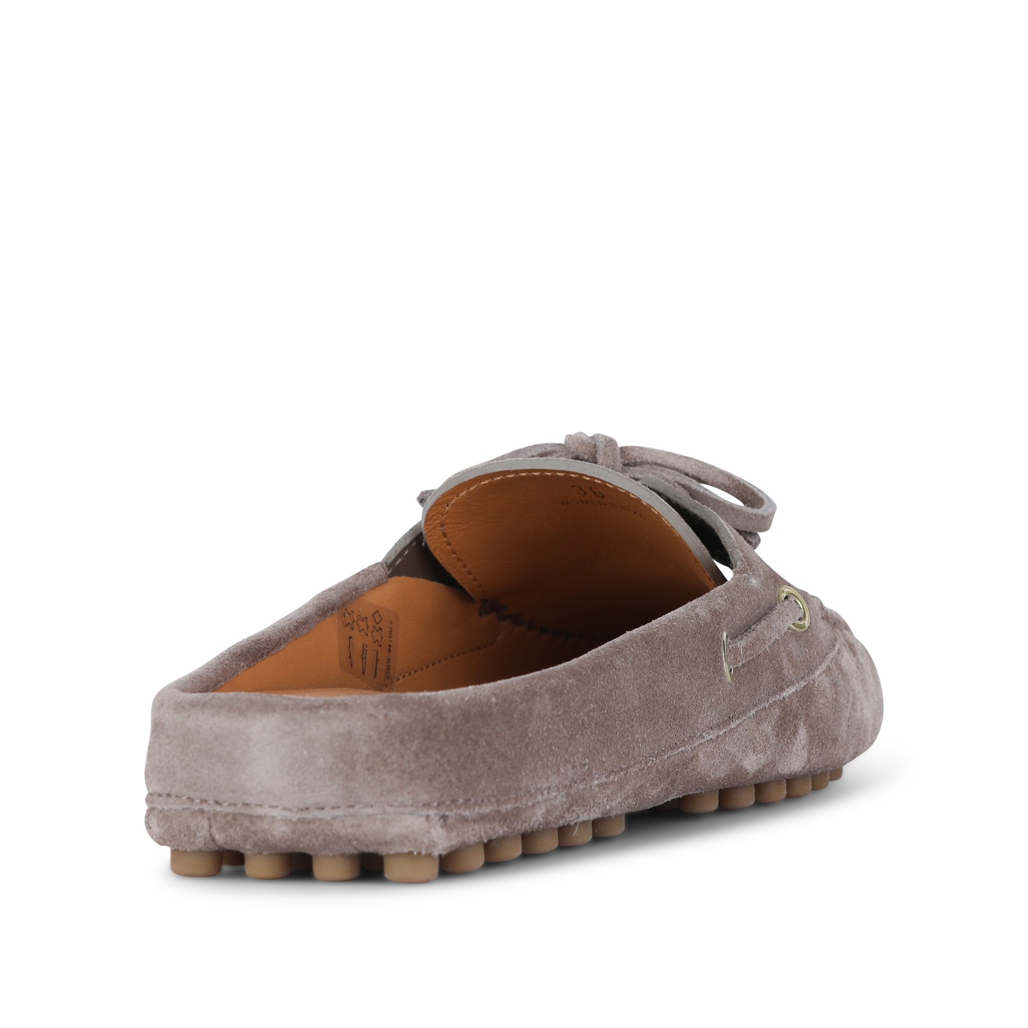 Beige leather loafers from Tod's featuring round toe, slip-on style, open back, lace detail, stitchings and rubber sole.