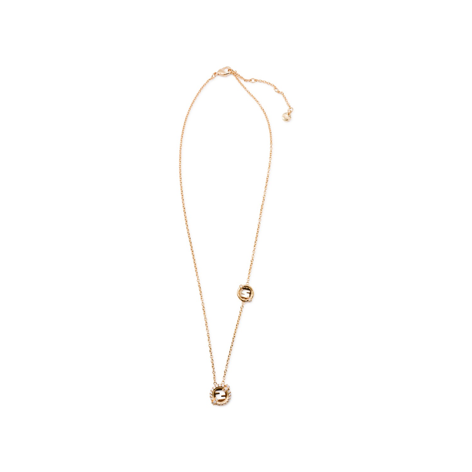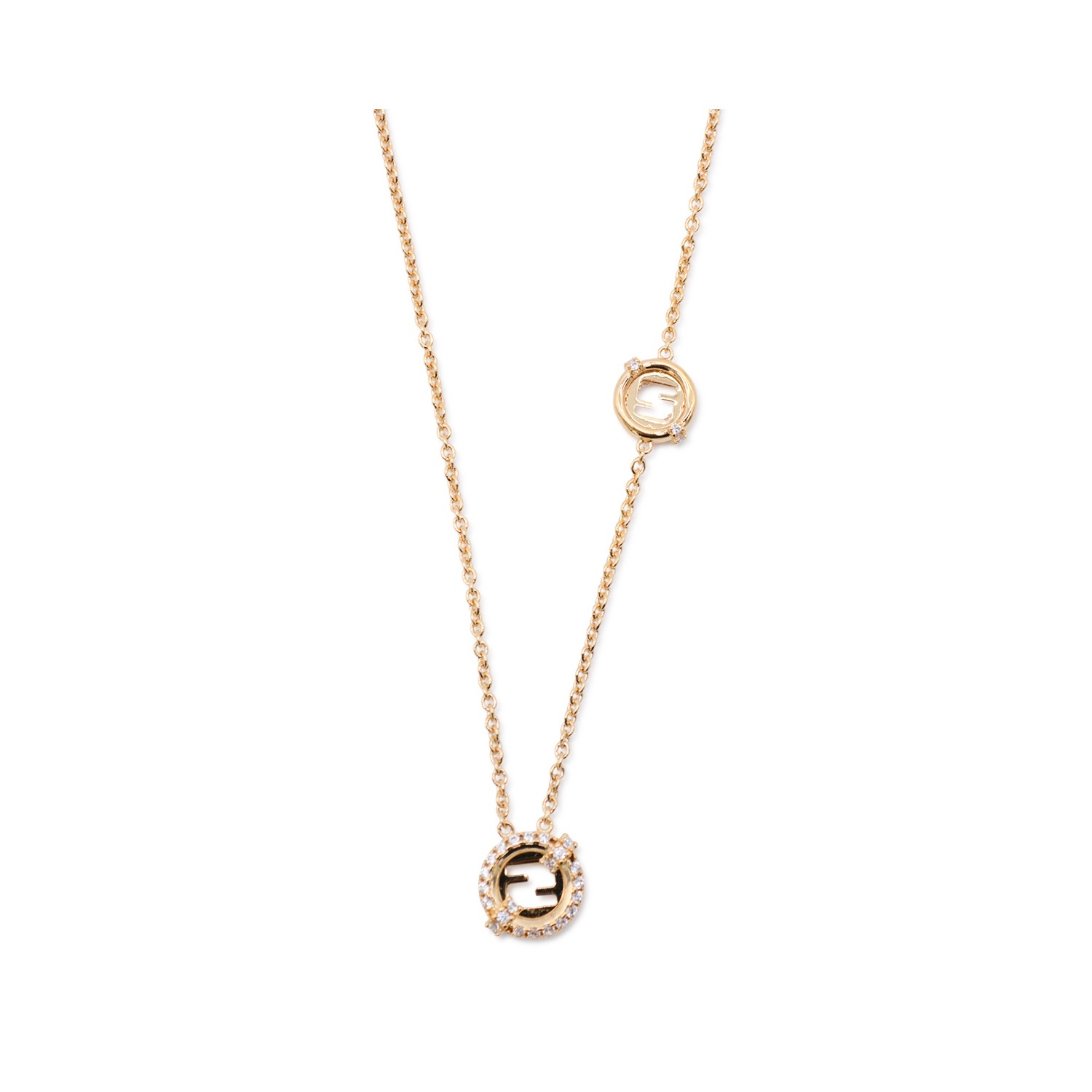 Gold metal Ever Round necklace from Fendi featuring FF logo details, crystals and classic fastening.