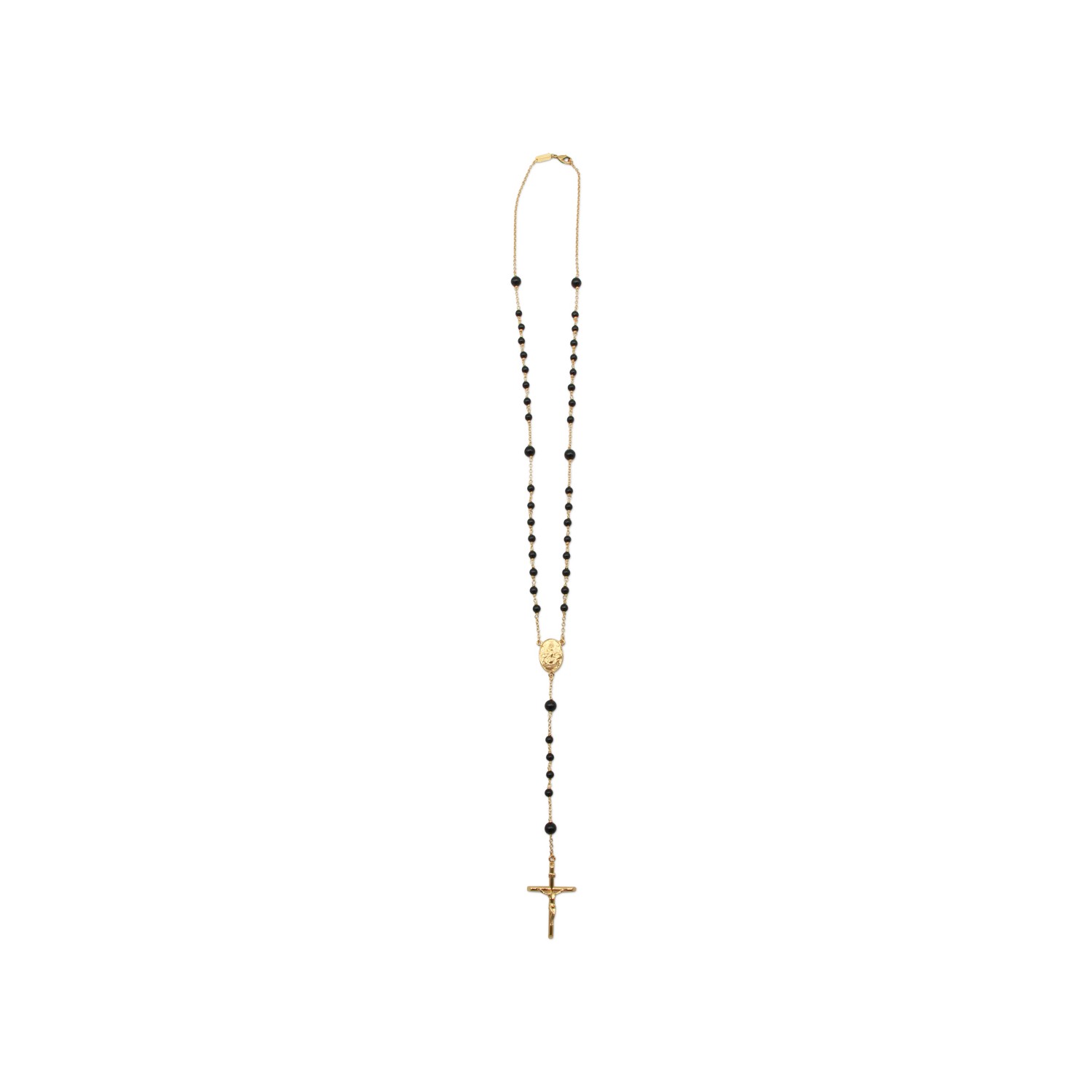 Gold and black metal necklace from Dolce & Gabbana featuring cross pendant, black beads and classic fastening.