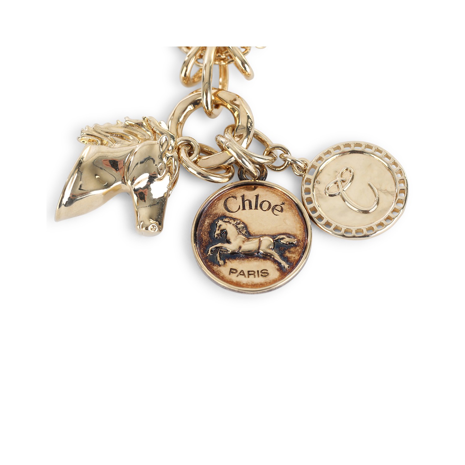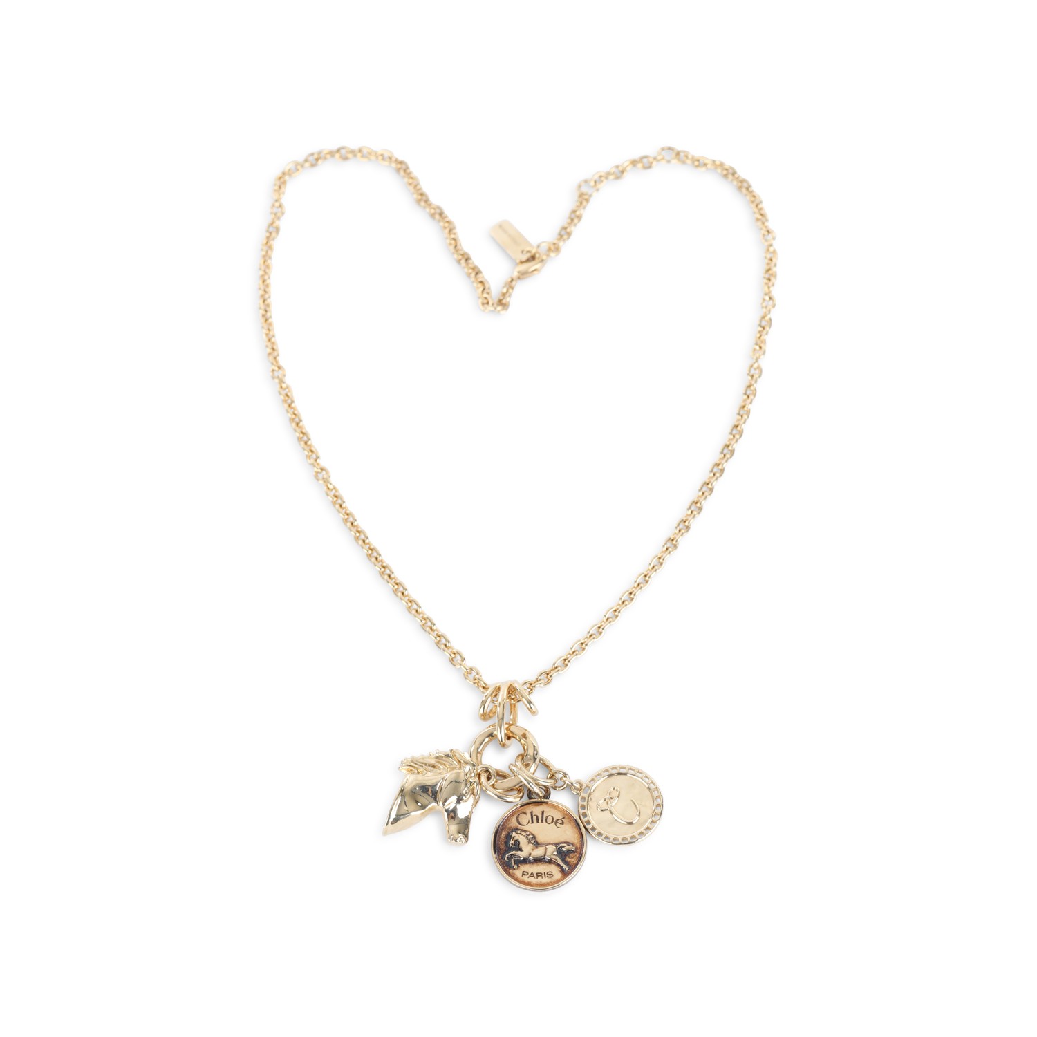 Vintage gold necklace from Chlofeaturing hook fastening and charms.