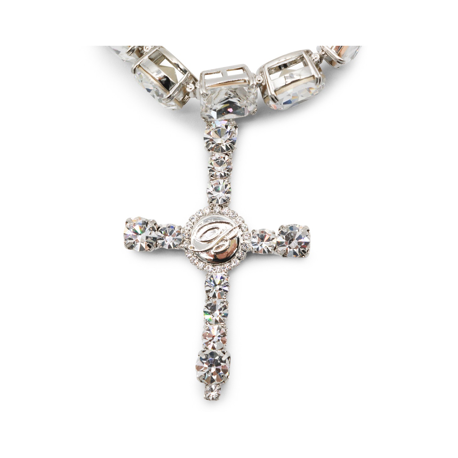 Crystal necklace from Blumarine featuring cross pendant, choker style, gemstones and classic fastening.