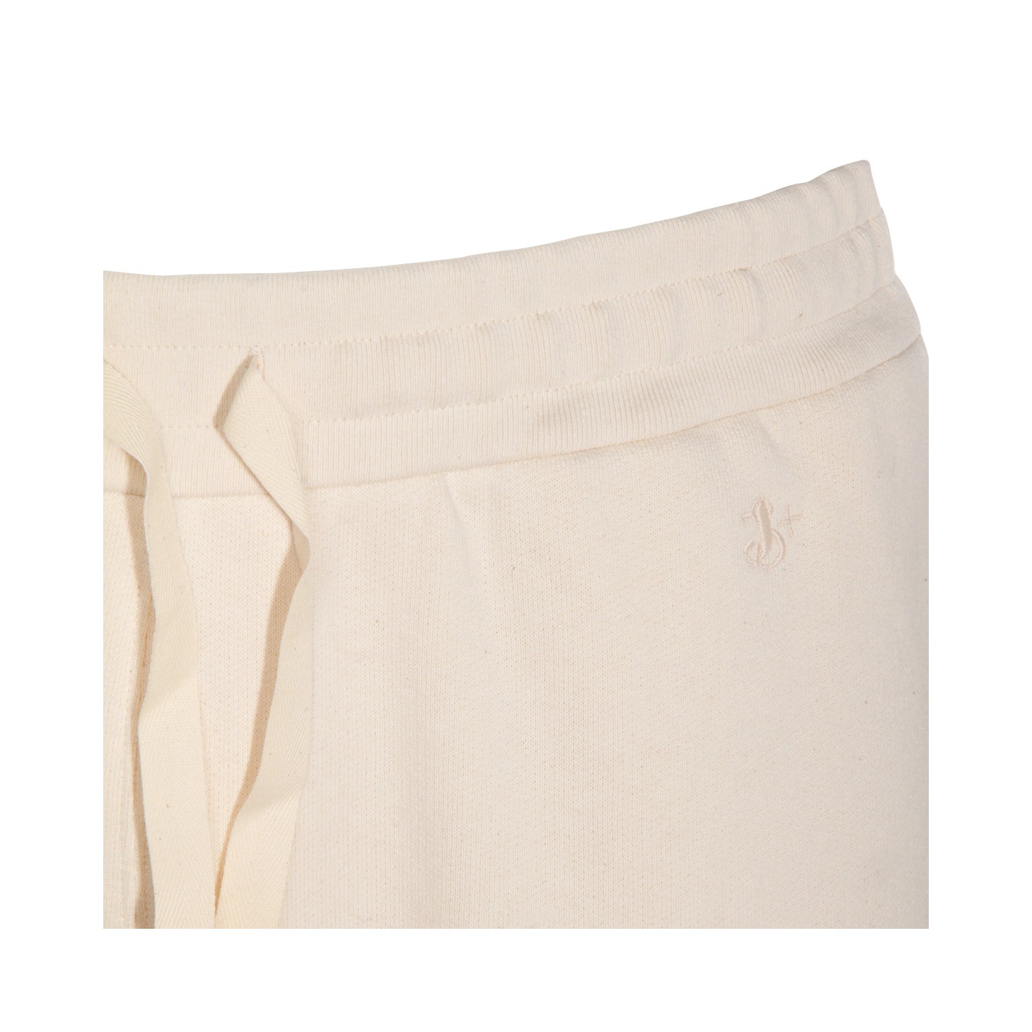 Cream cotton pants from Jil Sander featuring elasticated waist with drawstring, pockets, elasticated cuffs and regular vestibility.