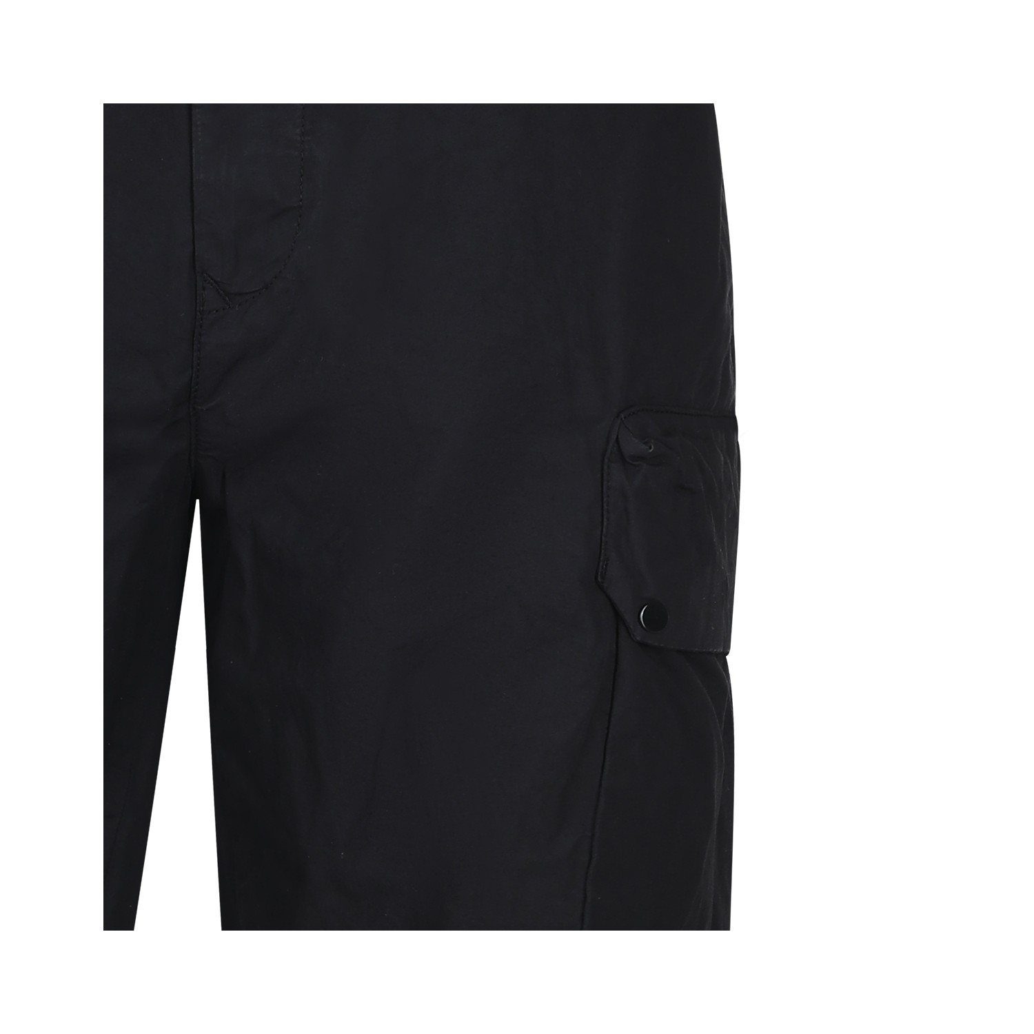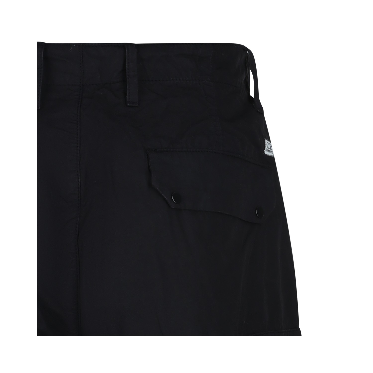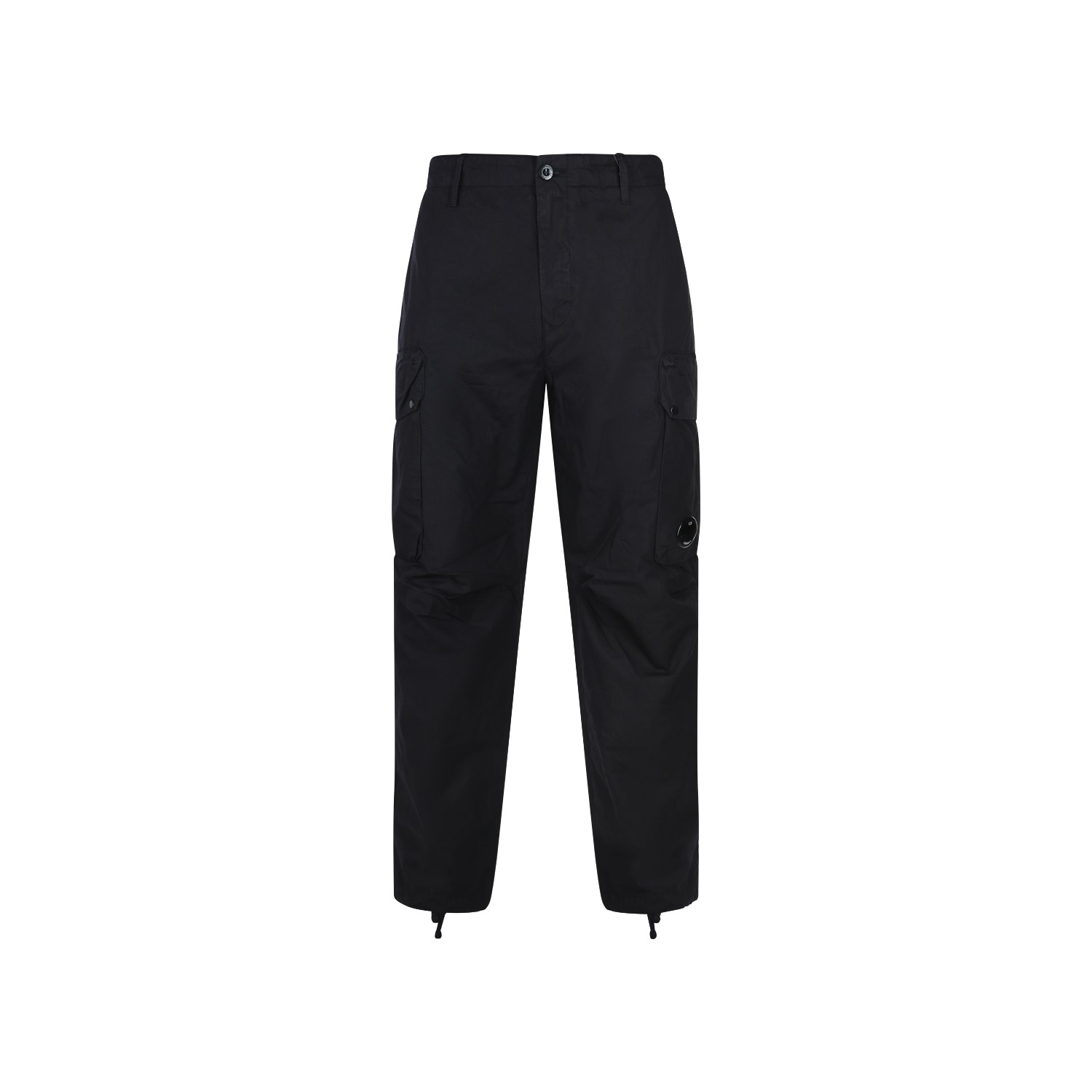 Black cotton pants from CP Company featuring mid waist, belt loops, button and zip fastening, lateral cargo pockets, logo patch and regular vestibility.