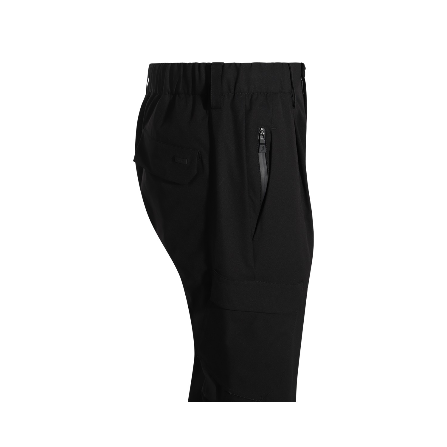 Black pant from Herno featuring elasticated waist, button and zip fastening, lateral pockets, belt loops and regular vestibility.