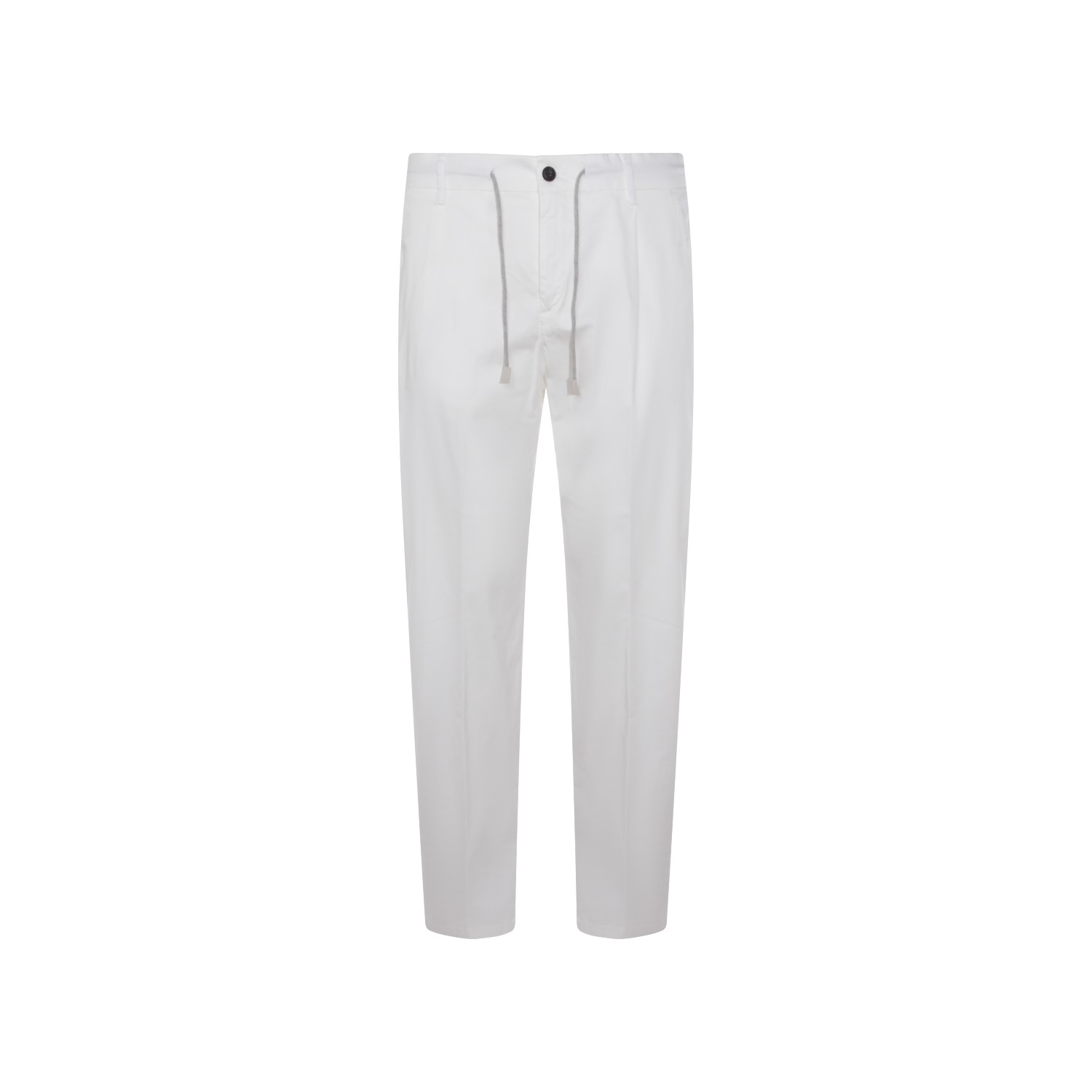 White cotton pant from Eleventy featuring button and zip fastening, belt loops, drawstrings, pockets and regular vestibility.
