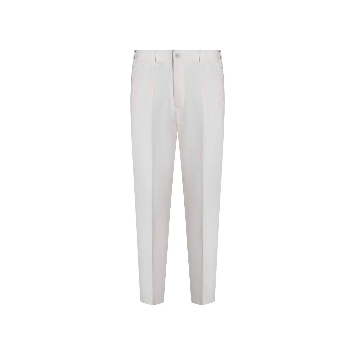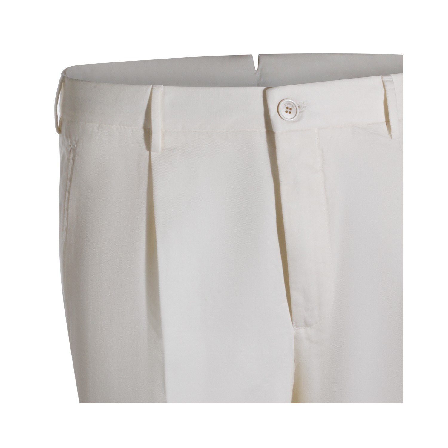 White cotton linen blend pants from Incotex featuring belt loops, zip and button fastening, frontal pleats and regular fit.