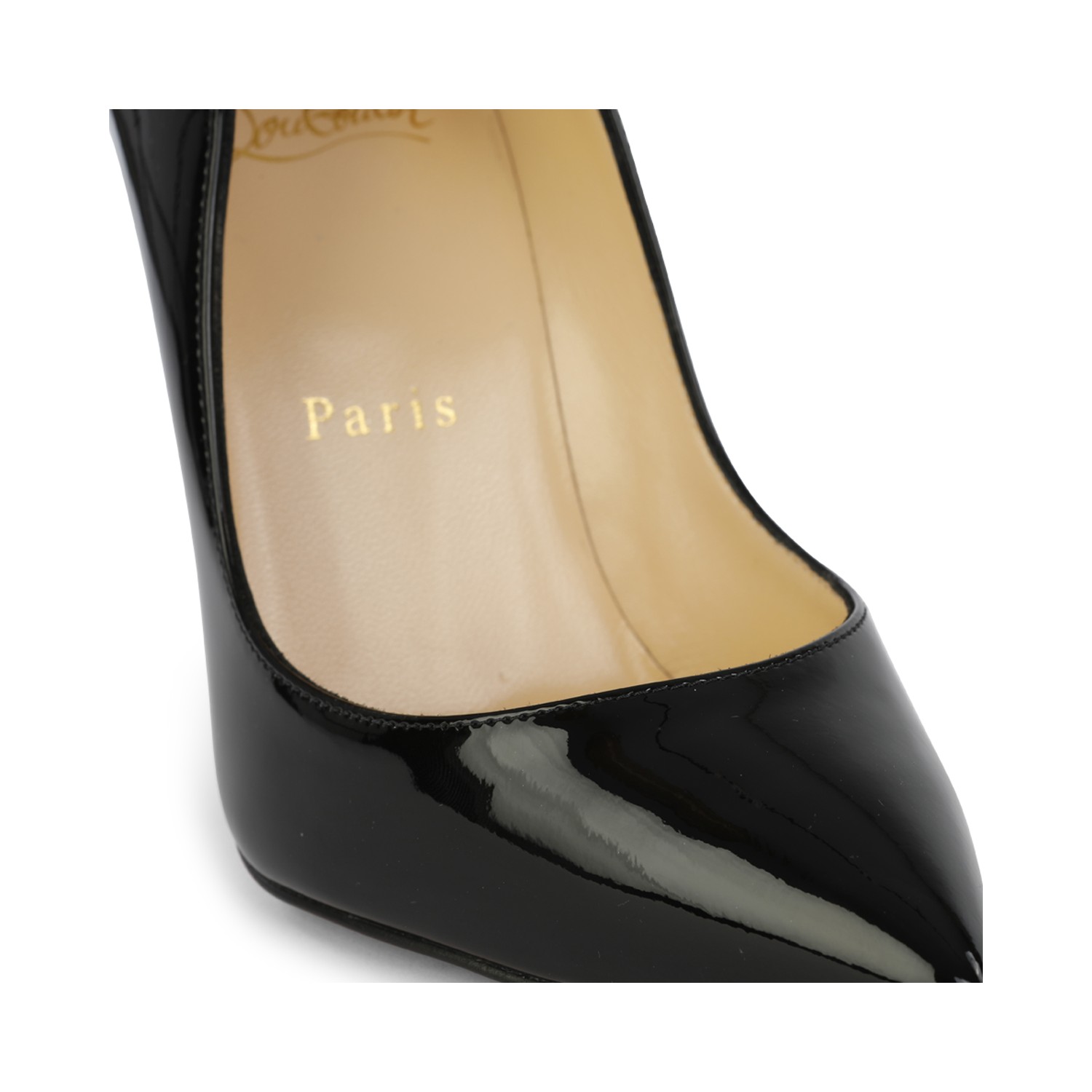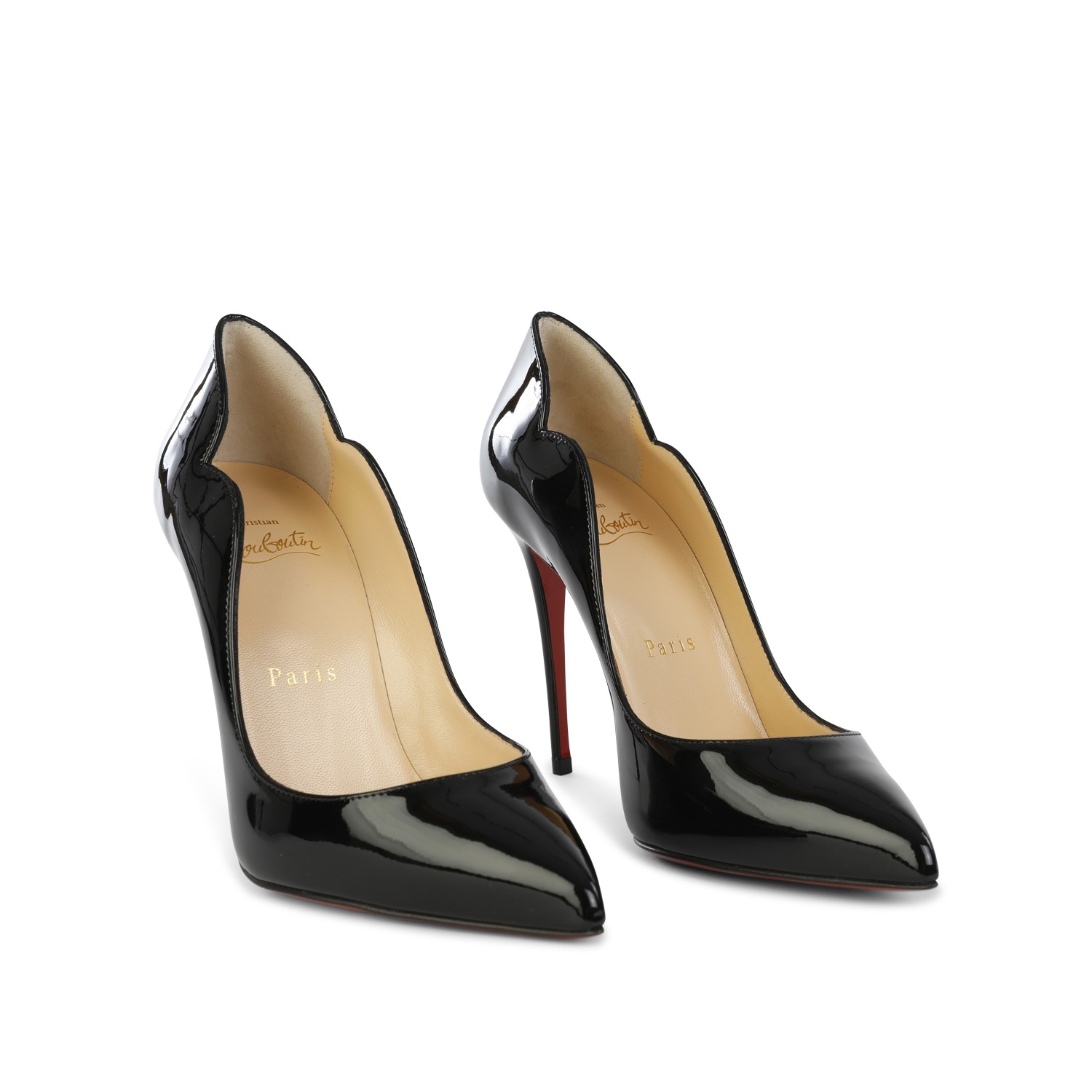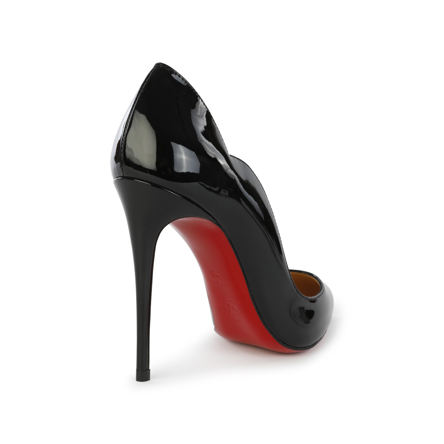 Black leather Hot Chick 100 Patent pumps from Christian Louboutin featuring pointed toe, stiletto heel, branded insole and details.