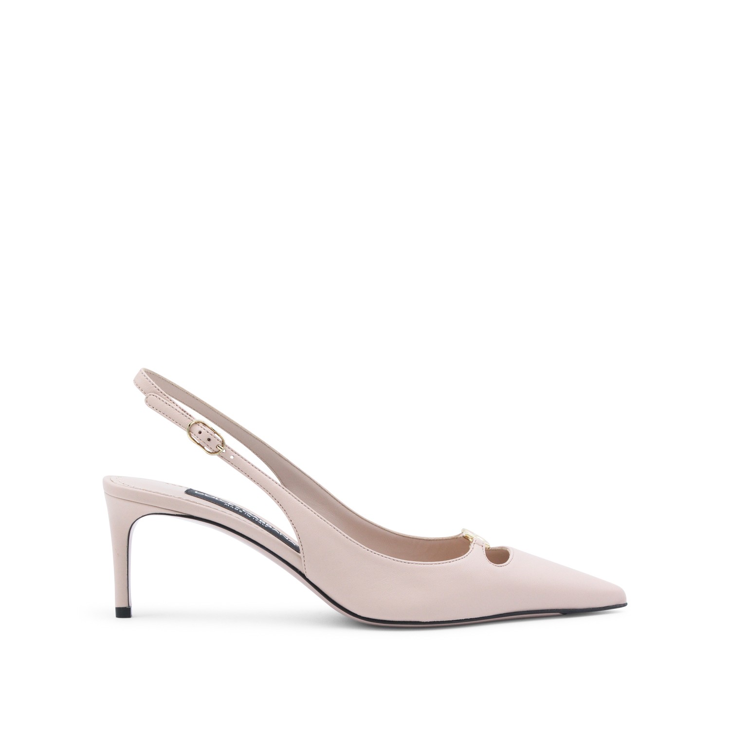 Light pink pumps from Dolce&Gabbana featuring pointed toe, stiletto heel, buckle fastening and open back.