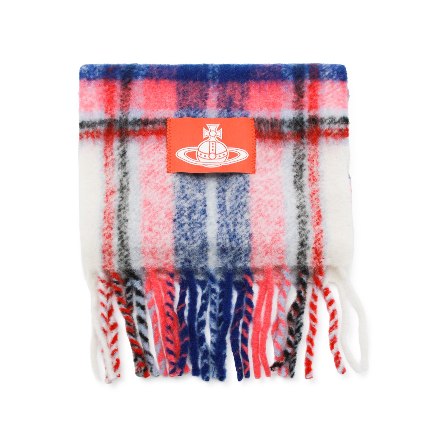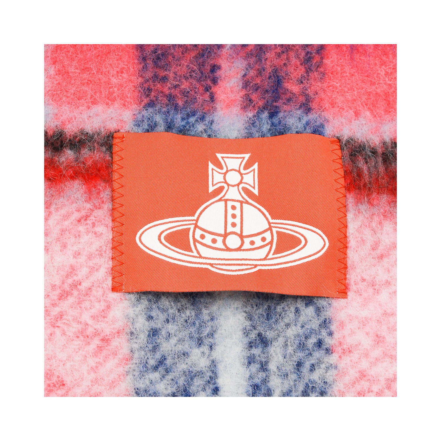 Multicolor wool scarf from Vivienne Westwood featuring fringed hem, logo patch and print decoration.