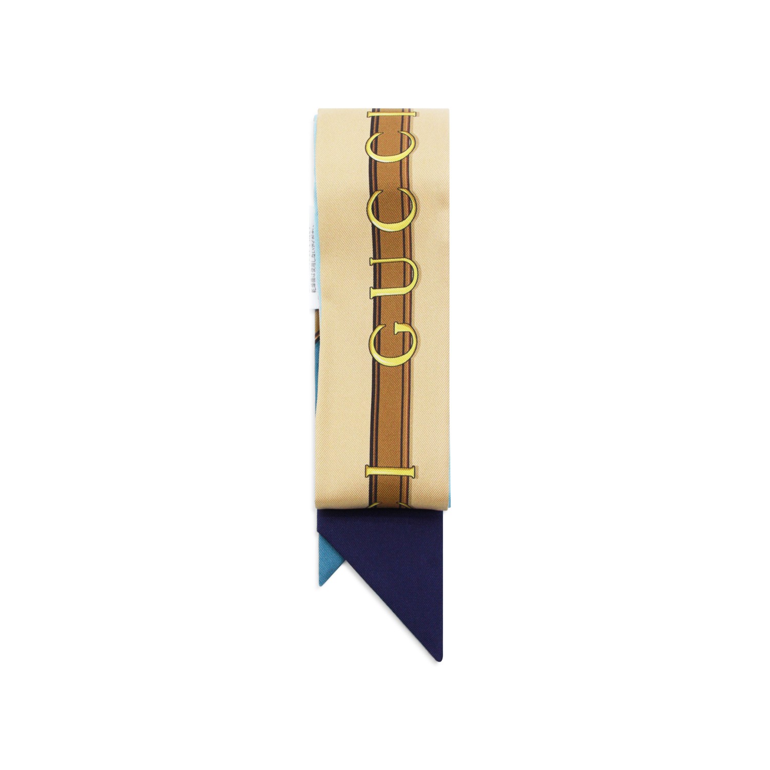 Blue silk scarf from Gucci featuring all-over horsebit print, silk and pointed tip.