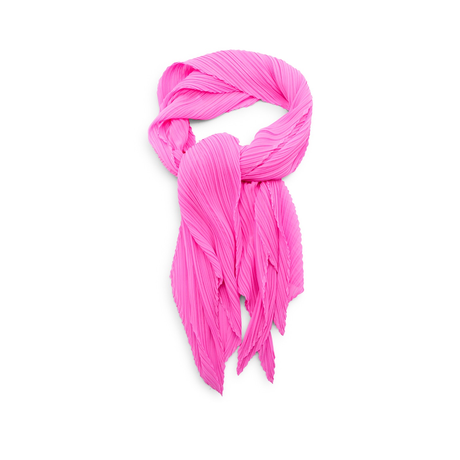 Hot pink pleated scarves from Pleats Please Issey Miyake featuring all over plisse and trangle shape.