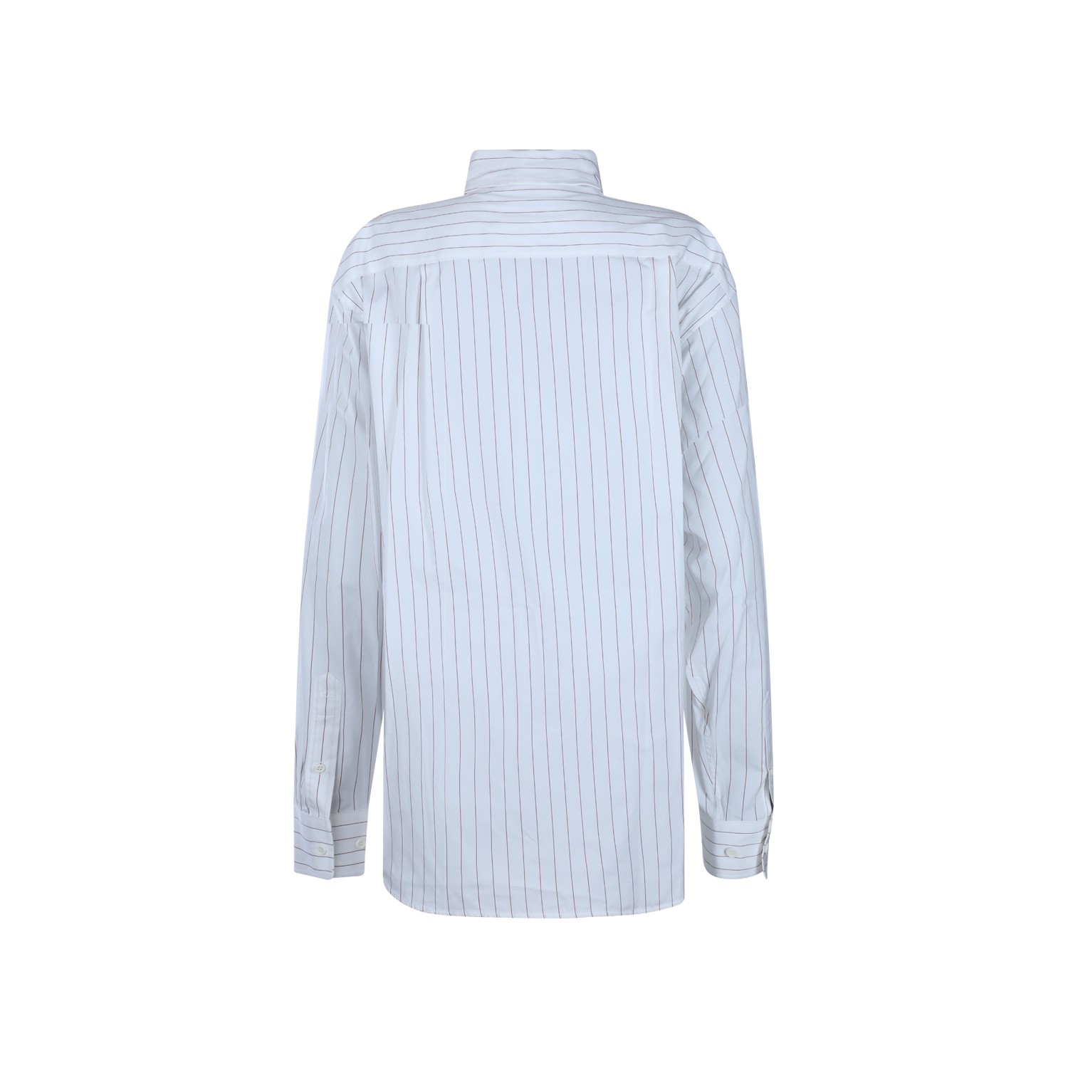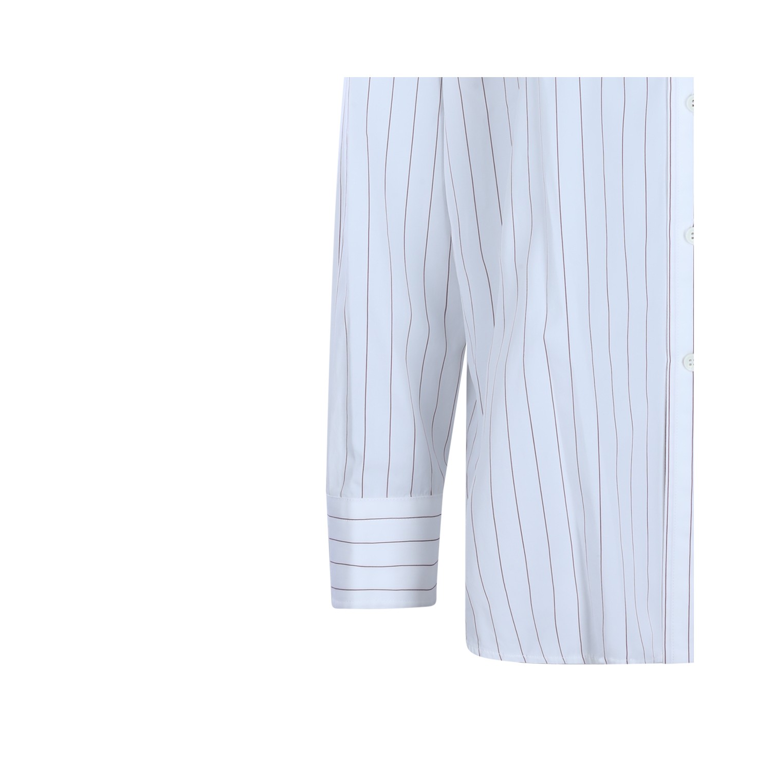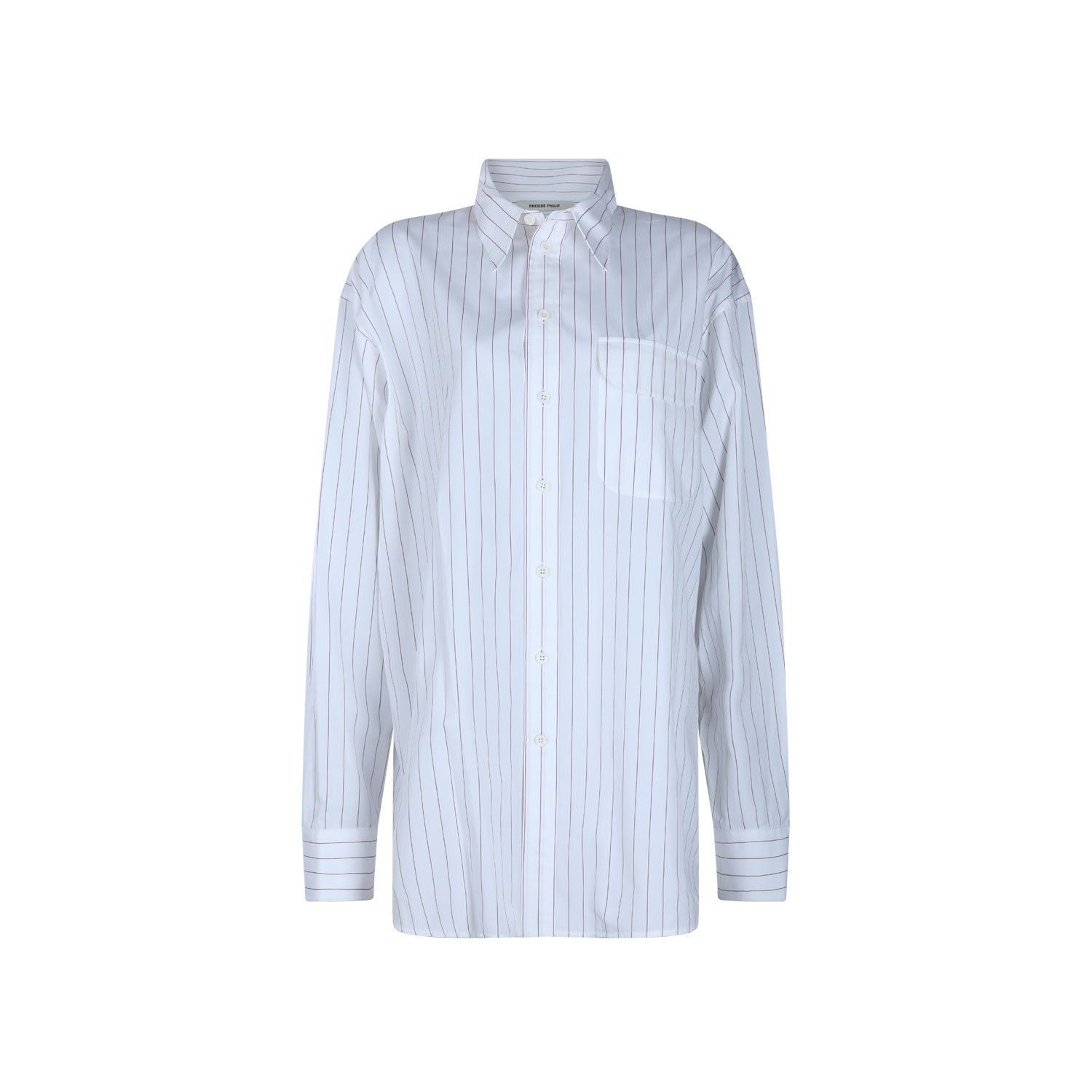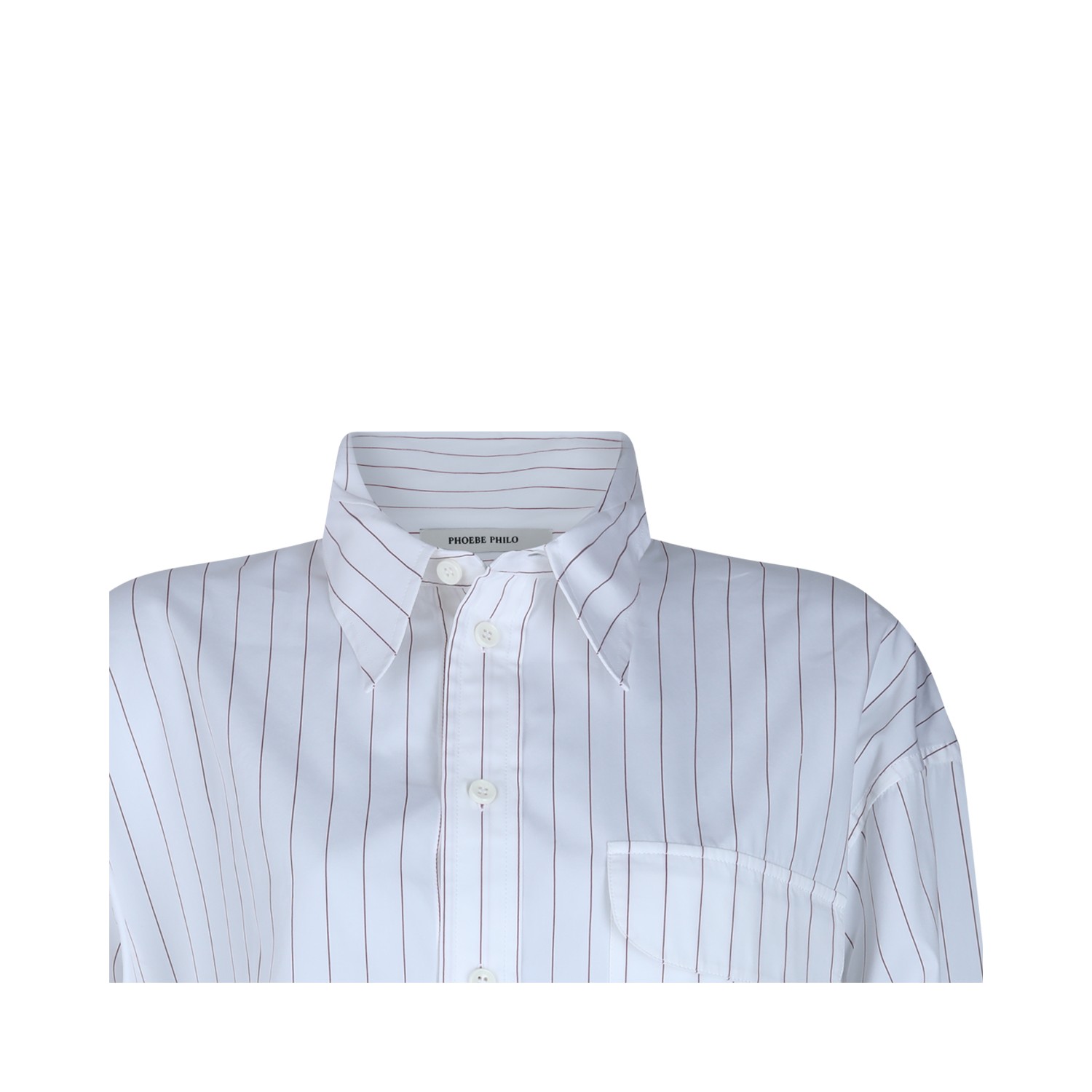 White and bordeaux cotton shirt from Phoebe Philo featuring shir collar, long sleeves, striped motif, buttons fastening, chest pocket and regular vestibility.