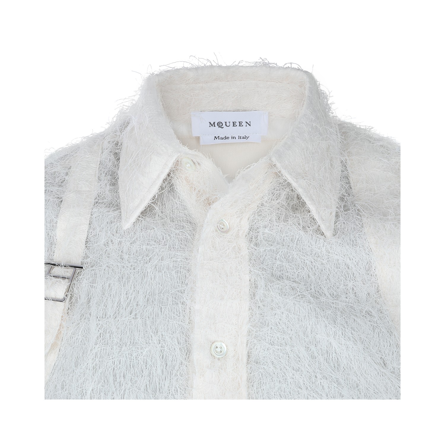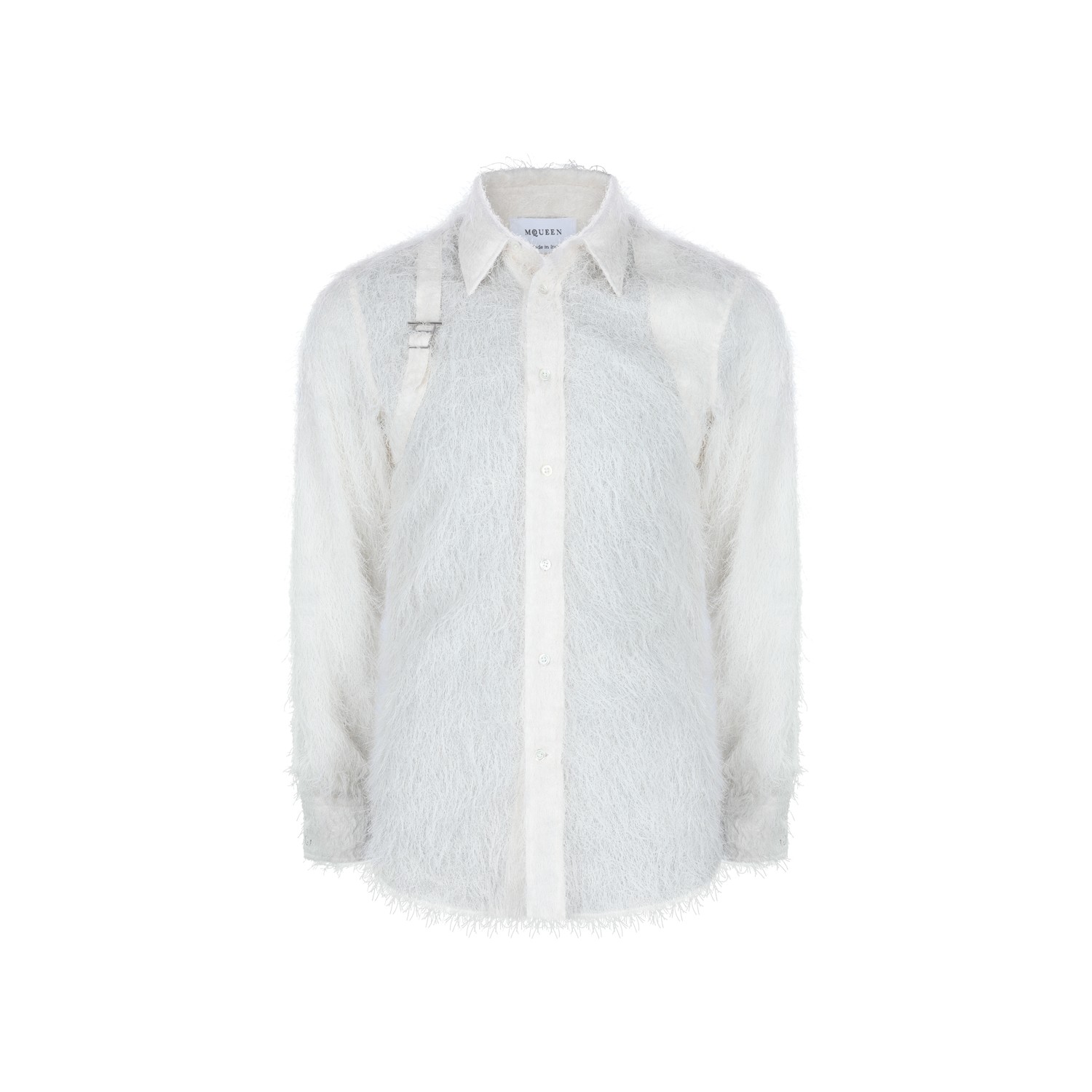 White shirt from McQueen featuring shirt collar, long sleeves, frontal buttons fastening, buckle detail and regular vestibility.