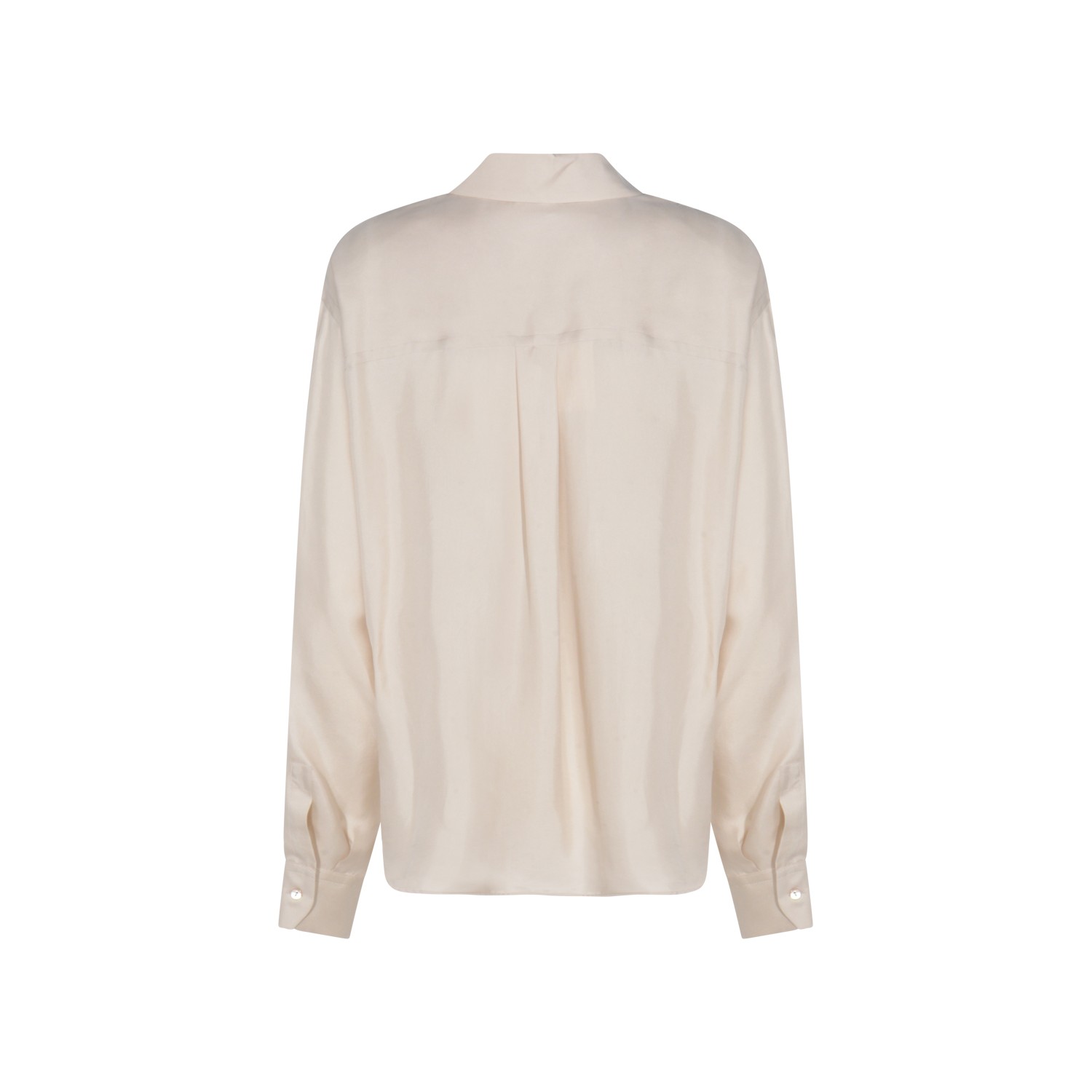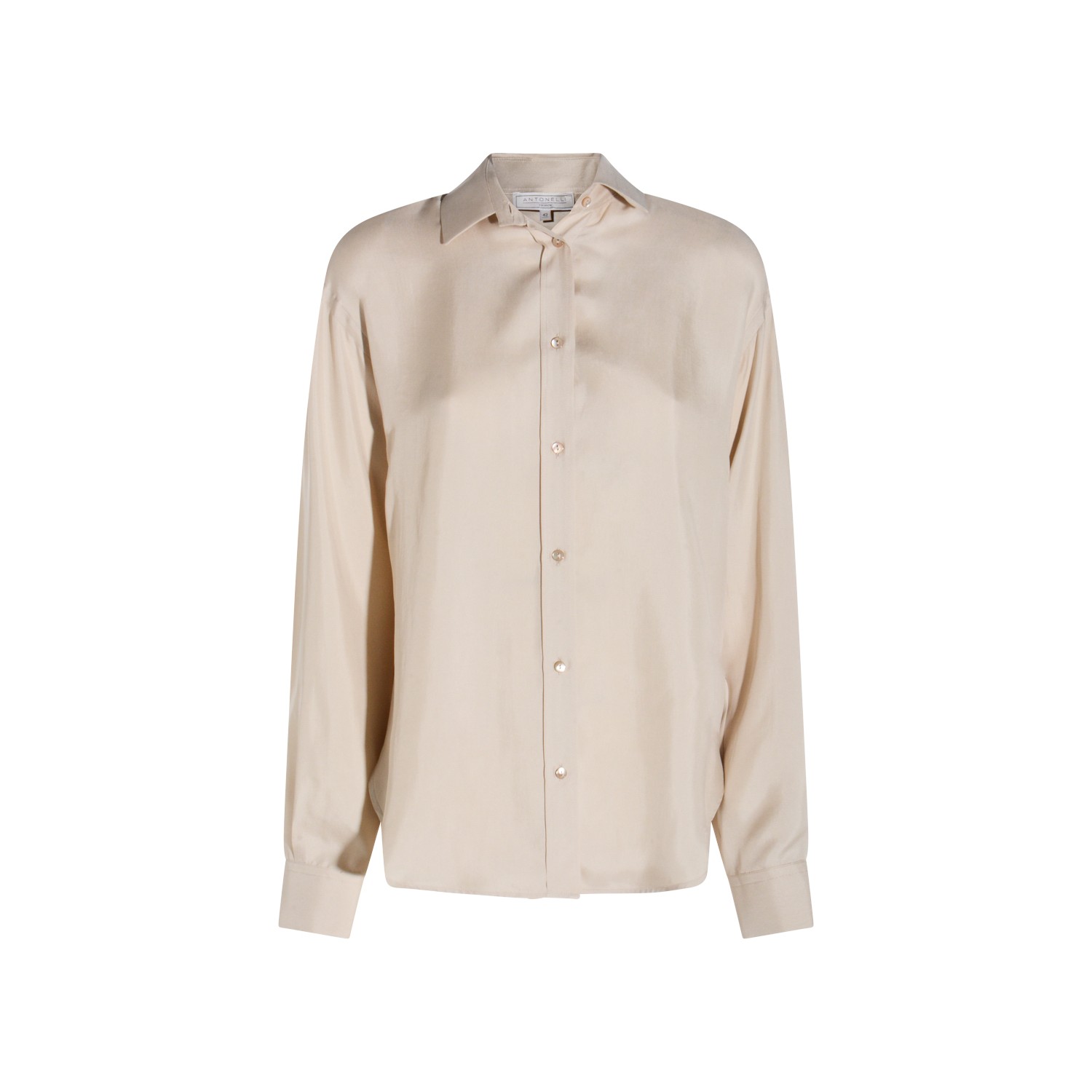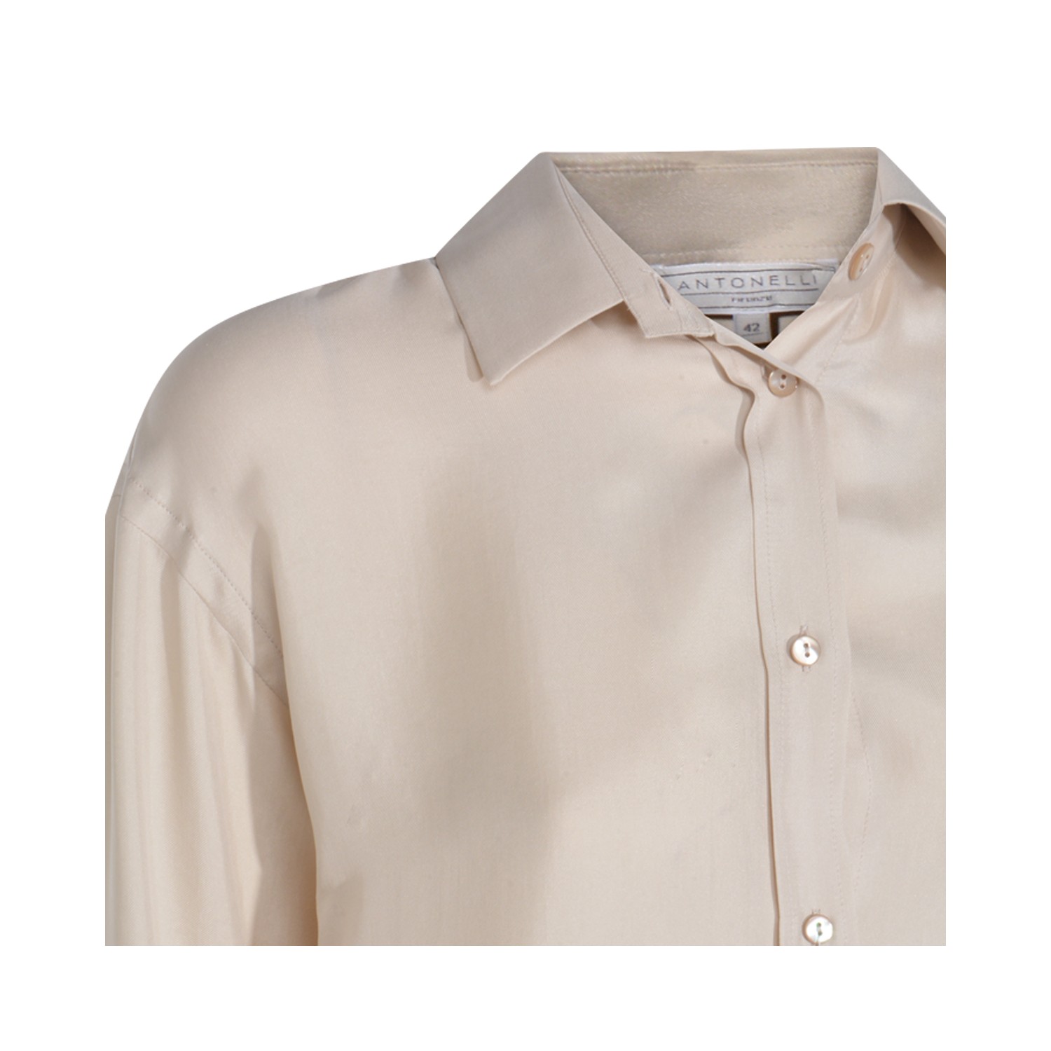 Beige silk Quirino shirt from Antonelli Firenze featuring shirt collar, long sleeves, frontal buttons fastening and regular vestibility.