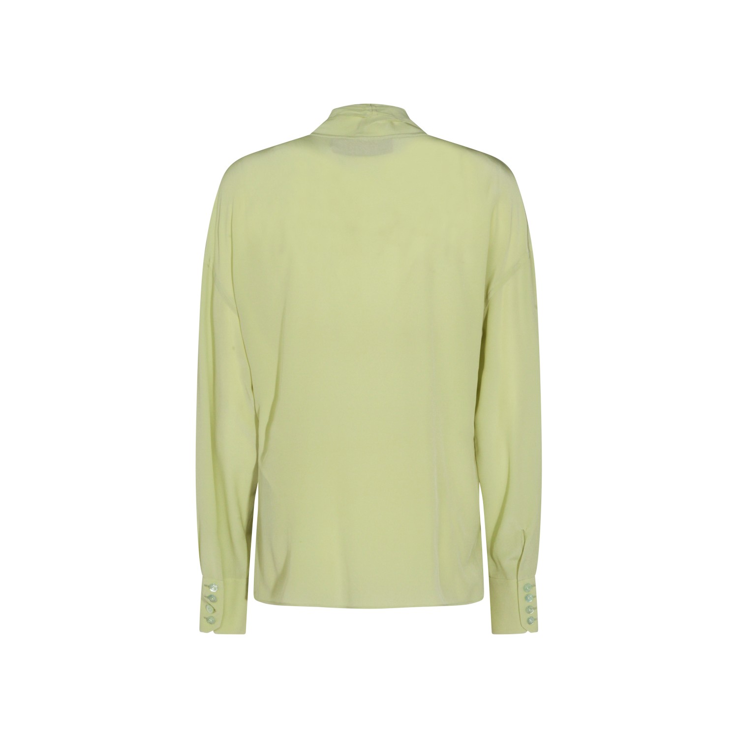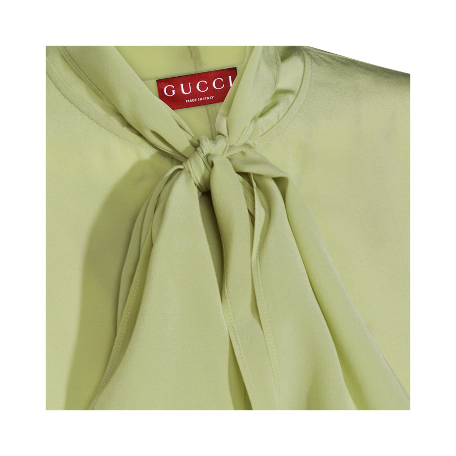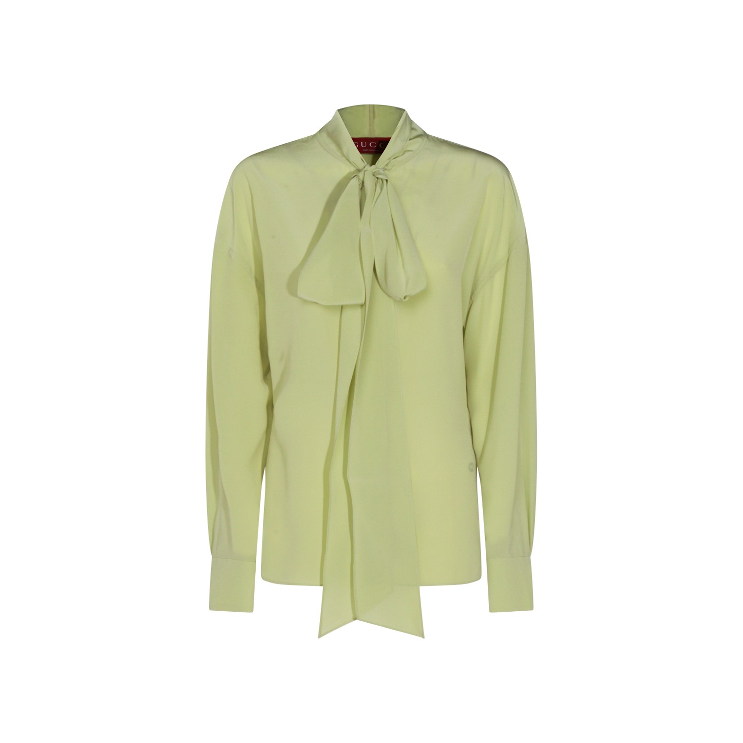 Light green silk shirt from Gucci featuring collar with bow, long sleeves and regular vestibility.