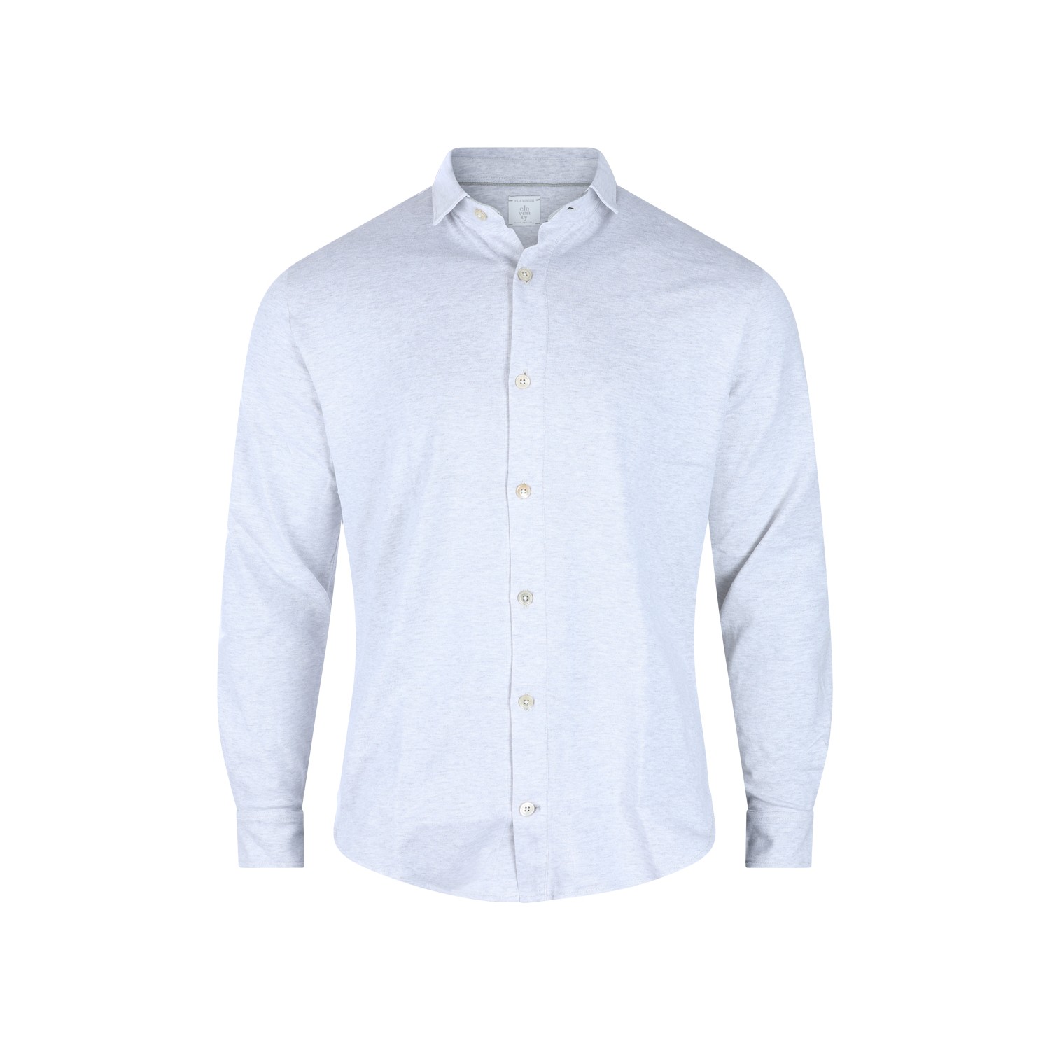 Grey cotton shirt from Eleventy featuring classic shirt collar, long sleeves, buttons fastening and regular vestibility.