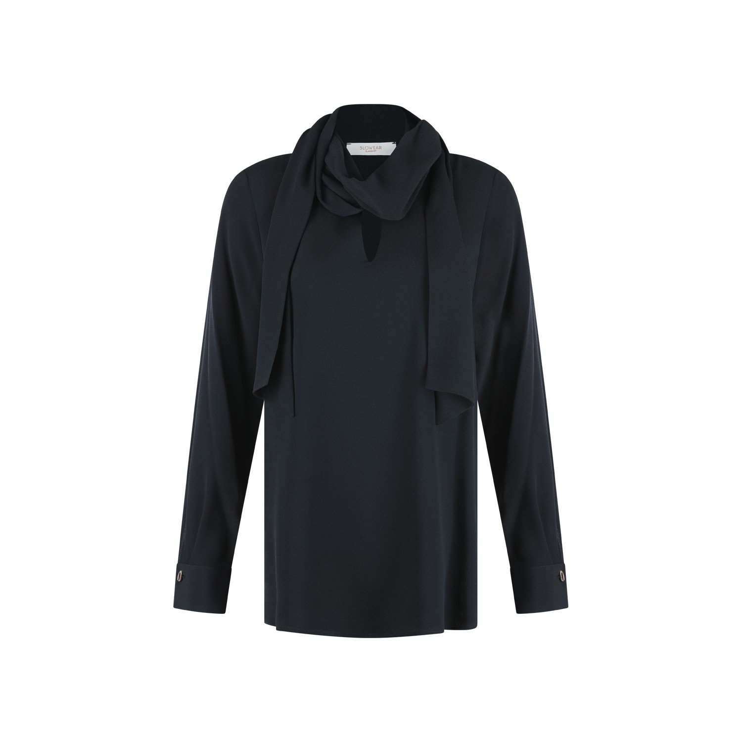 Black shirt from Glanshirt featuring V-neck, scarf, long sleeves and regular vestibility.