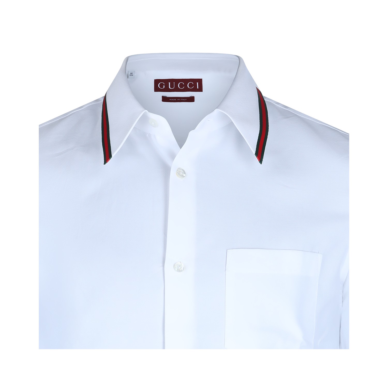 White cotton shirt from Gucci featuring regular collar, buttons fastening, long sleeves, pocket and regular vestibility.