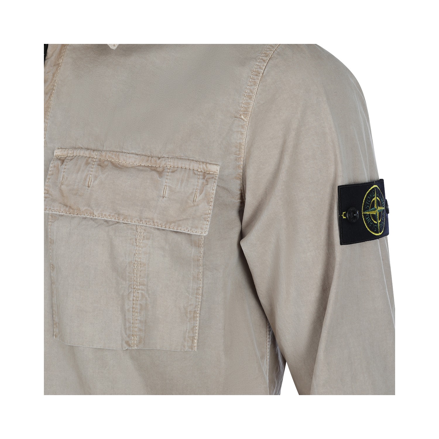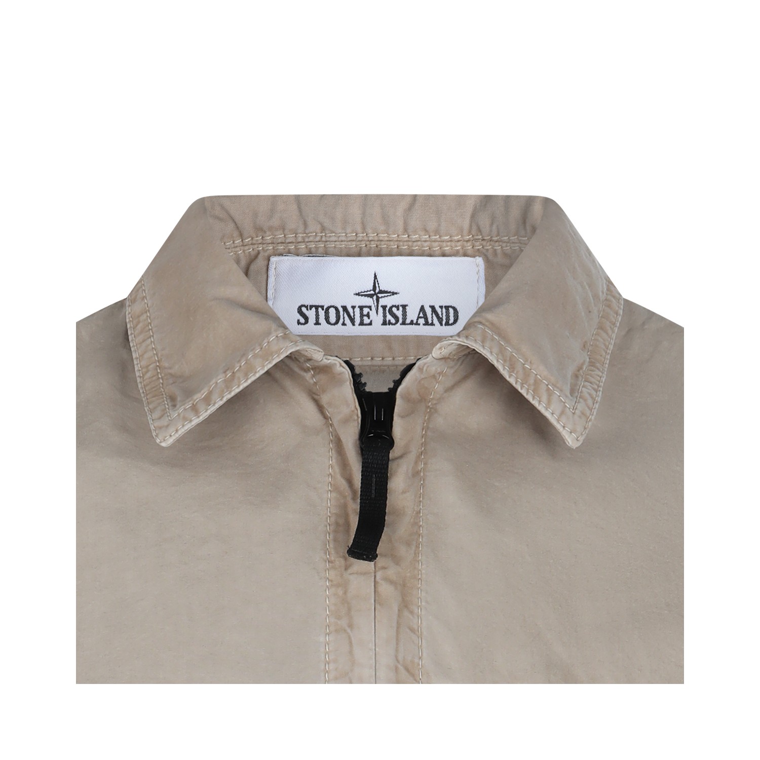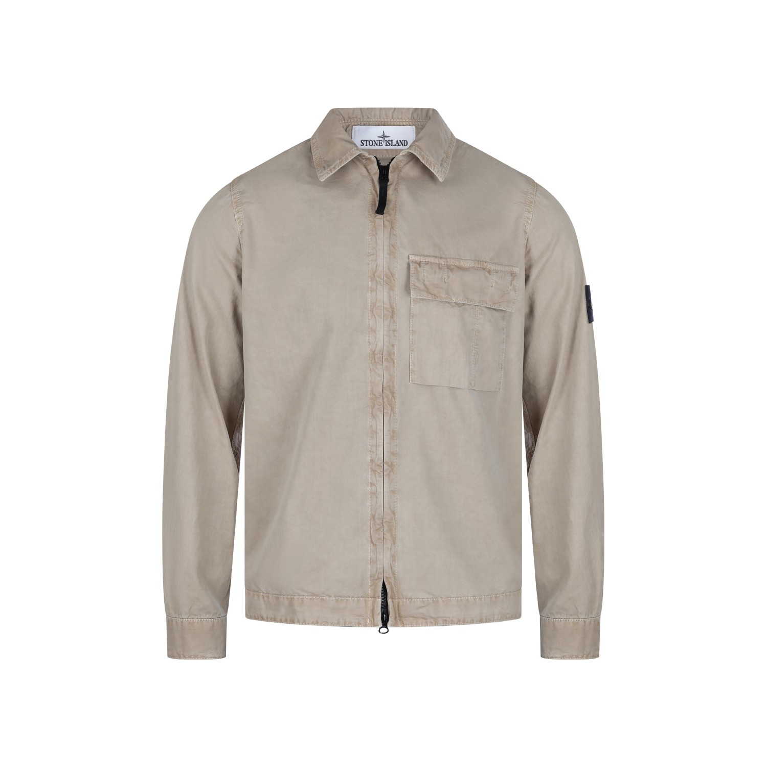 Beige cotton shirt from Stone Island featuring regular collar, zip fastening, long sleeves, pocket, lateral logo patch and regular vestibility.