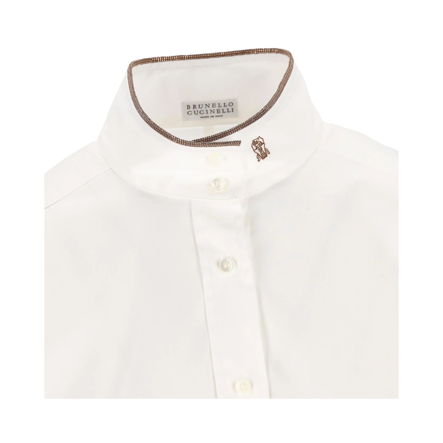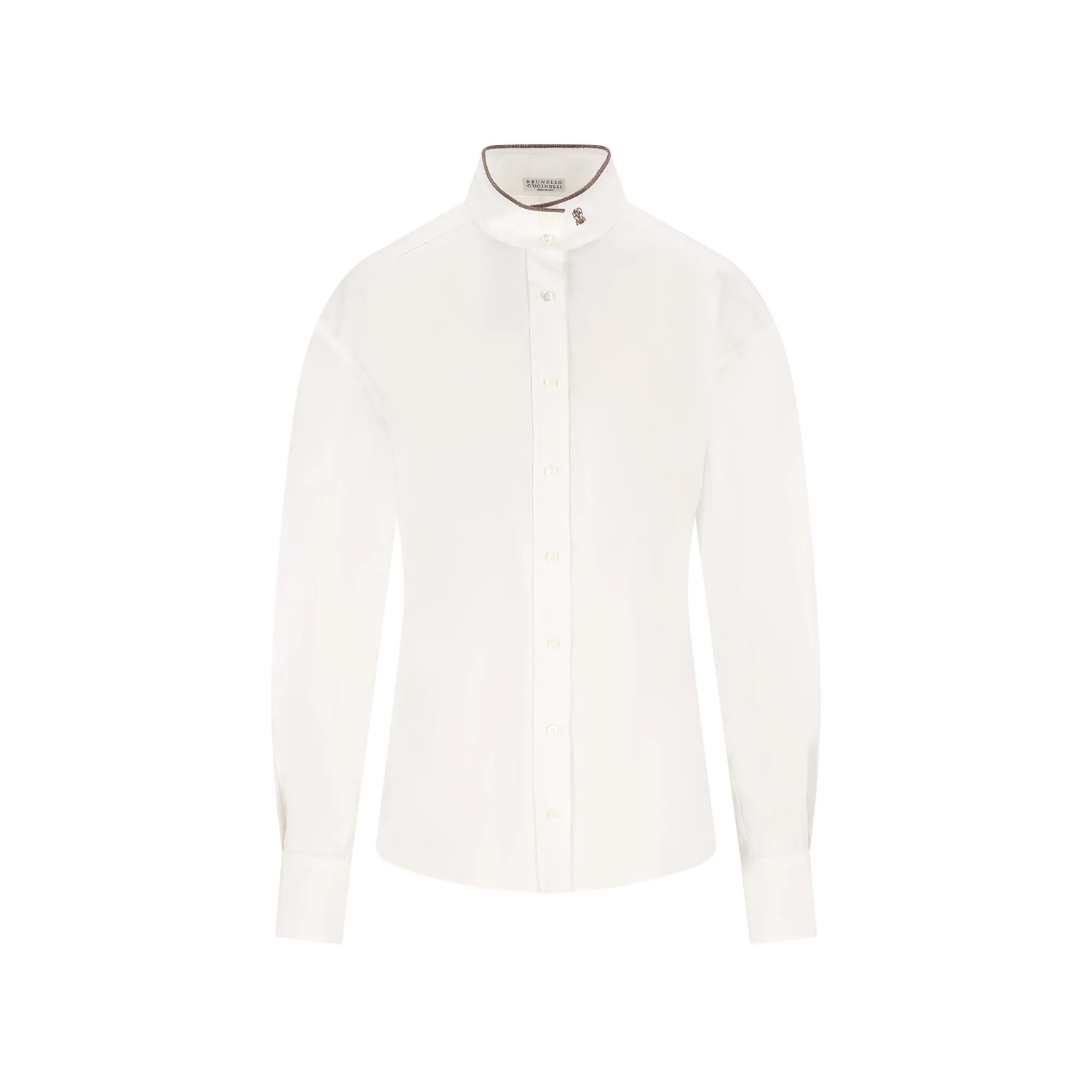 White cotton shirt from Brunello Cucinelli featuring high neck, buttons fastening, long sleeves and regular vestibility.
