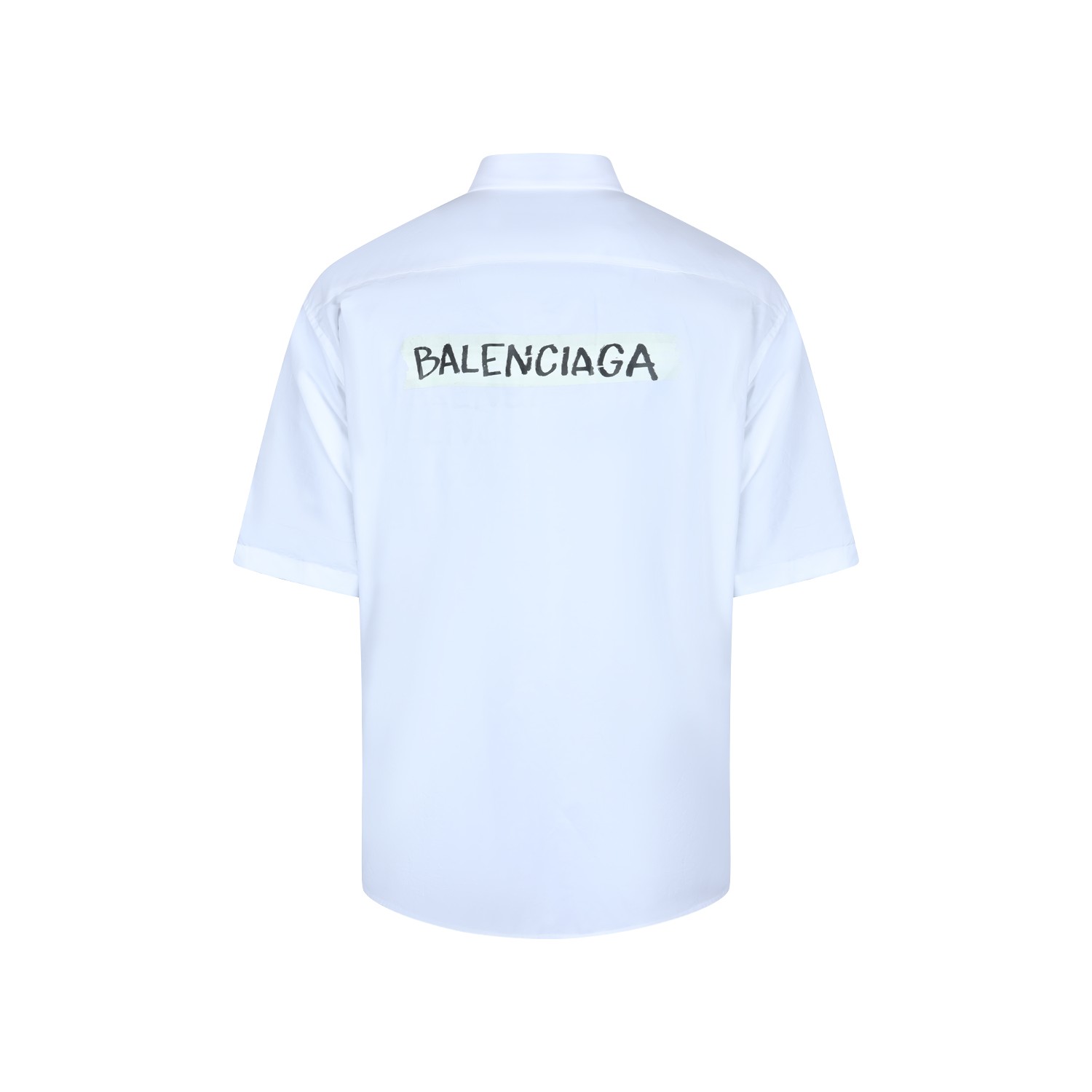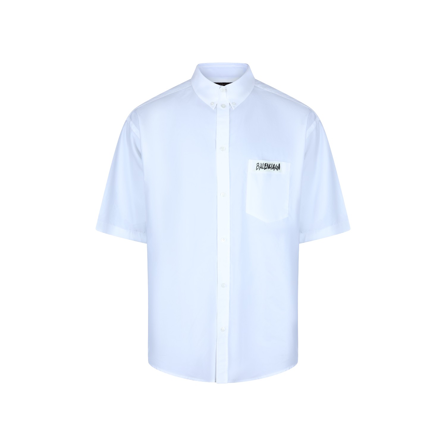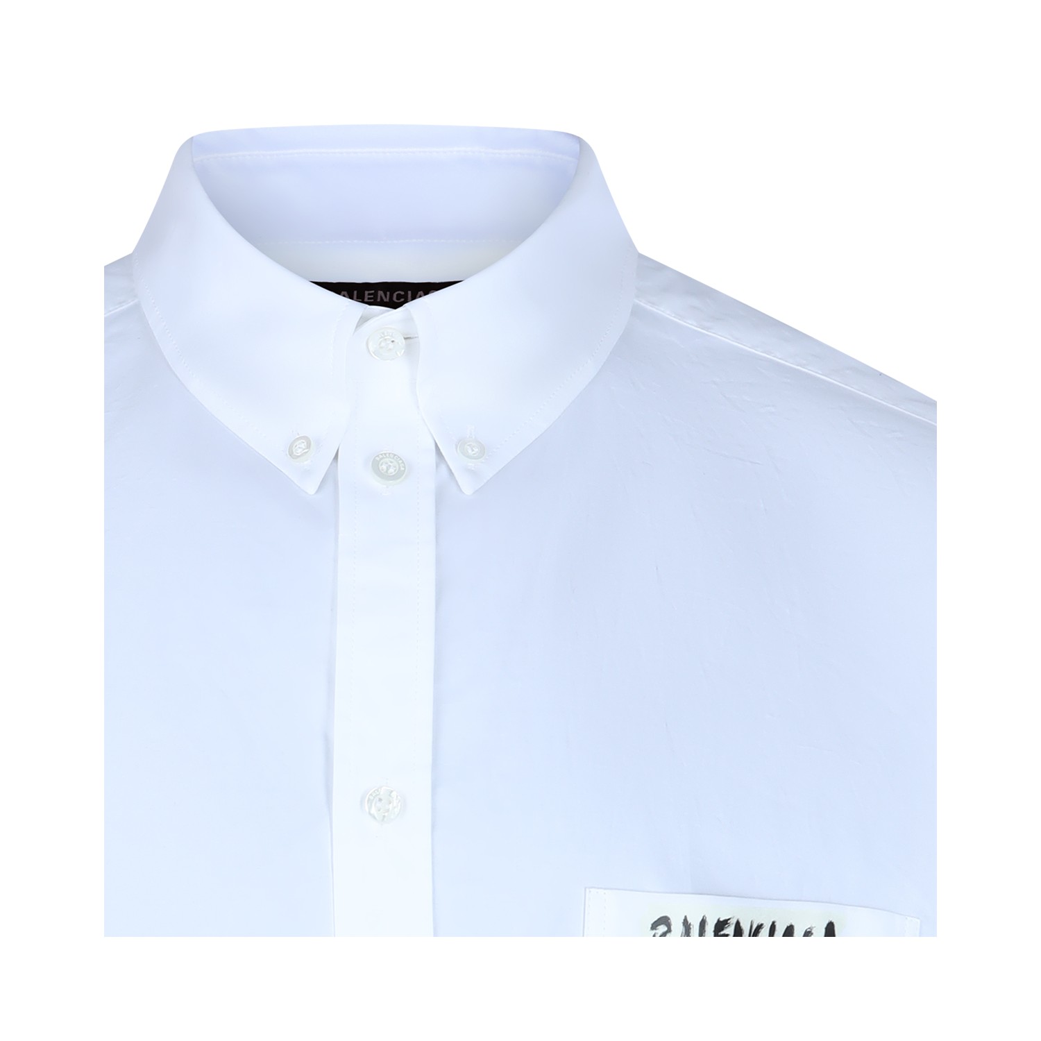 White cotton shirt from Balenciaga featuring short sleeves, button closure and chest pocket with logo detail.