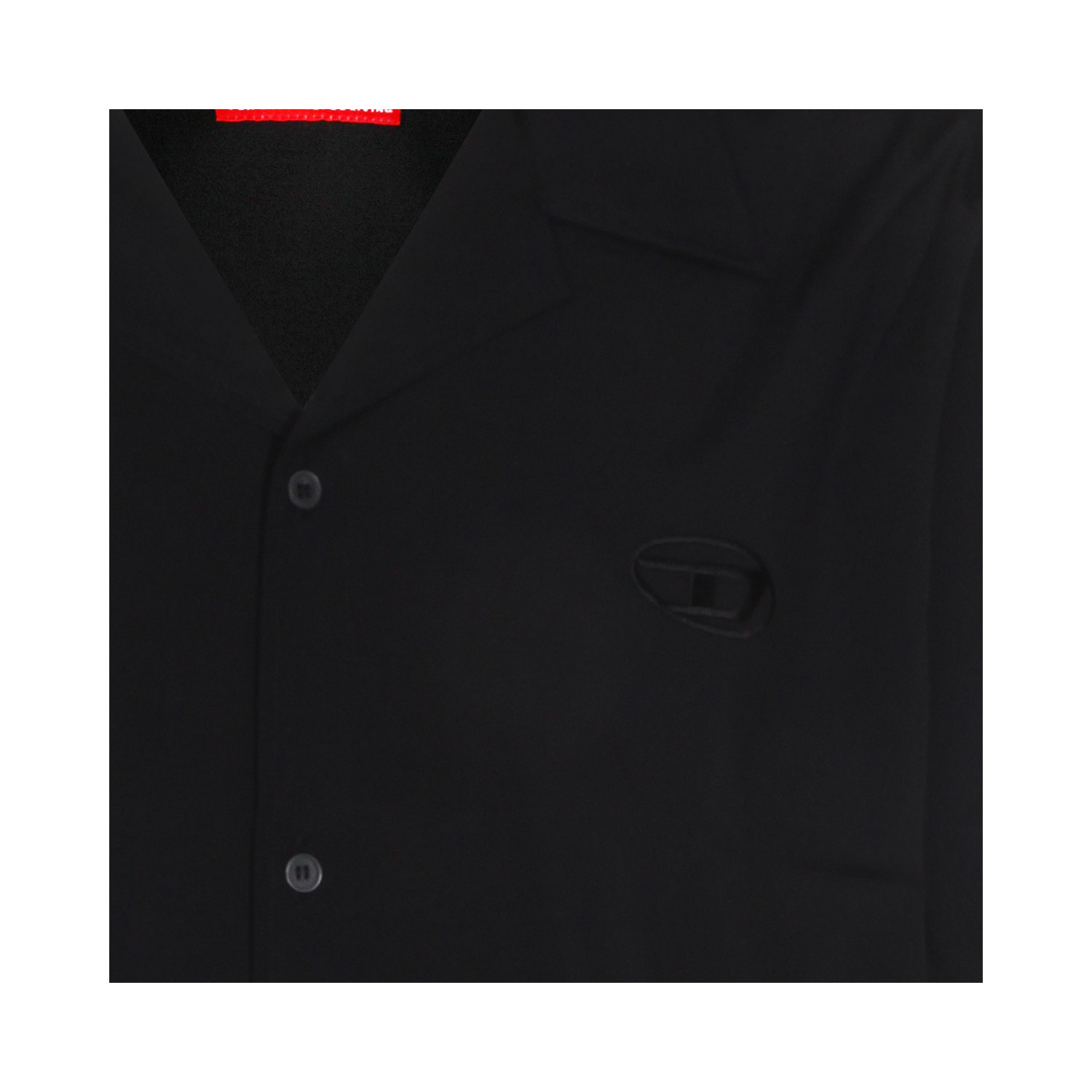 Black cotton shirt from Diesel featuring short sleeves, relaxed fit and button closure.