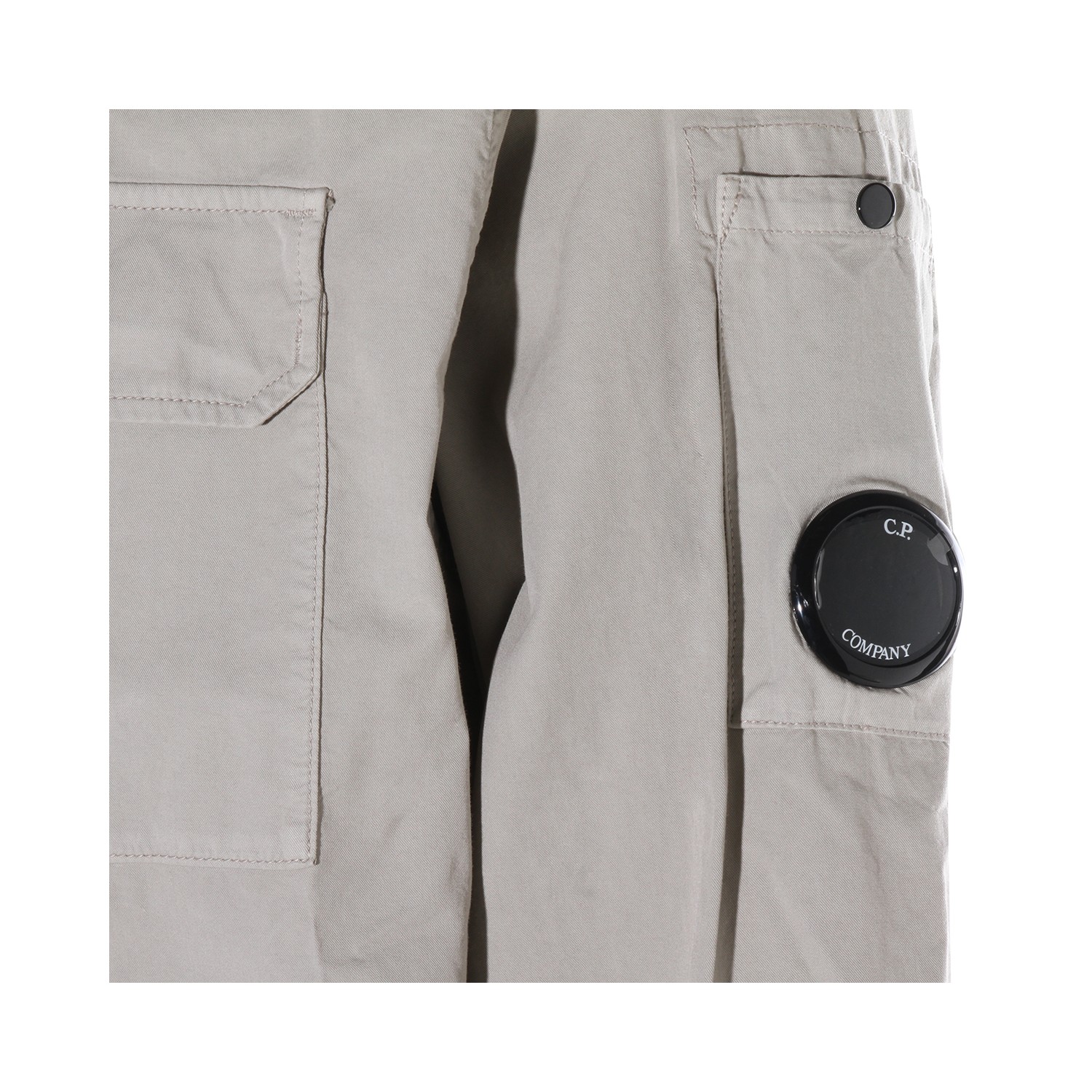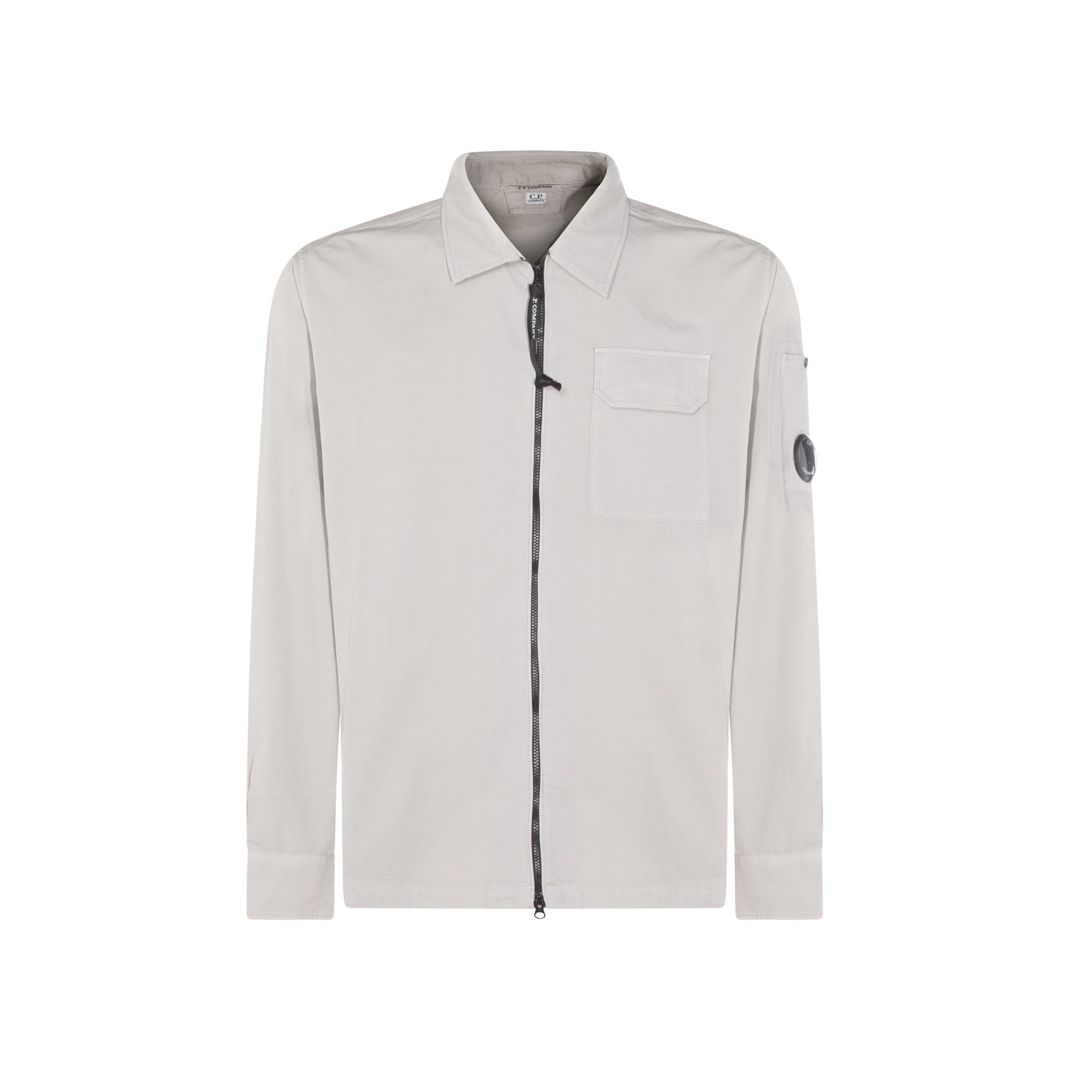 Light grey shirt from CP Company featuring classic collar, long sleeves, frontal zip closure, chest pocket. logo and regular fit.