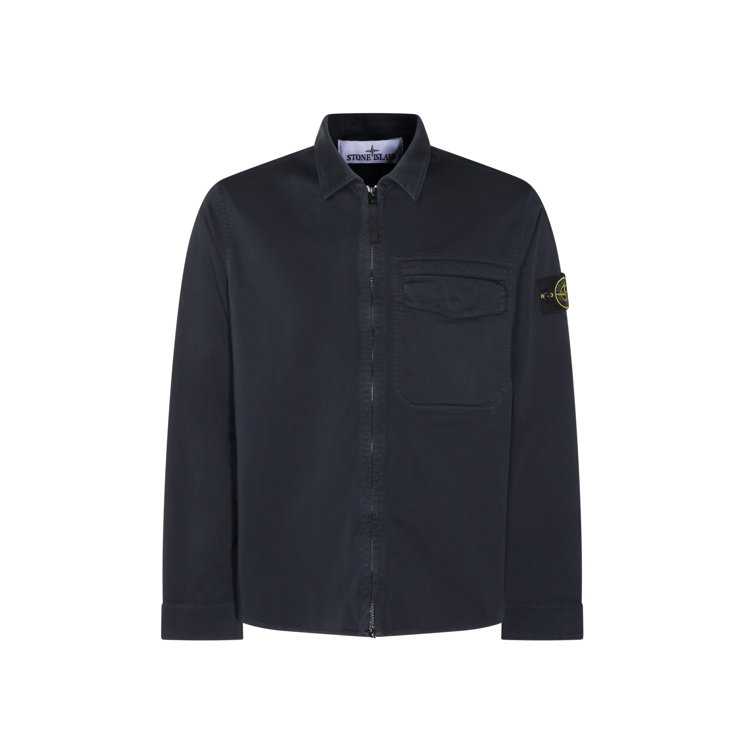 Navy cotton shirt from Stone Island featuring classic shirt collar, long sleeves, zip closure, chest pocket and regular vestibility.