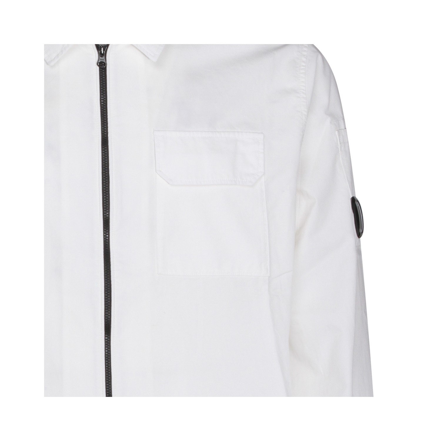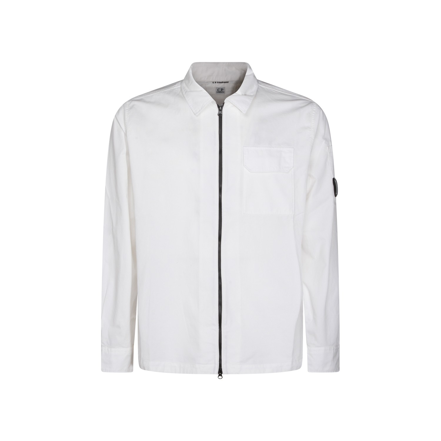 White cotton shirt from Cp Company featuring long sleeves, zip fastening, logo patch and regular vestibility.