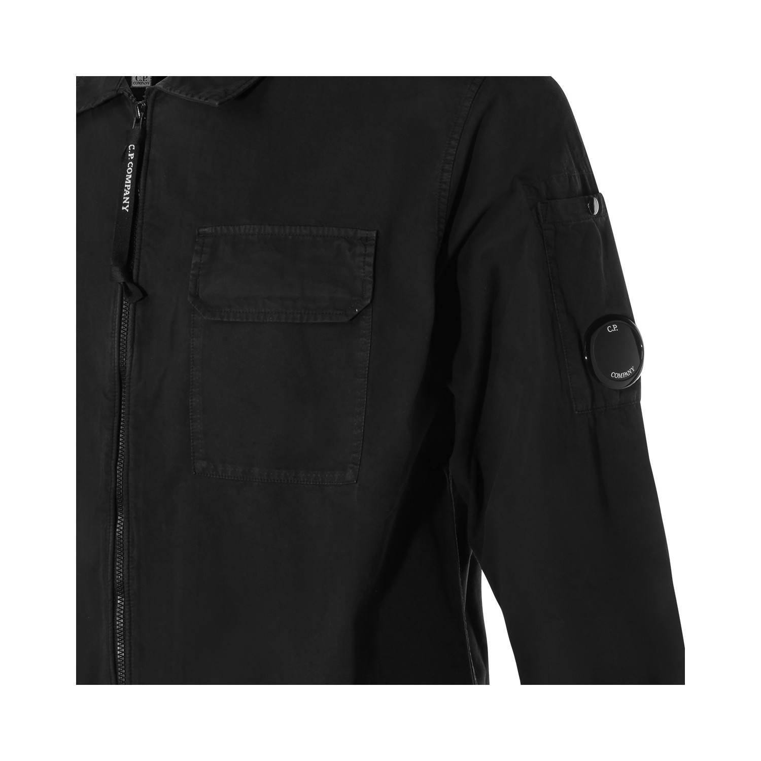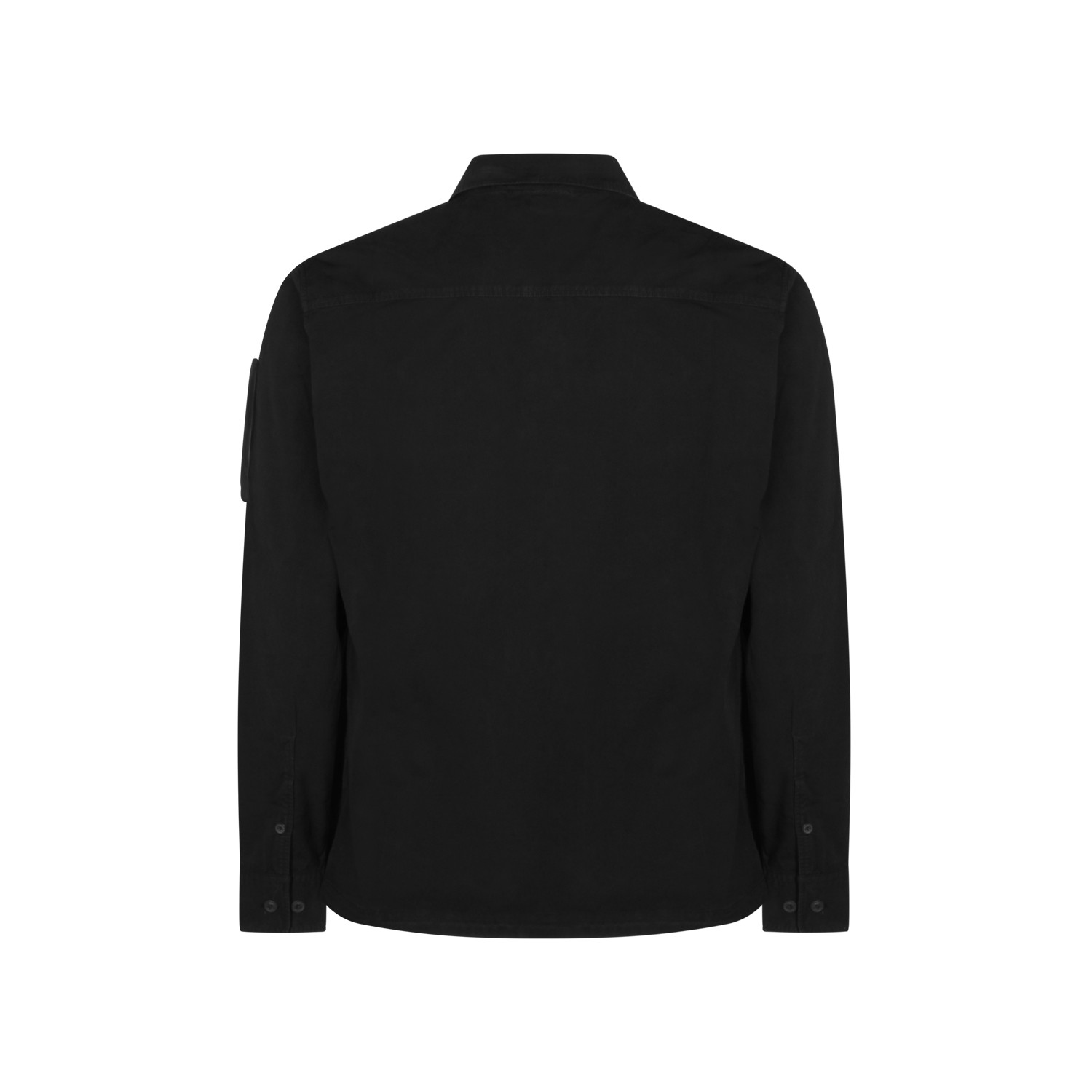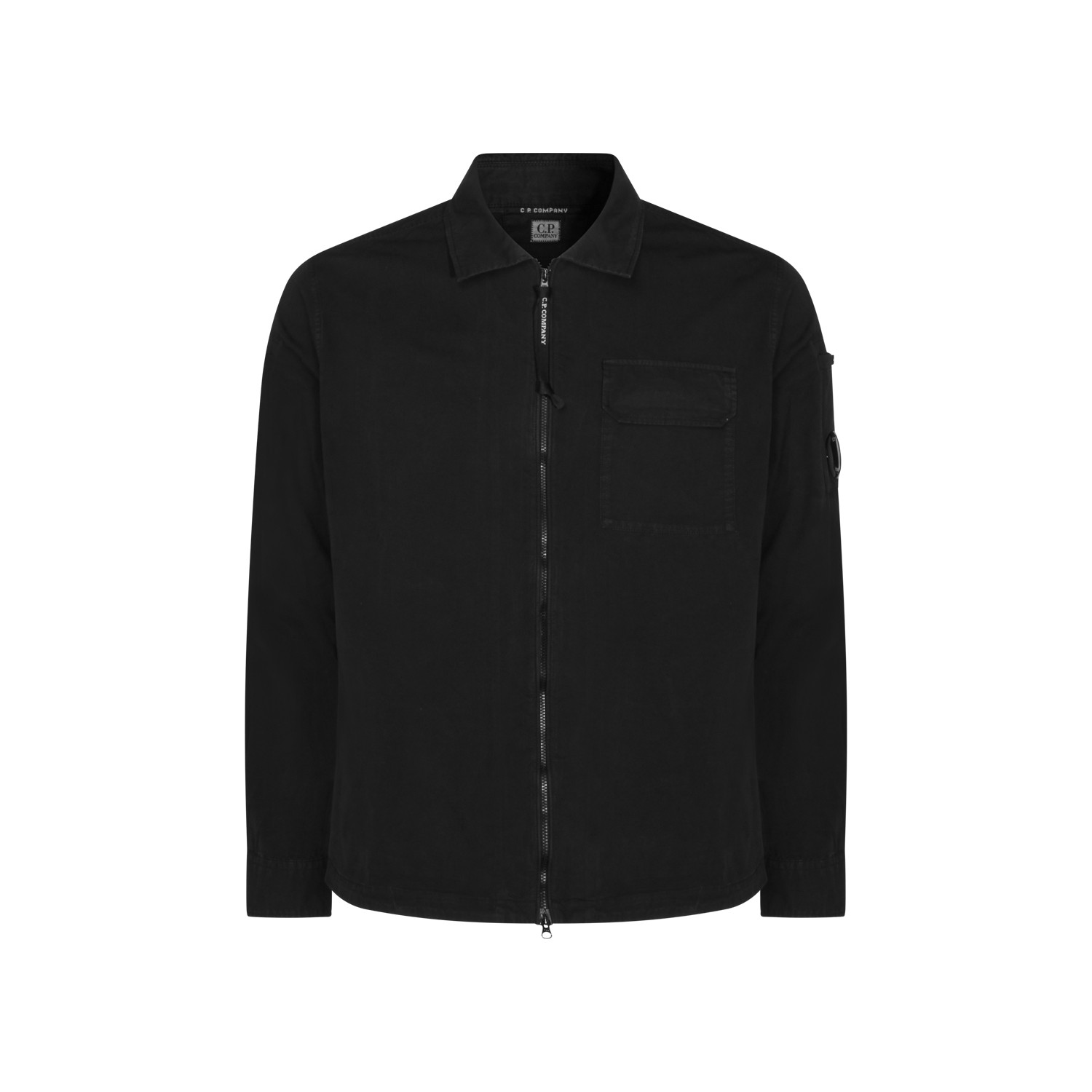 Black cotton shirt from Cp Company featuring long sleeves, zip fastening, logo patch and regular vestibility.