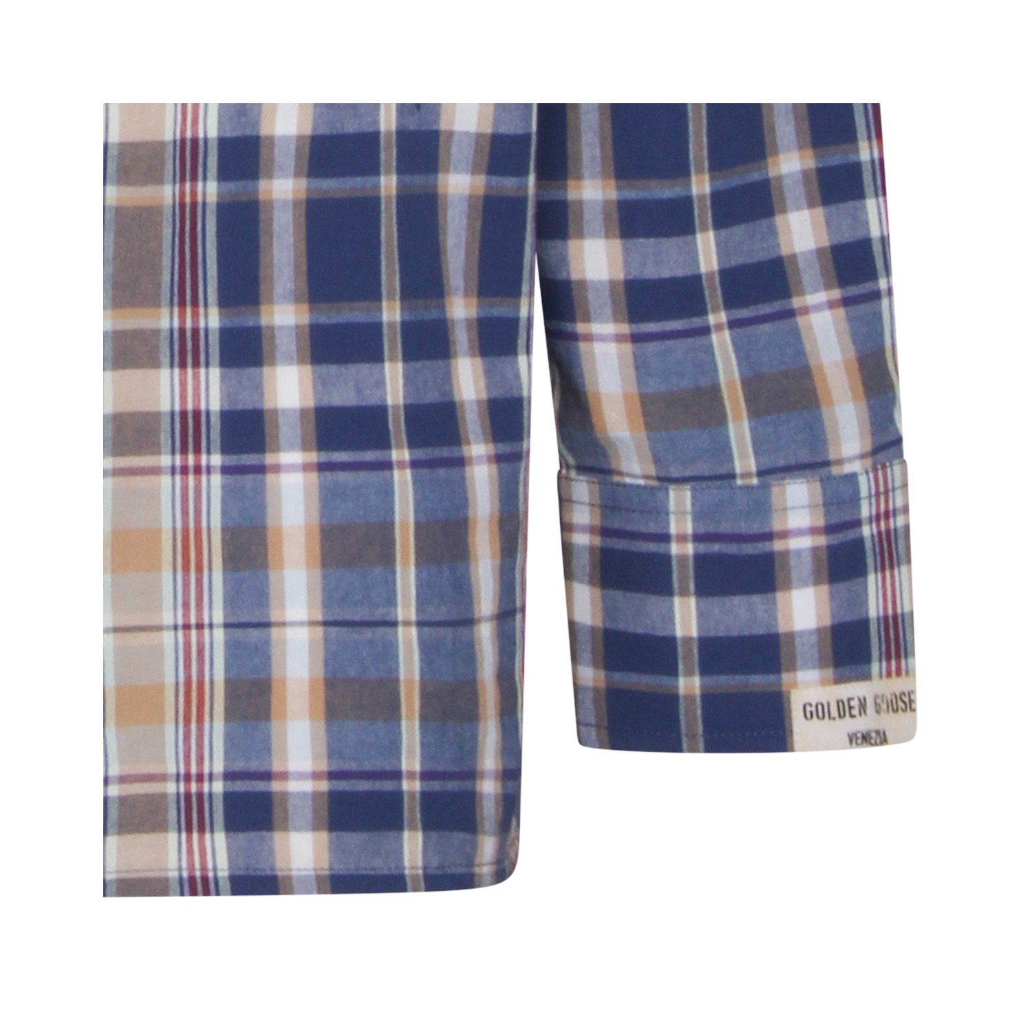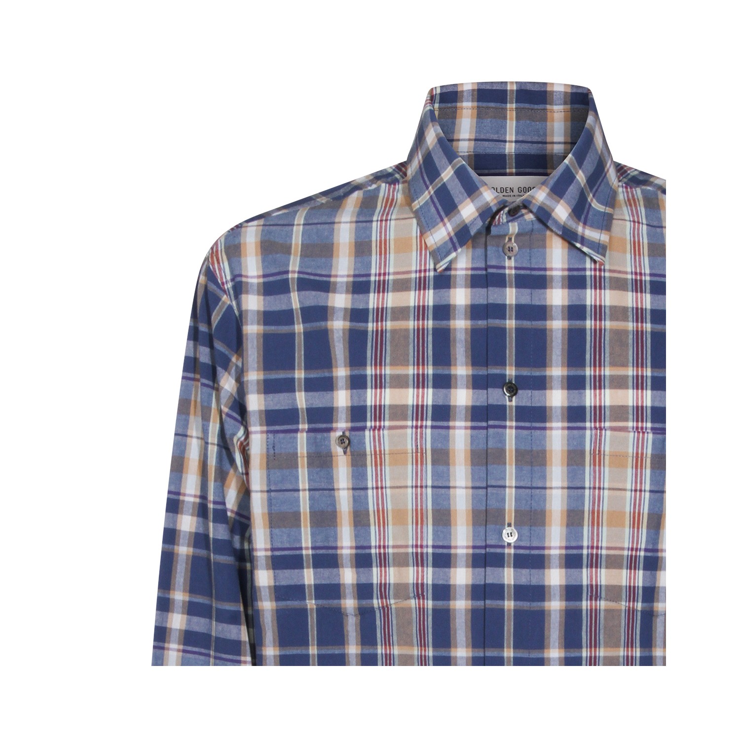 Beige and blue cotton shirt from Golden Goose featuring classic shirt collar, long sleeves, buttons fastening and regular vestibility.