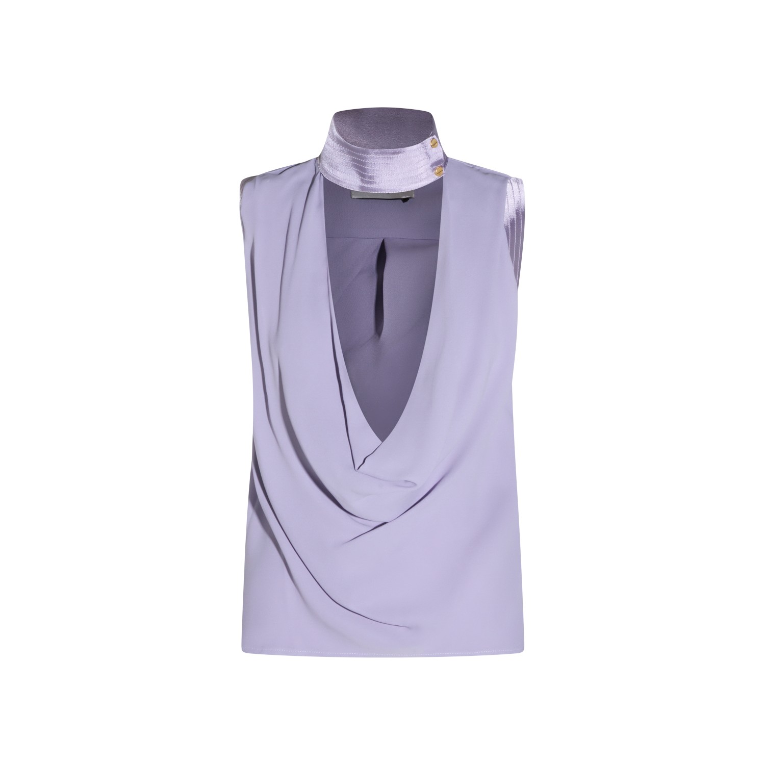 Lilac viscose shirt from Elisabetta Franchi featuring high collar, v neckline, sleeveless and regular fit.