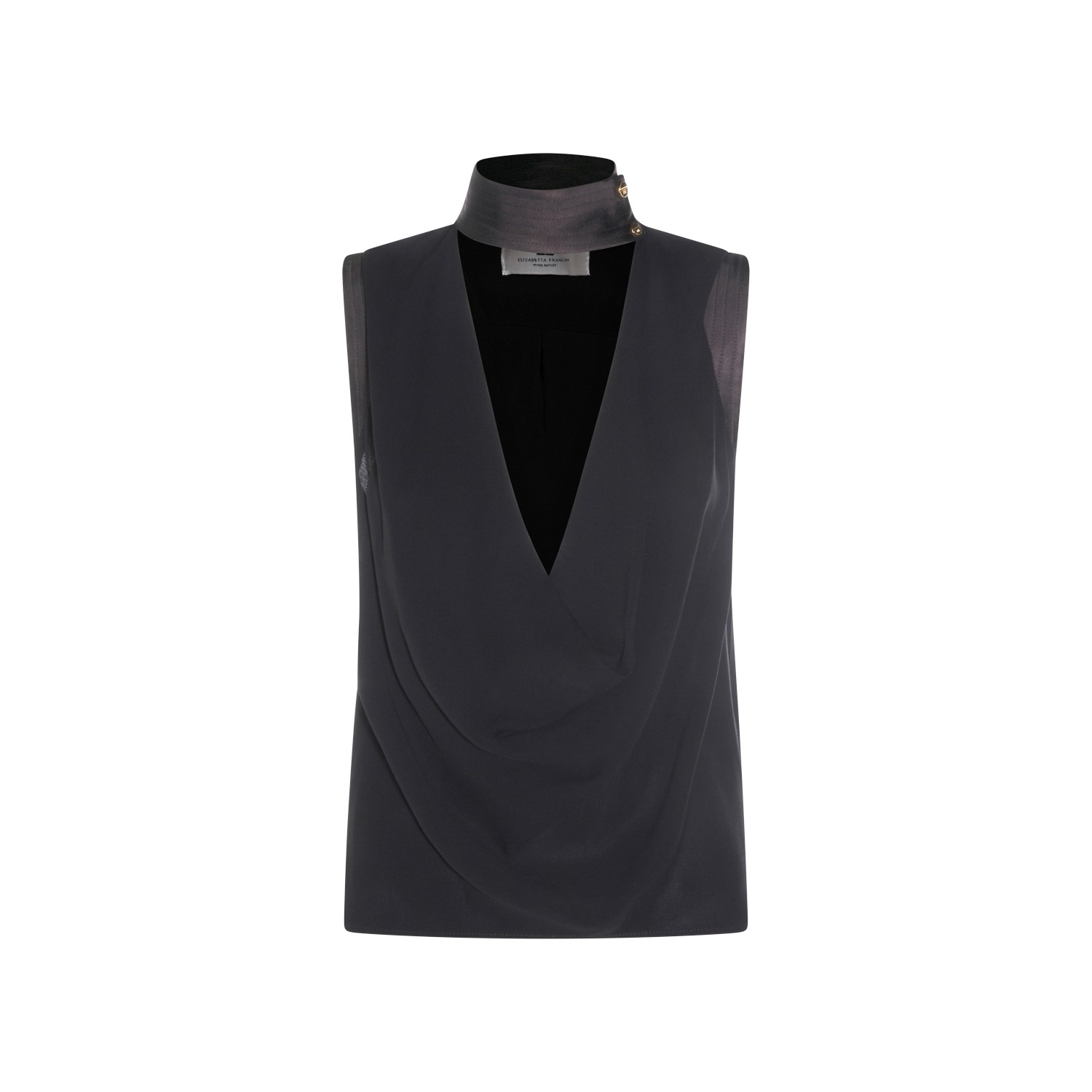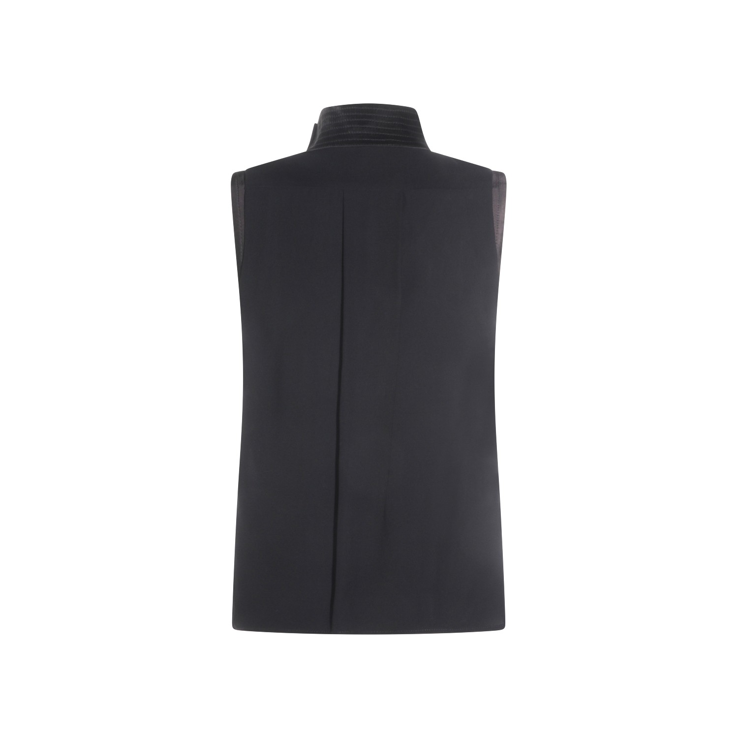 Black viscose shirt from Elisabetta Franchi featuring high collar, v neckline, sleeveless and regular fit.