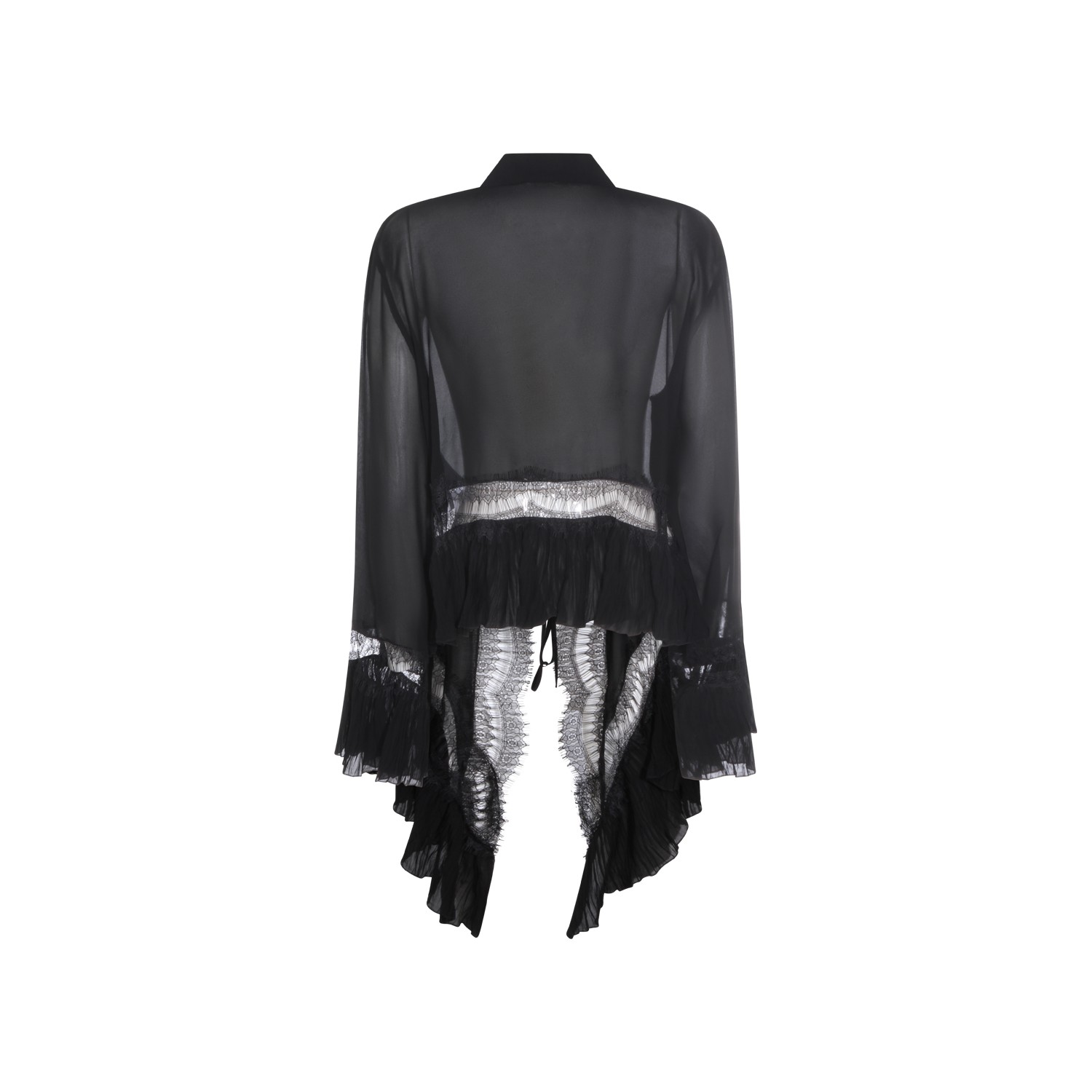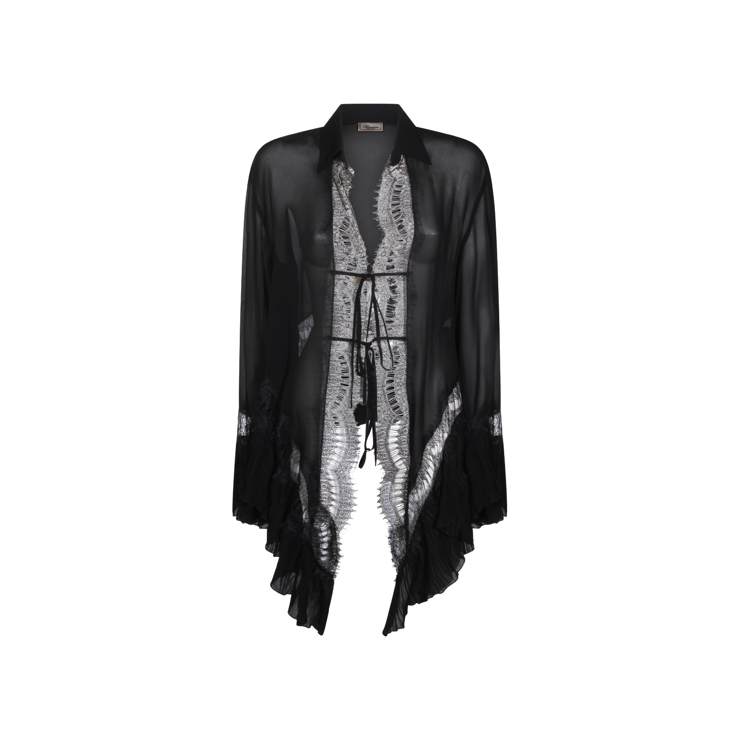 Black viscose shirt from Blumarine featuring long sleeves, frontal fastening, laces and trasparence.
