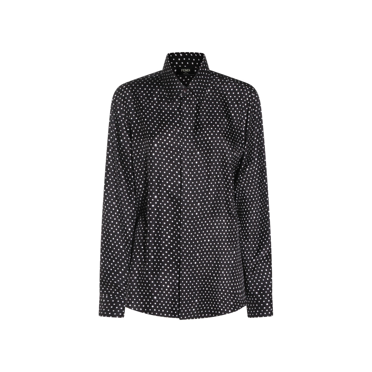 Black and white silk shirt from Fendi featuring shirt collar, long sleeves, frontal fastening and regular fit.