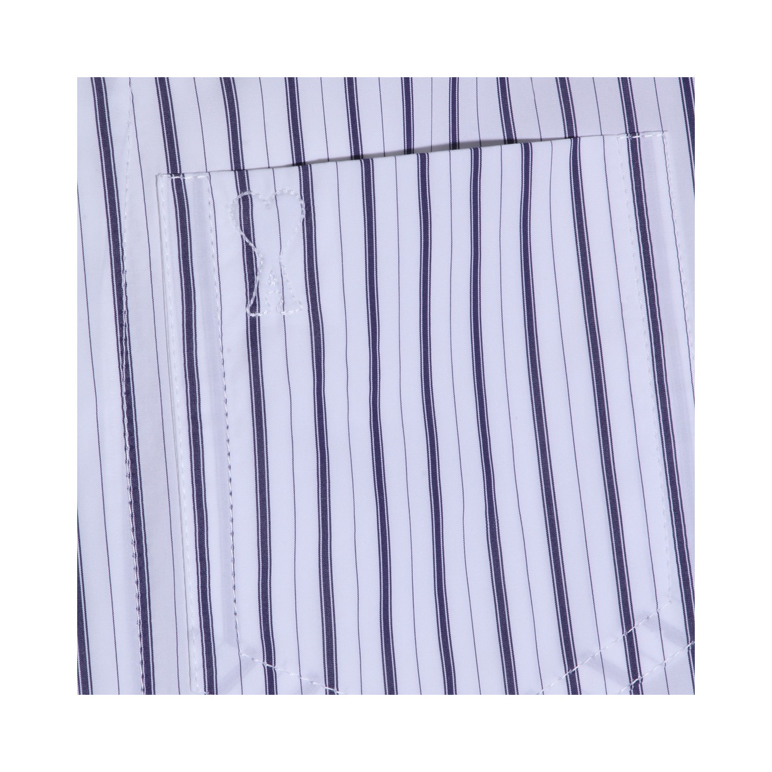 White and blue cotton shirt from Ami Paris featuring shirt collar, long sleeves, striped motif, buttons fastening and regular fit.